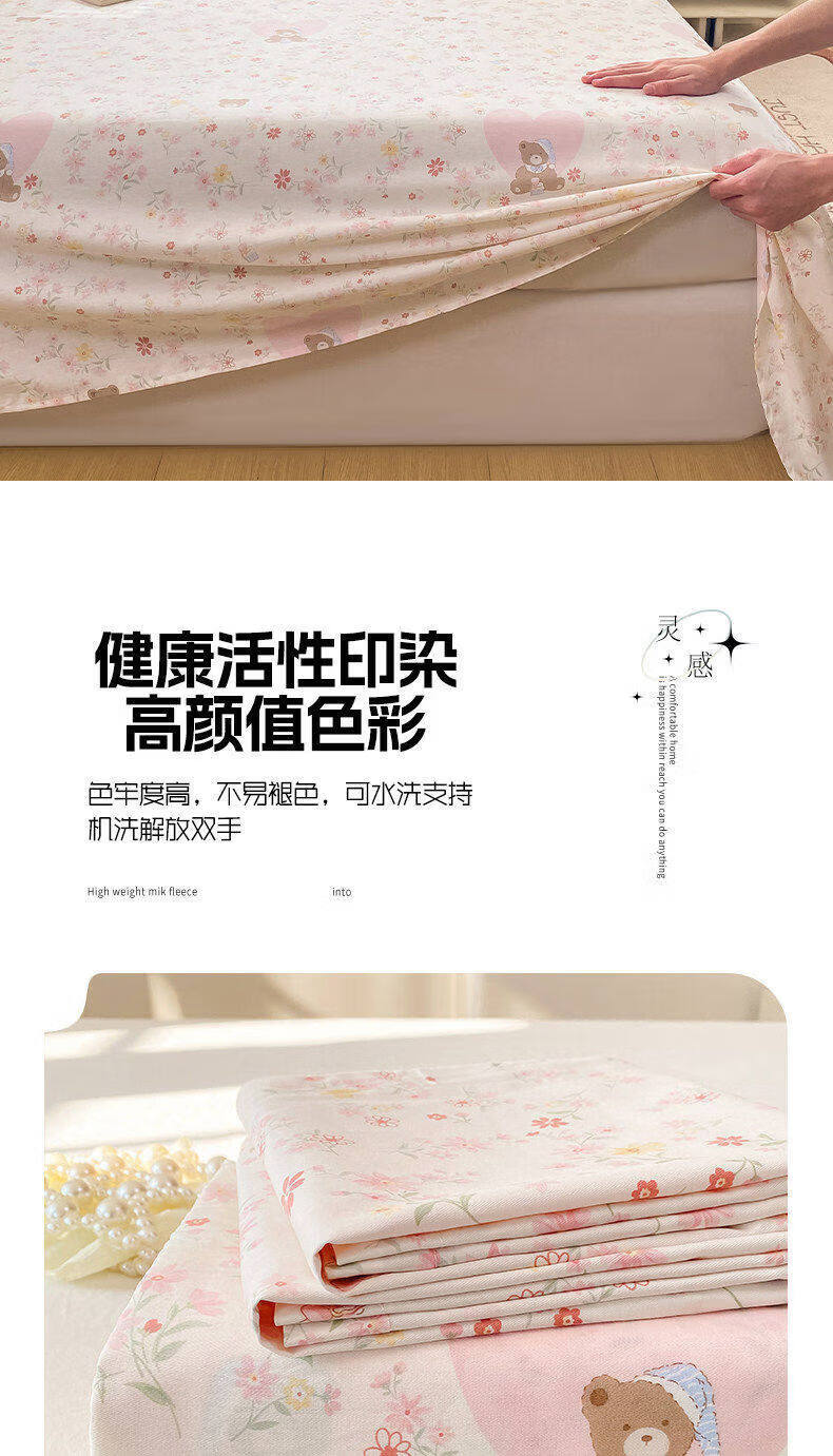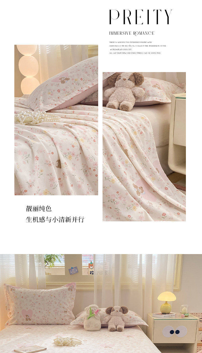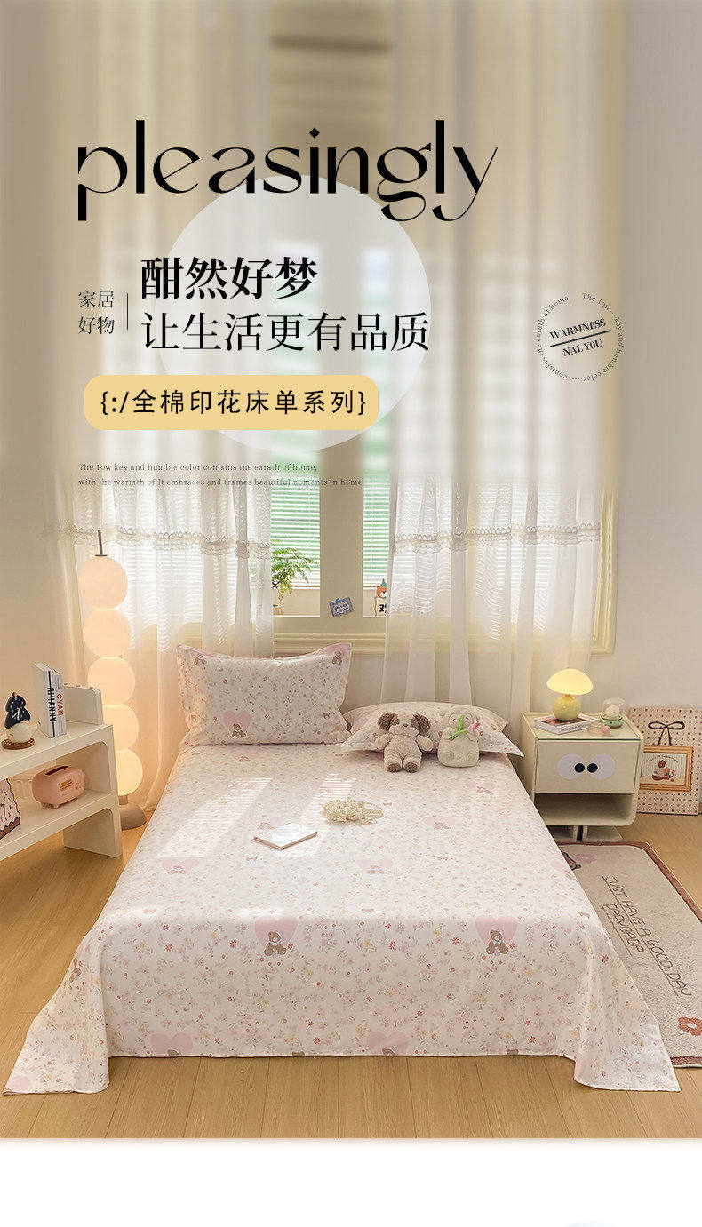 猫人(MiiOW)纯棉床单200x230cm全棉床罩被单件床上用品三件套宿舍四季通用 仙草【全棉面料亲肤裸睡】 【适合1.5m床】床单:200*230cm