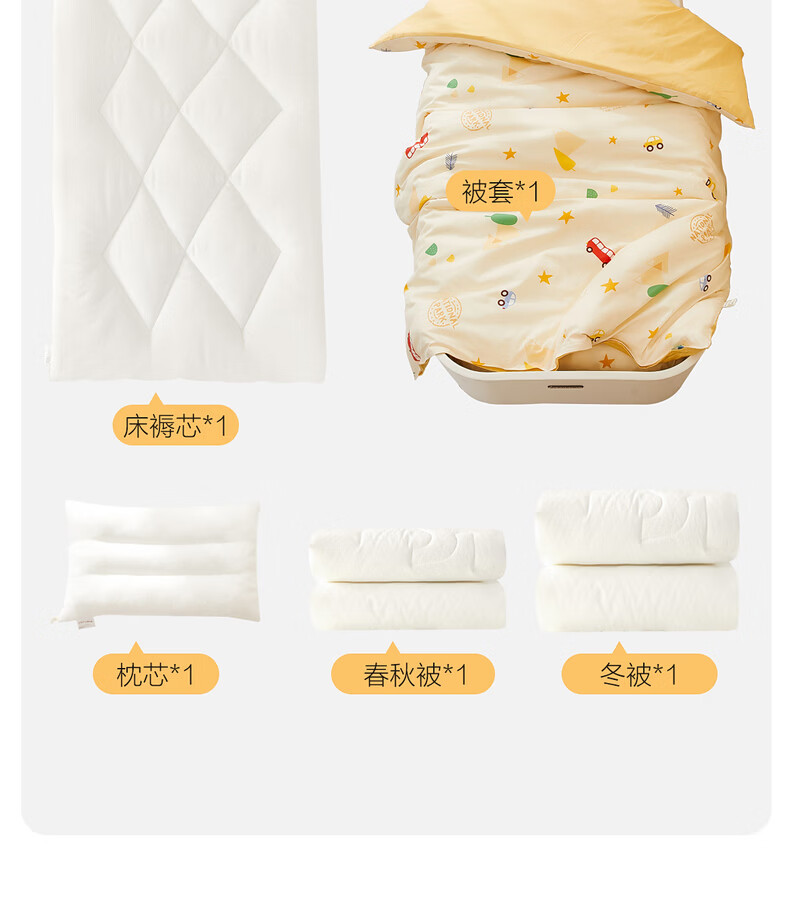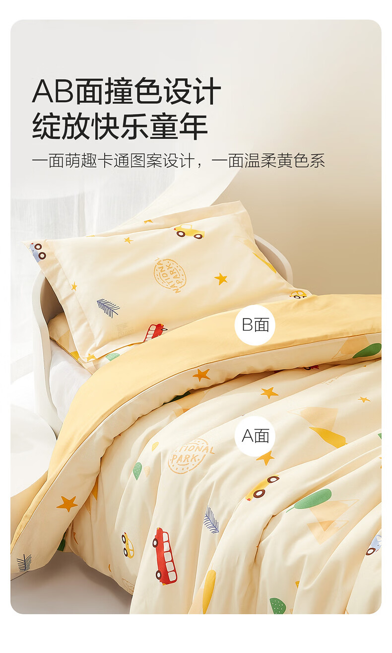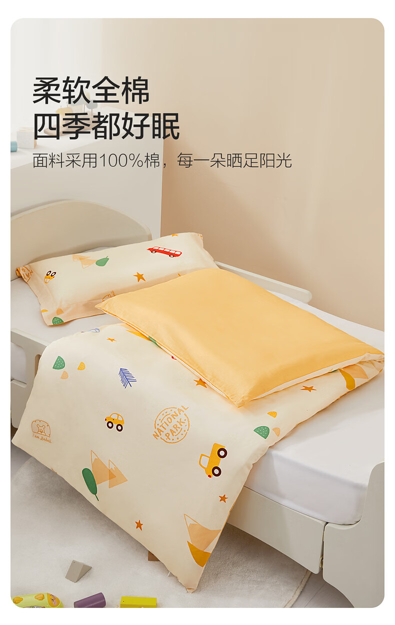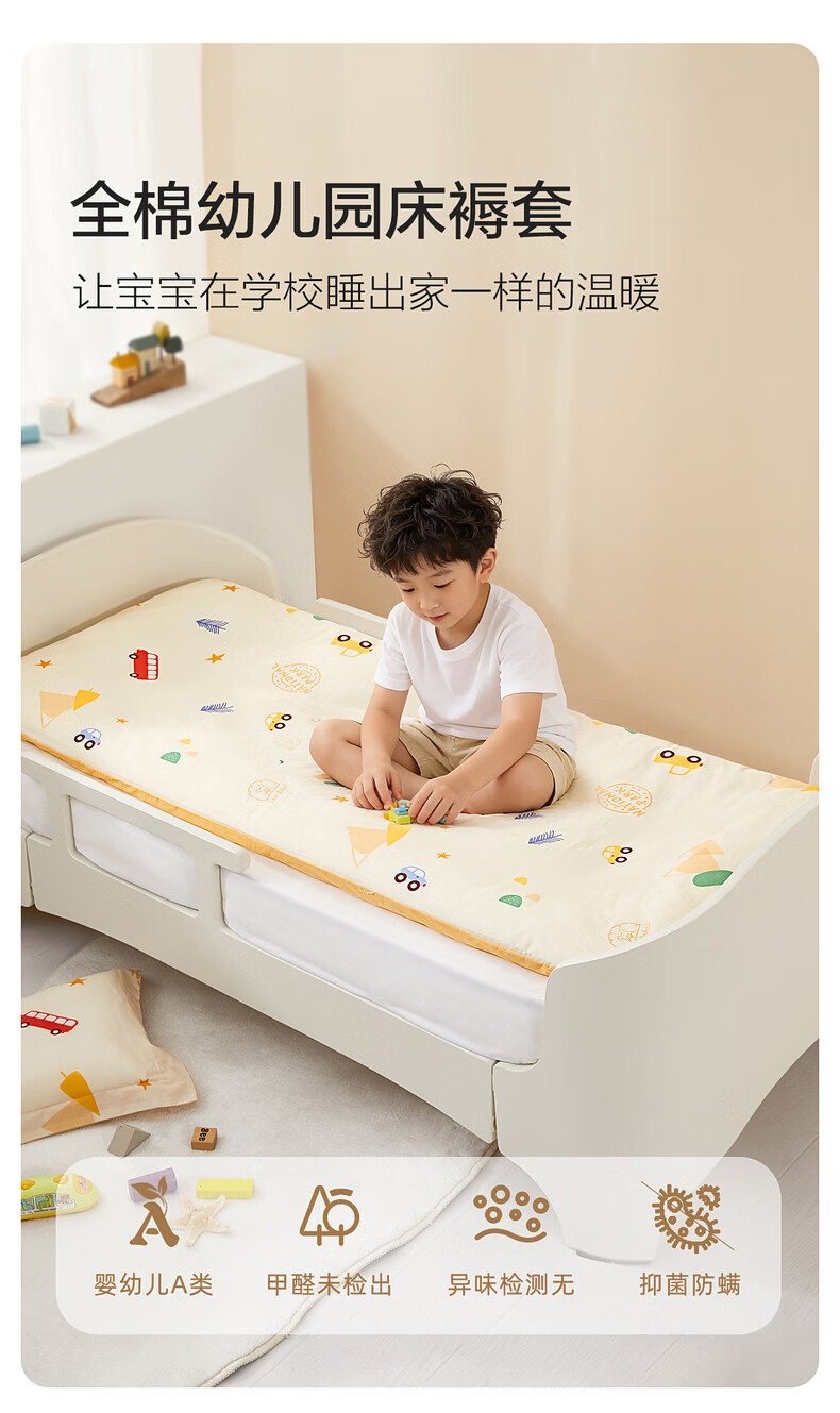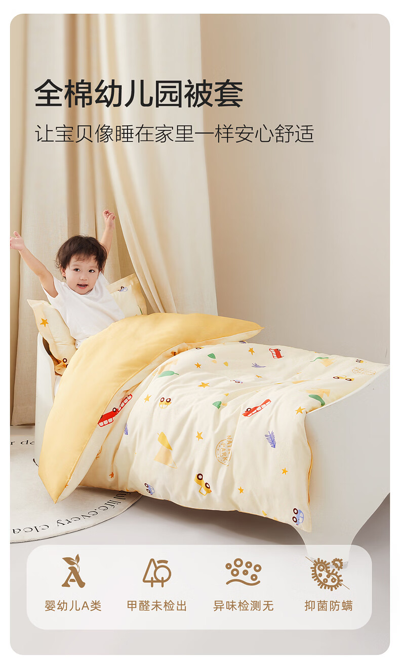 水星儿童(MERCURY Kids)床上多件套 100%纯棉 母婴A类幼儿园被套床褥套枕套套件床品 【床褥套】幼儿园全棉抗菌(乐宝黄)