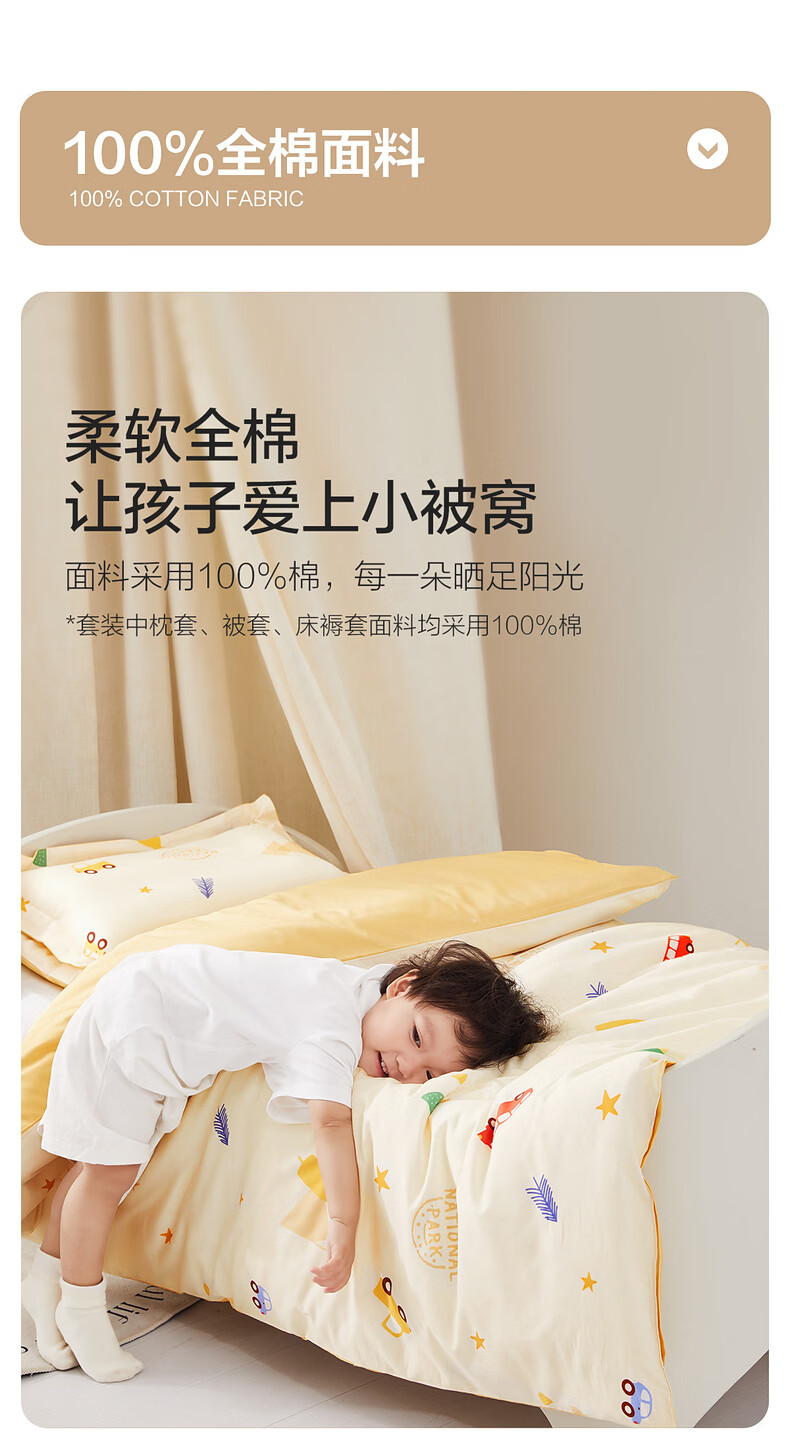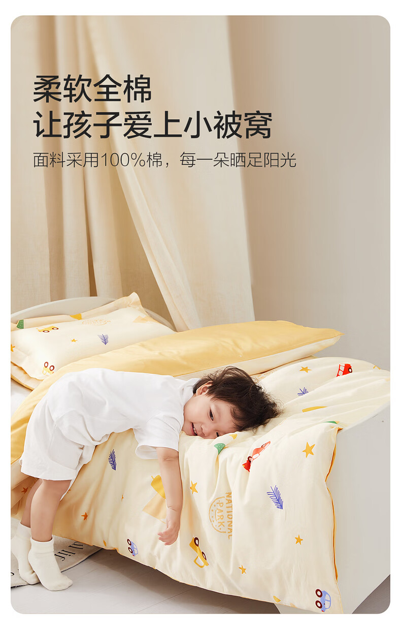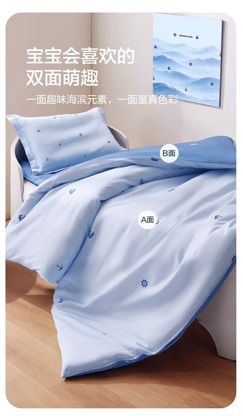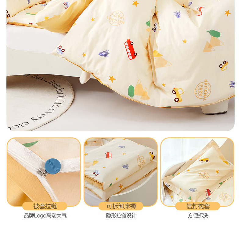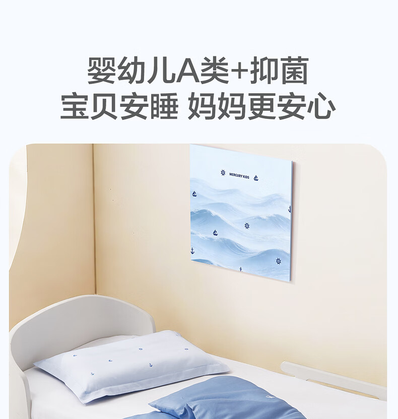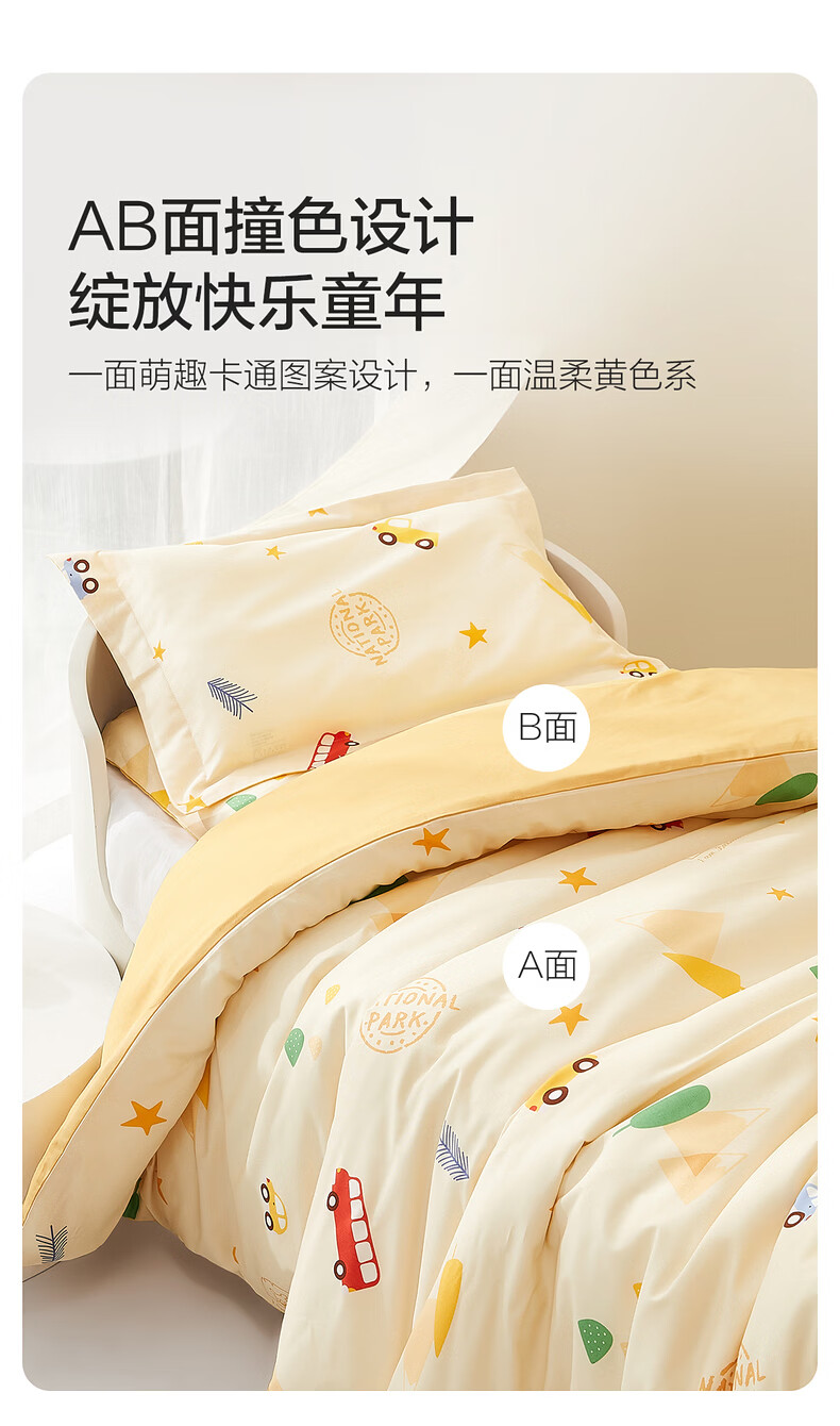 水星儿童(MERCURY Kids)床上多件套 100%纯棉 母婴A类幼儿园被套床褥套枕套套件床品 【床褥套】幼儿园全棉抗菌(乐宝黄)