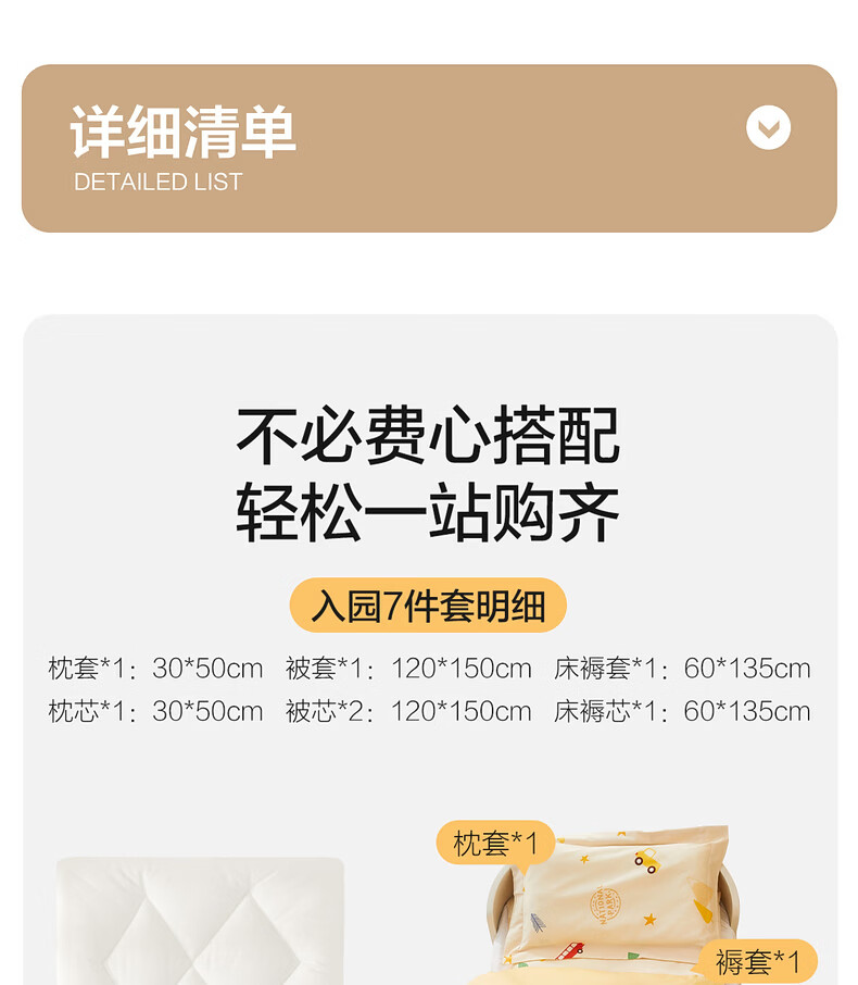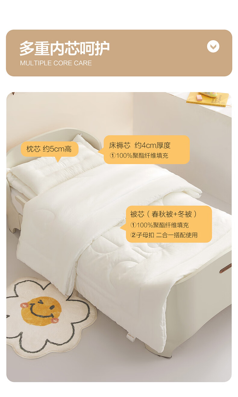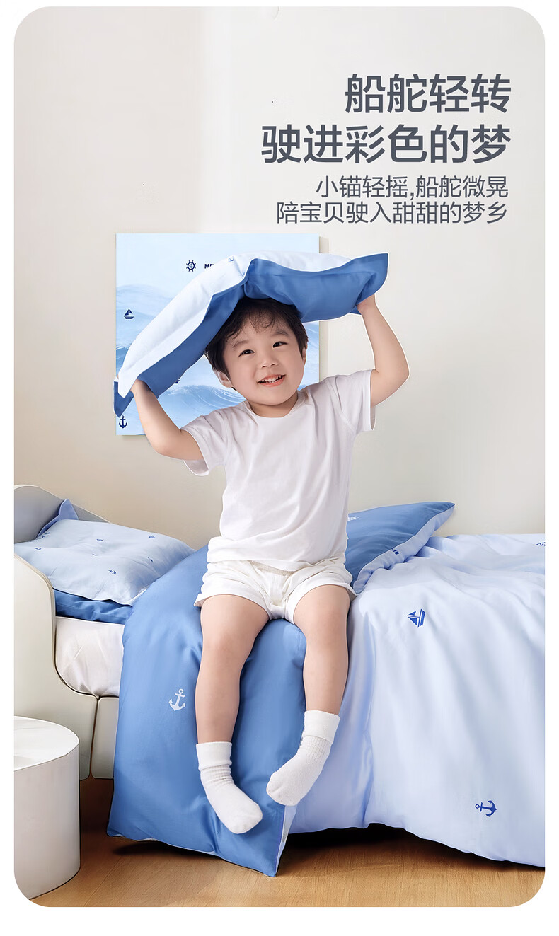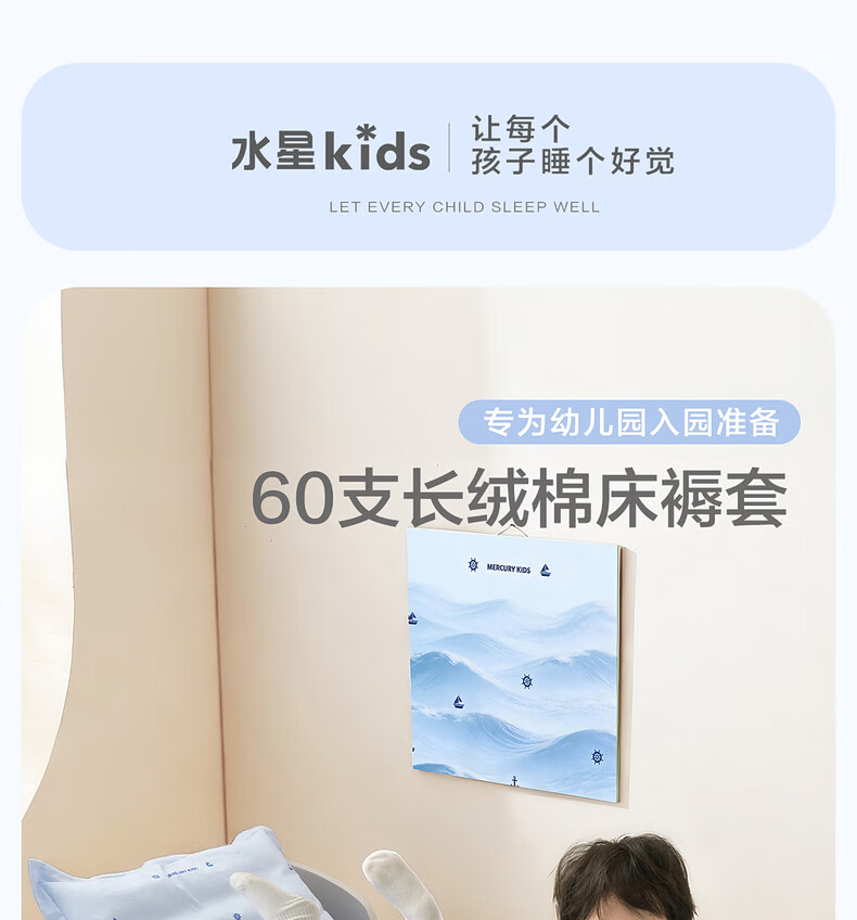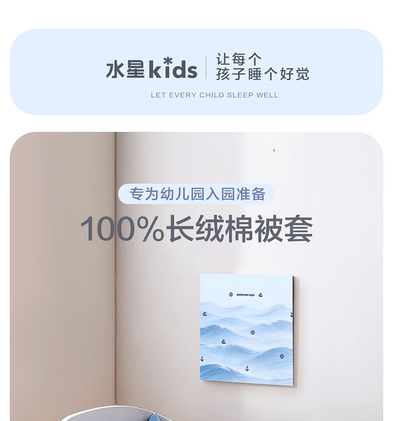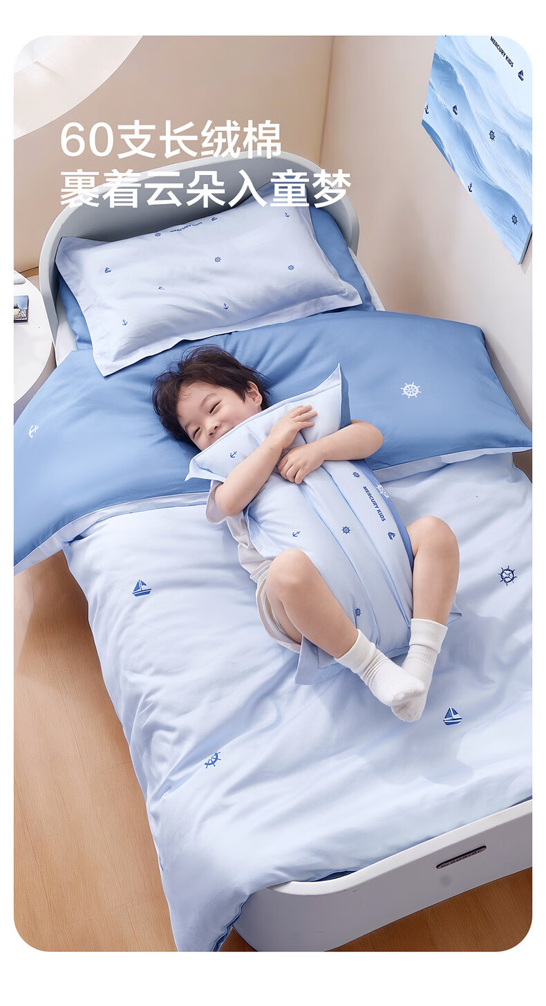 水星儿童(MERCURY Kids)床上多件套 100%纯棉 母婴A类幼儿园被套床褥套枕套套件床品 【床褥套】幼儿园全棉抗菌(乐宝黄)