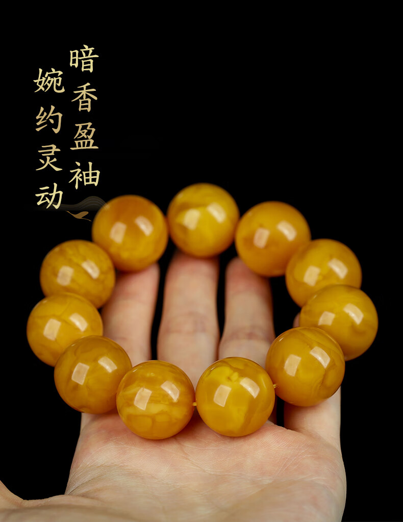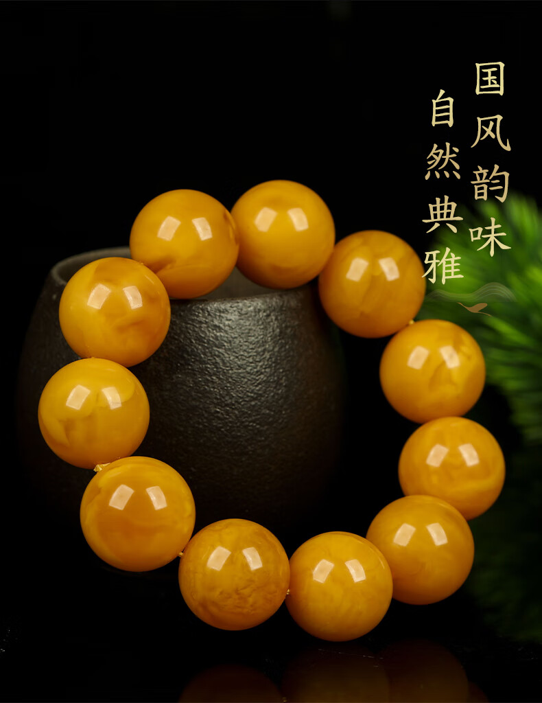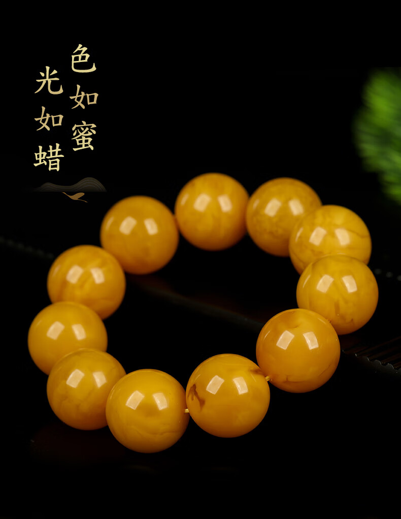 欧采妮(OUCERNY)蜜蜡手串收藏满蜜鸡油黄琥珀老花蜡圆珠佛珠手链俄料男女款送礼物 6mm