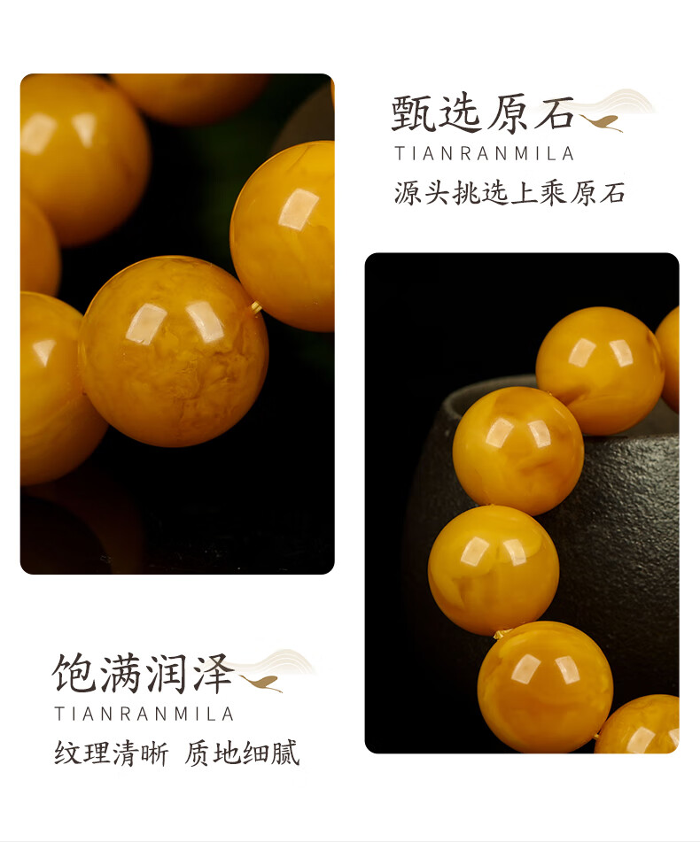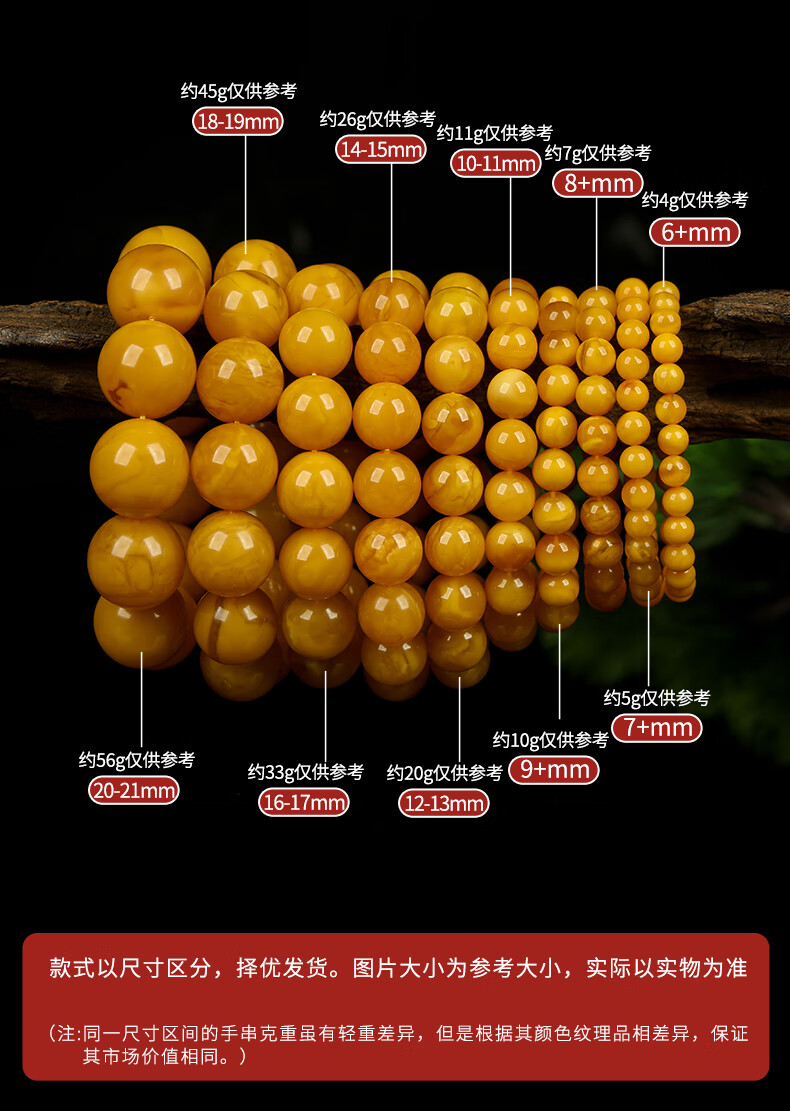 欧采妮(OUCERNY)蜜蜡手串天然琥珀原石满蜜鸡油黄老蜜蜡圆珠佛珠南红多宝diy手链 天然蜜蜡 一物一证