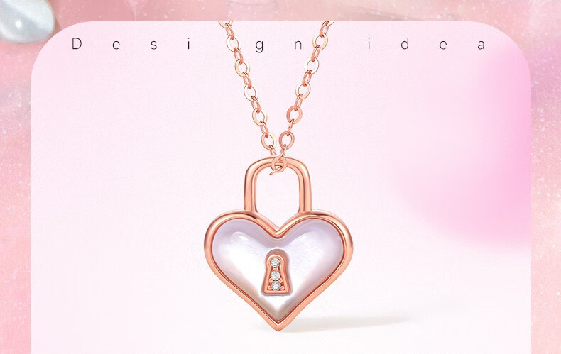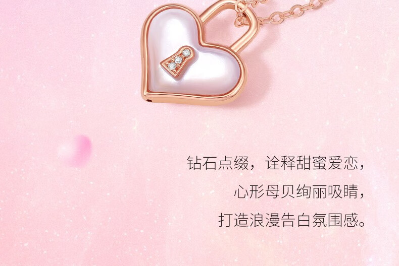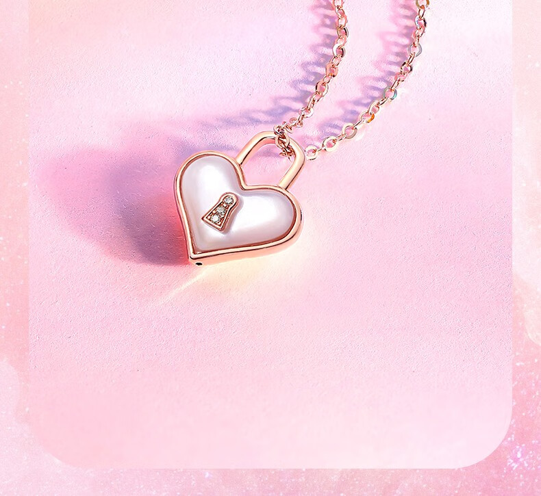 周六福(ZLF)新年礼物 18K金钻石吊坠女心有锁属爱心锁母贝挂坠项链节日 心锁吊坠(不含链)-约0.4克