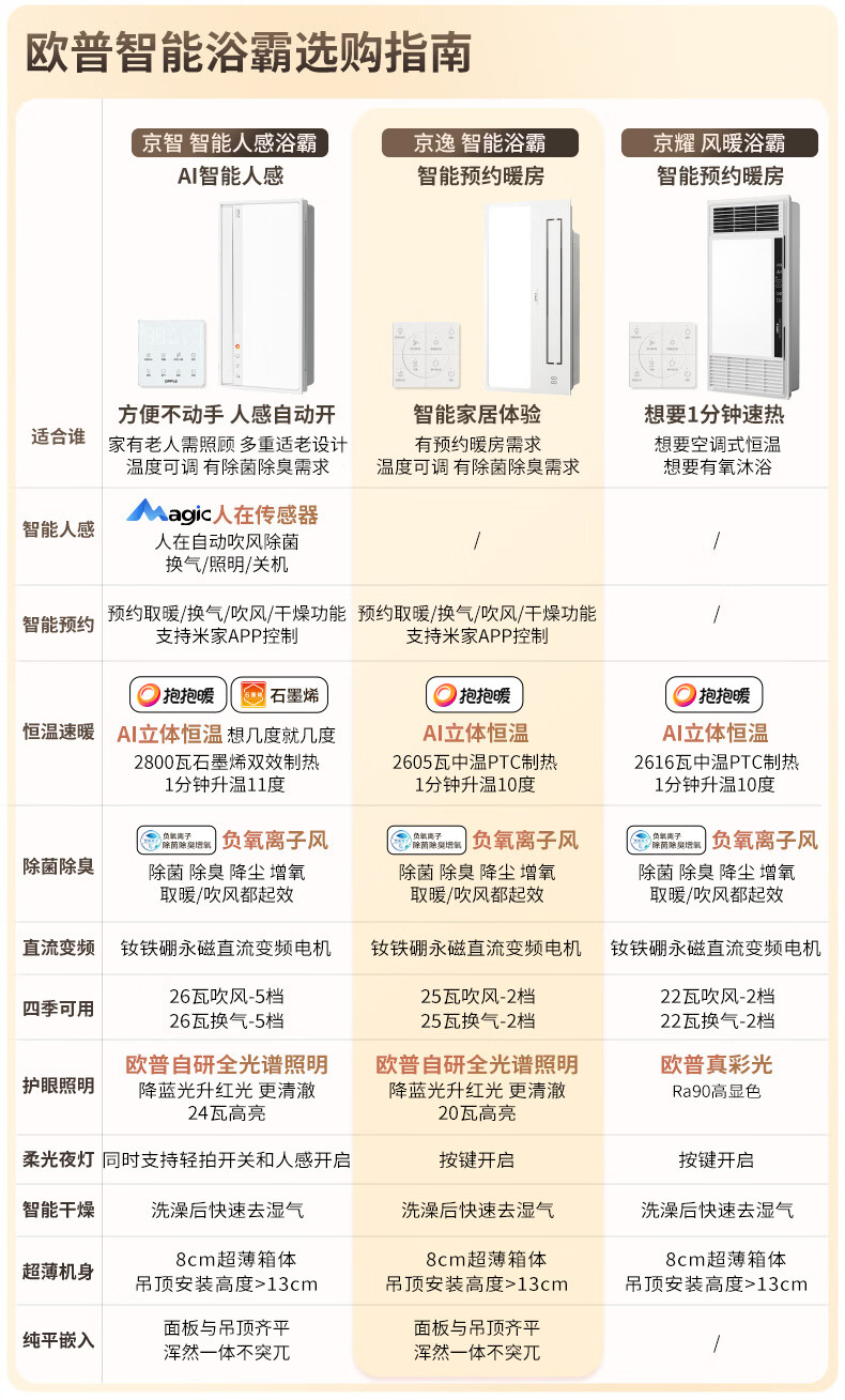 欧普照明(OPPLE)京东集采智能浴霸京系列抱抱暖变频智能除菌浴霸 京逸 免费送装