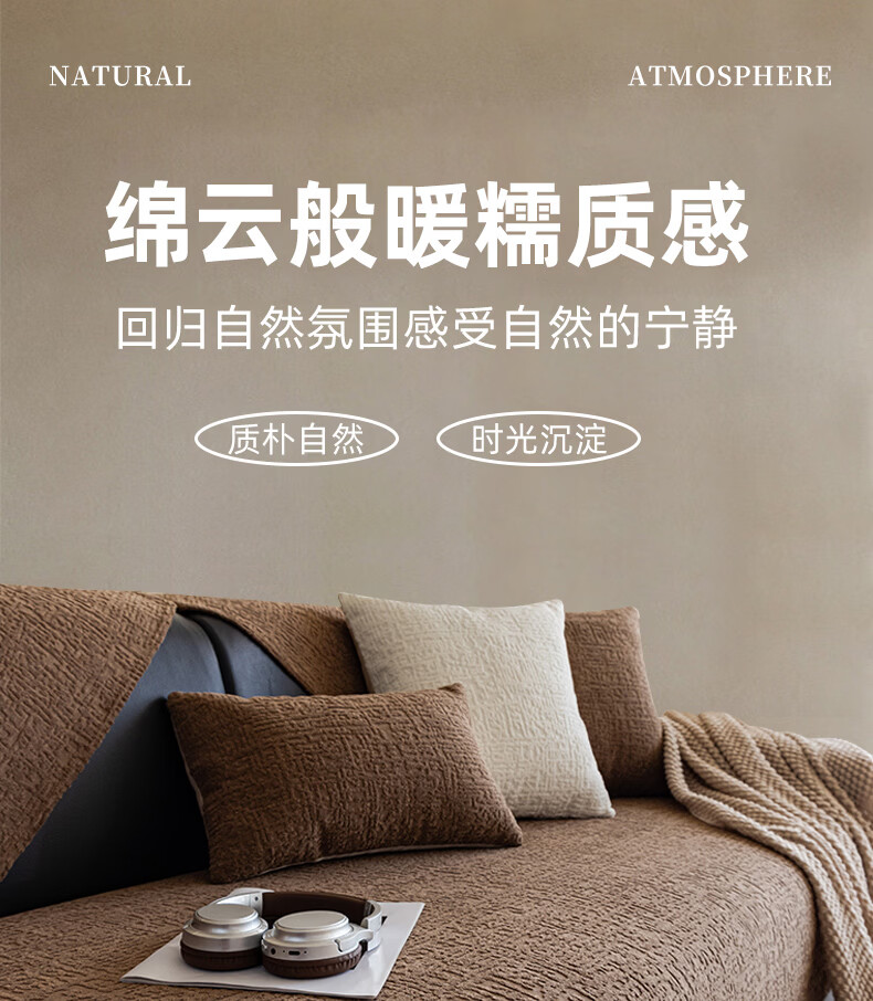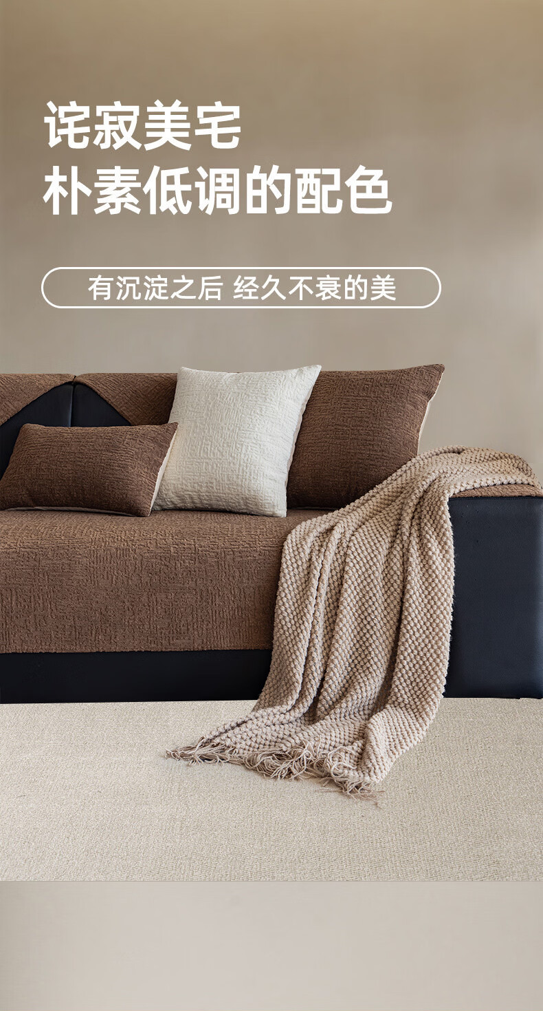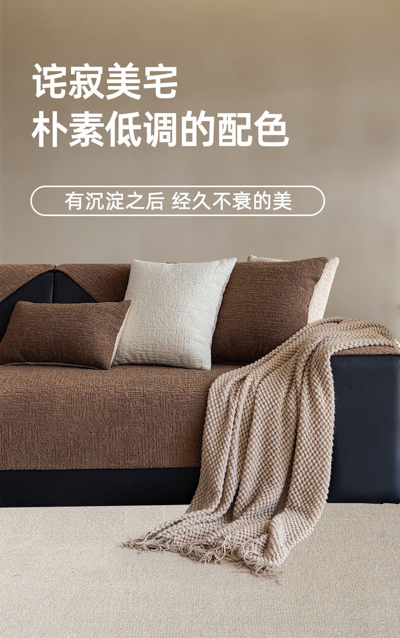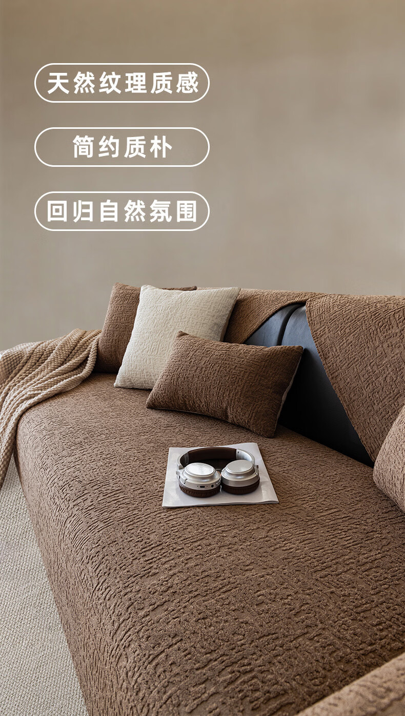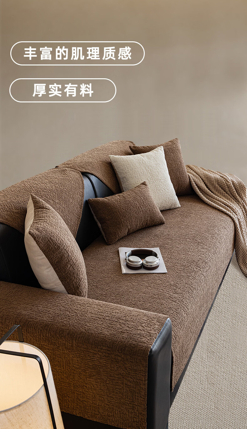金拾美月轻奢高级感沙发垫四季通用2026新款防滑秋冬直排皮坐垫套盖布巾 静悠-咖色 70cm*70cm