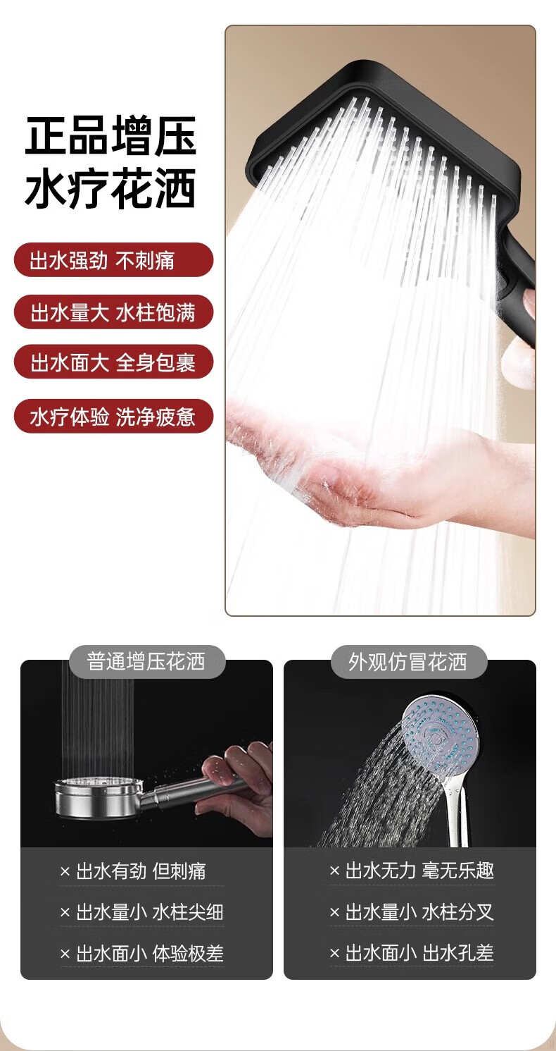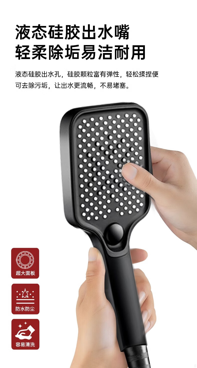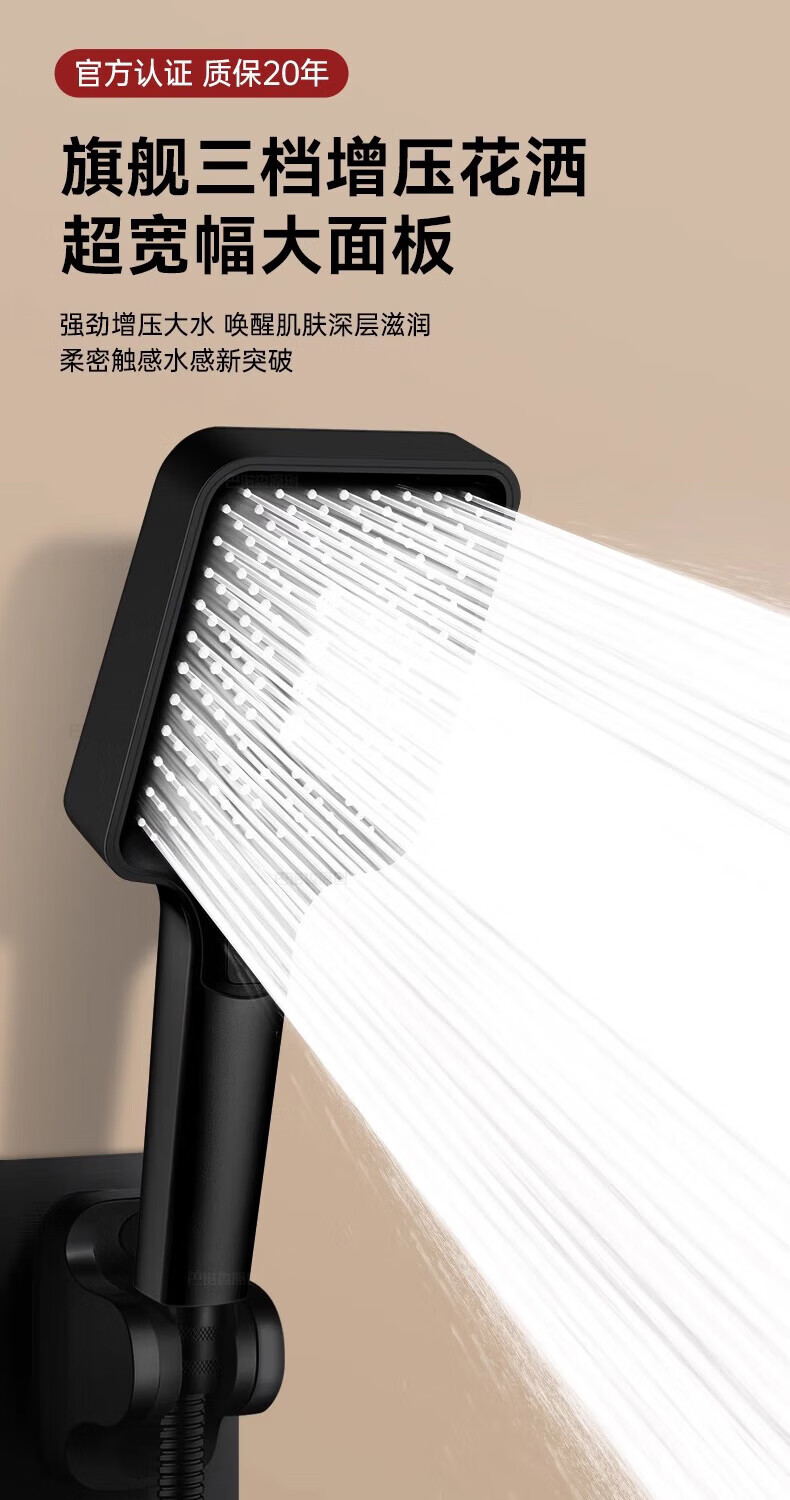 科倍洁增压花洒喷头超强淋浴家用冲凉沐浴套装浴室洗澡浴霸水龙头莲蓬头 【幻夜黑】增压花洒+1.5m防爆淋浴管+免打孔支架