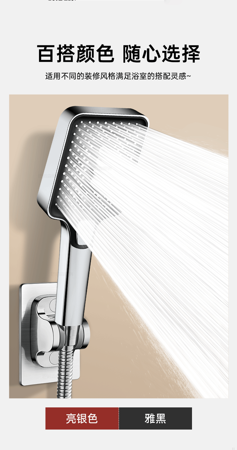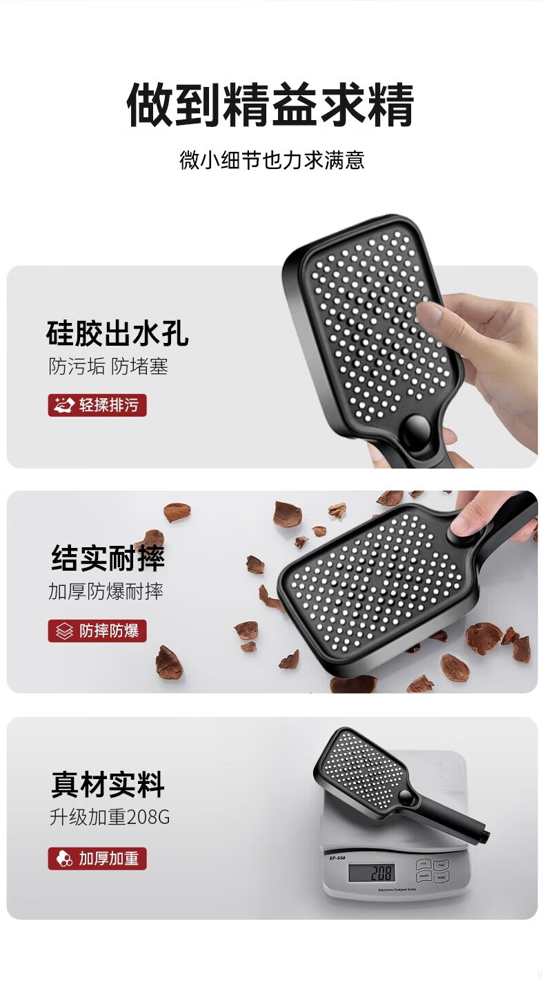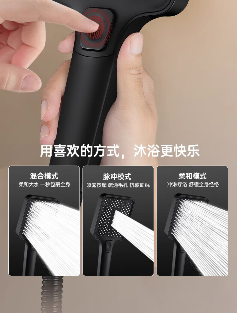 科倍洁增压花洒喷头超强淋浴家用冲凉沐浴套装浴室洗澡浴霸水龙头莲蓬头 【幻夜黑】增压花洒+1.5m防爆淋浴管+免打孔支架