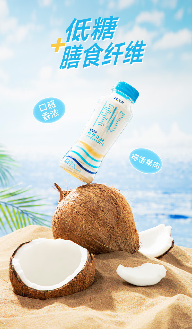 欢乐家 椰子汁250ml*15瓶 低糖椰汁椰奶植物蛋白饮料饮品 节日礼盒 【整箱】椰子汁250ml*15瓶