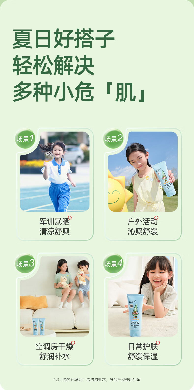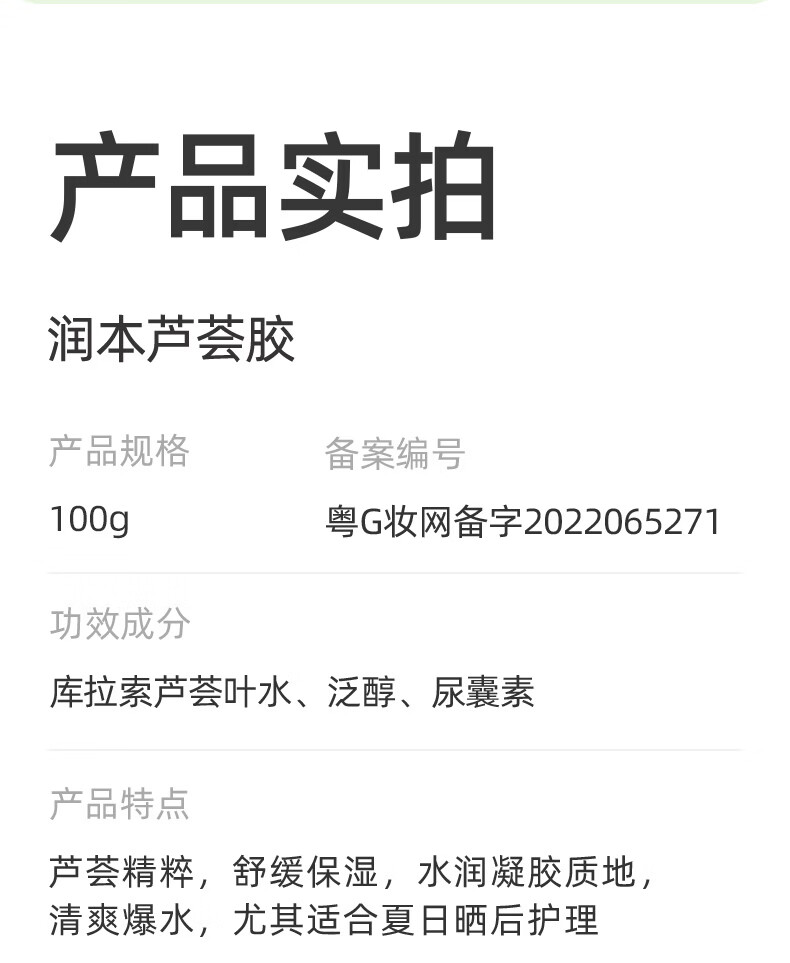 润本芦荟胶儿童晒后舒缓保湿凝露婴儿面霜学生宝宝补水润肤乳 芦荟胶 100g 【晒后舒缓】