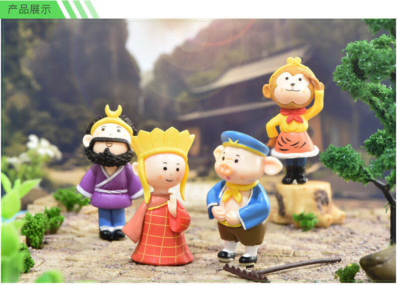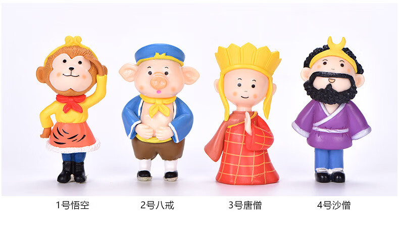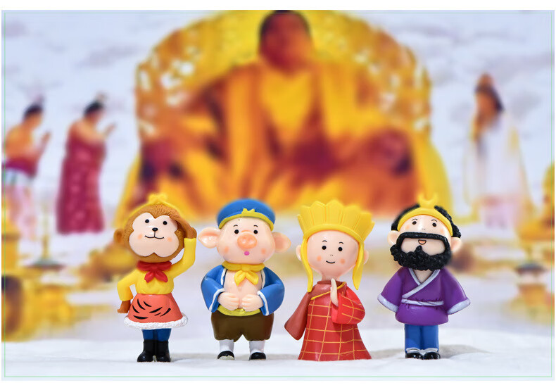 集物一册元旦礼物西游记师徒五人微摆件孙悟空唐僧猪八戒沙僧白龙马摆件 西游记小摆件师徒5个 礼盒装+灯串