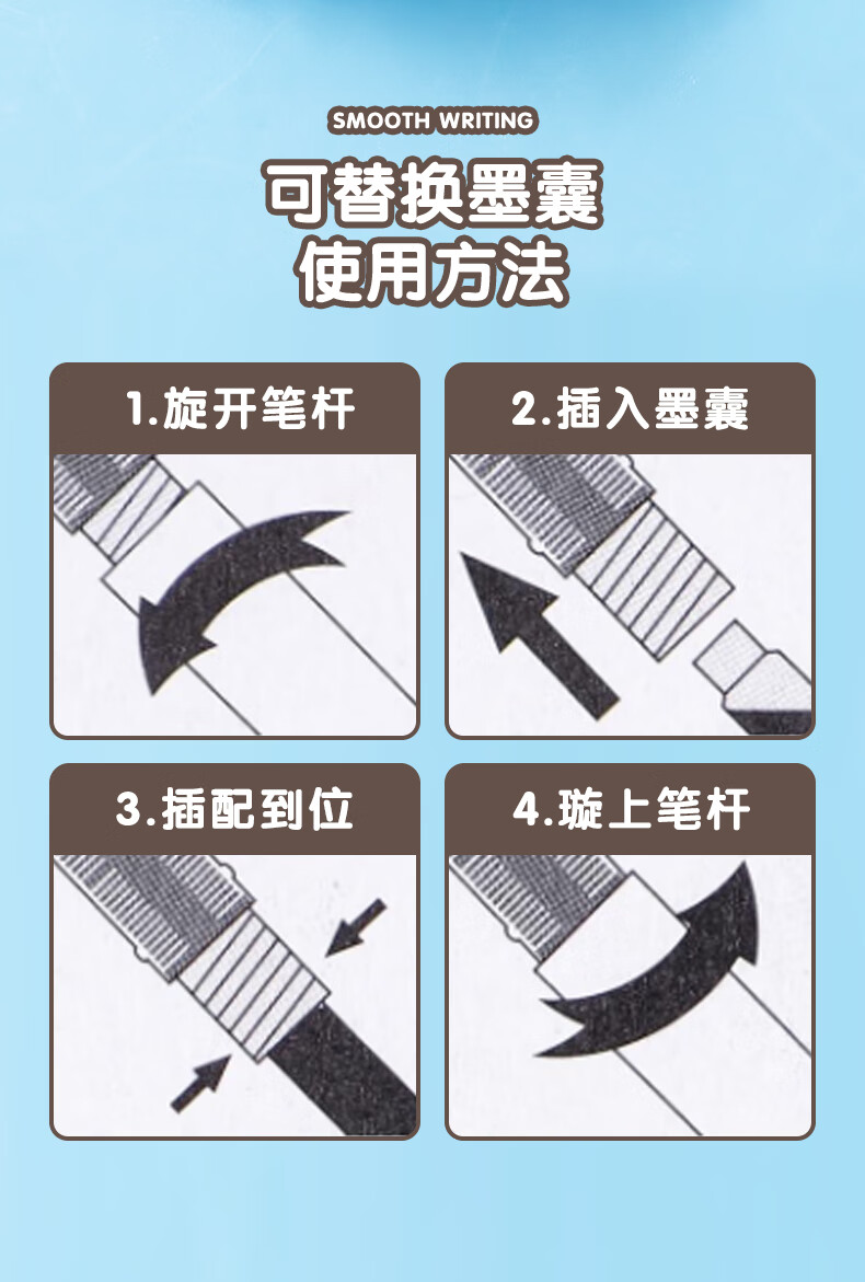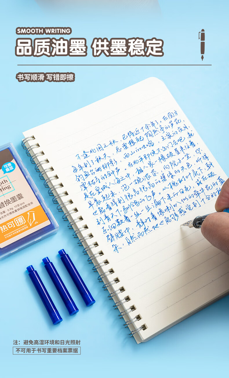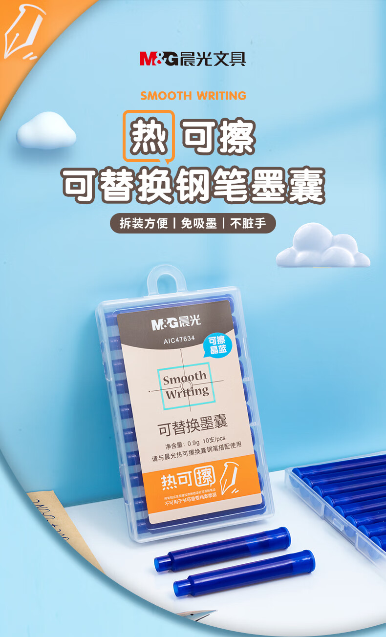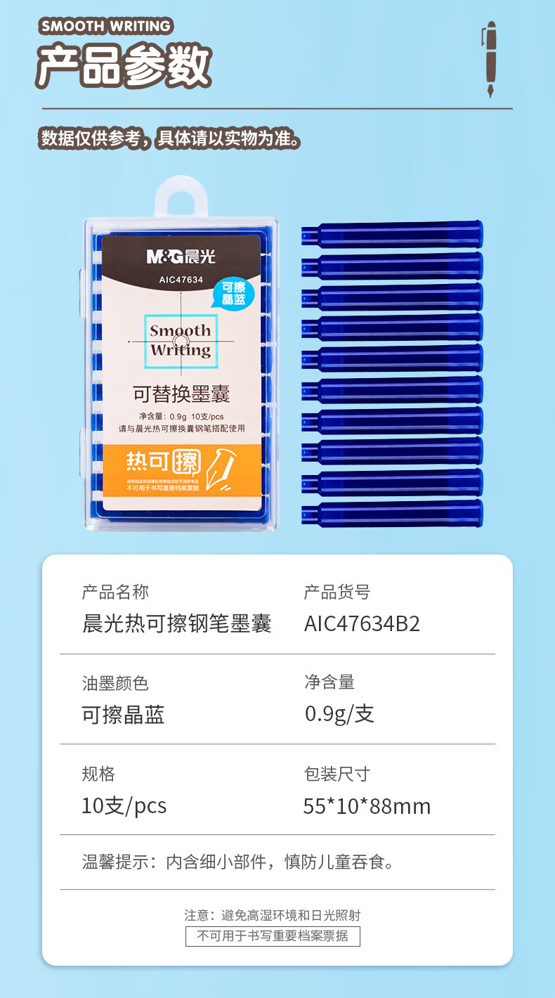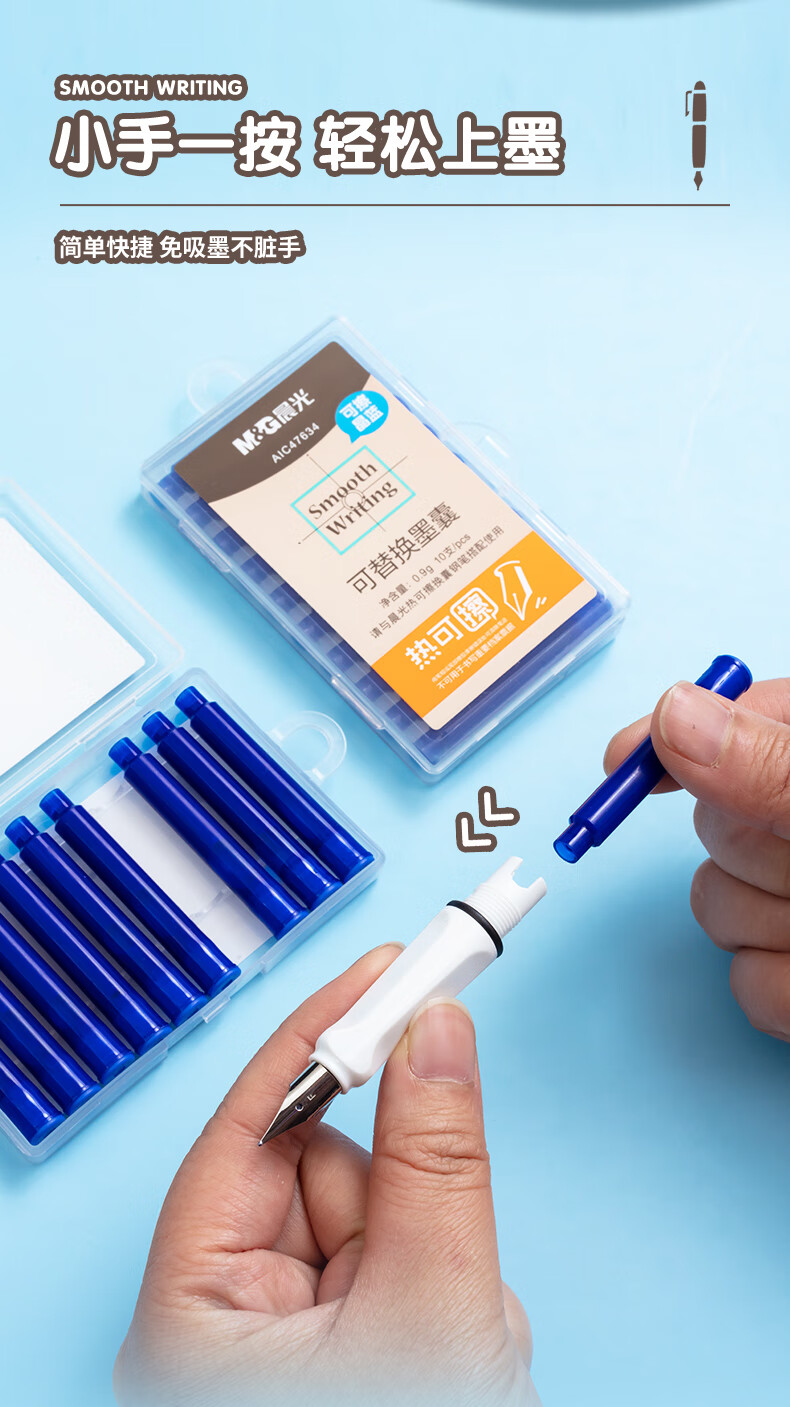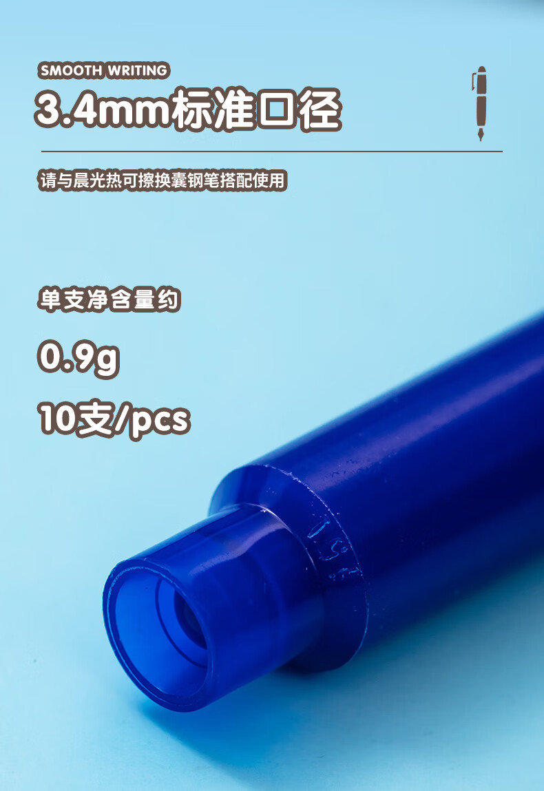晨光(M&G)文具热可擦晶蓝钢笔墨囊 3.4mm口径可替换钢笔墨水 学生写字10支装AIC47634B2