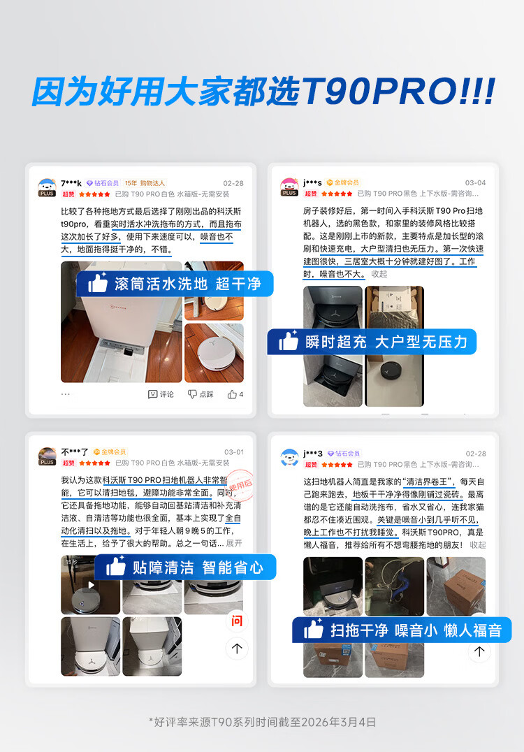 科沃斯(ECOVACS)T90 PRO扫地机器人26年新品【咨询客服领神券】自动清洗自动集尘滚筒洗地机器人T90 PRO黑色水箱版 T90PRO白色水箱咨询领大额神券