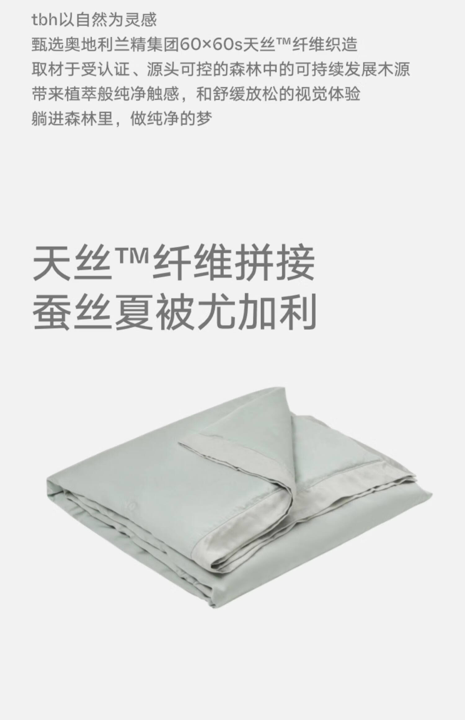 野兽派家居(tbh)蚕丝被天丝拼接夏被可机洗被子空调被凉感夏凉被 天丝拼接蚕丝夏被 尤加利 220cm*240cm