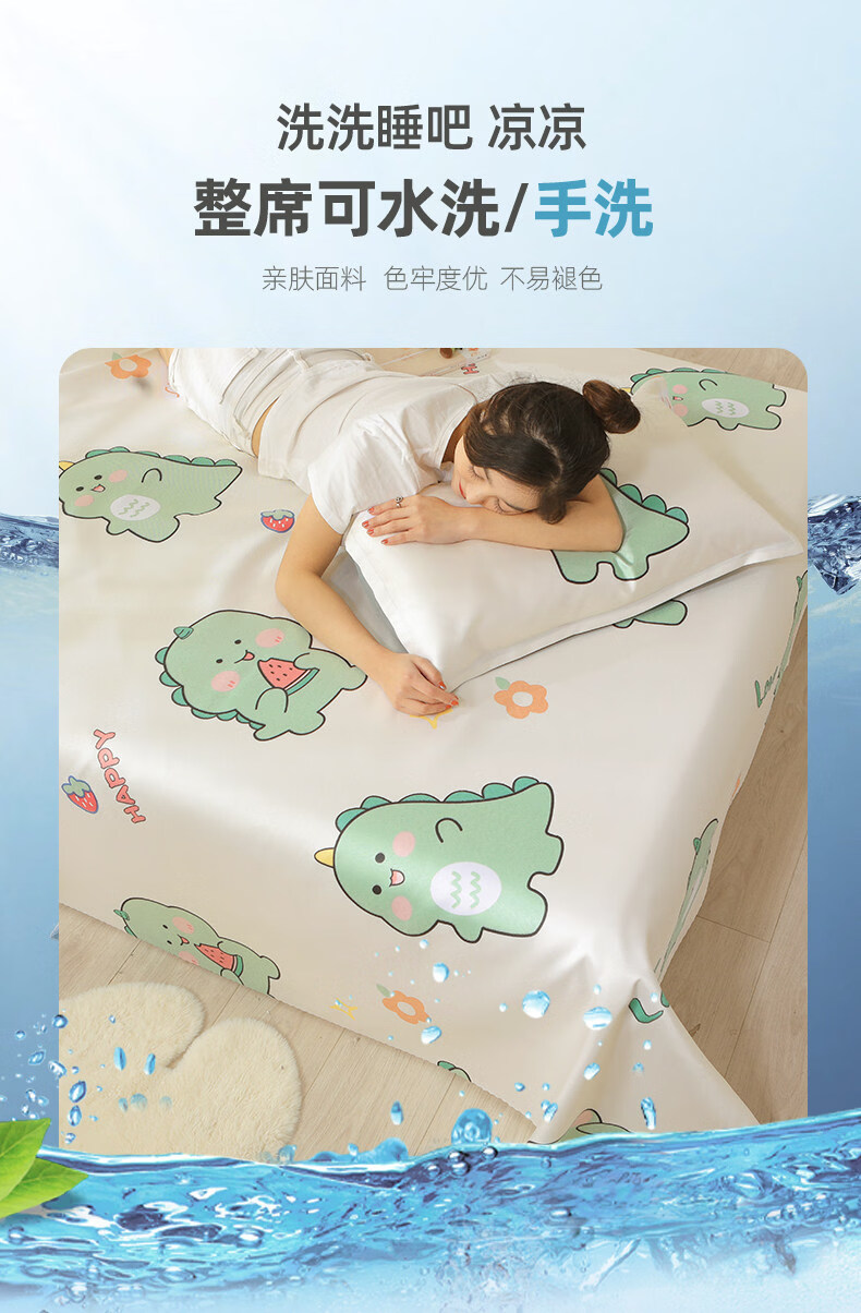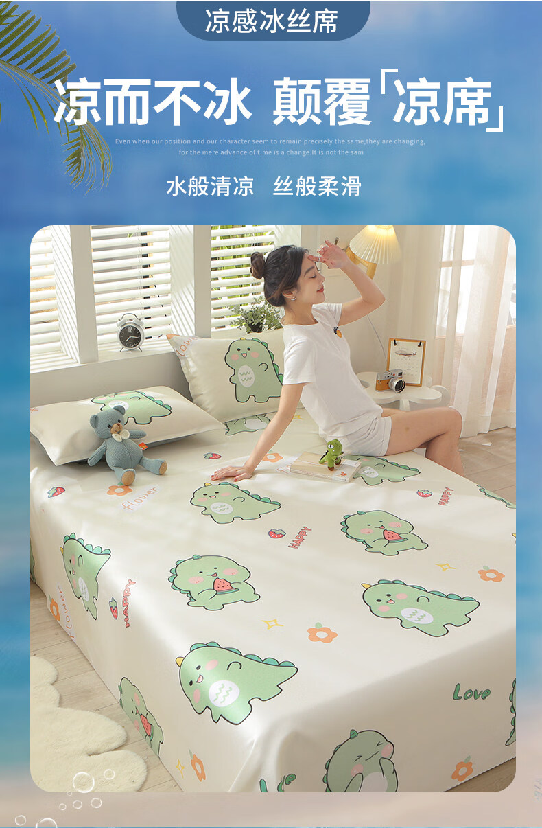 阿尔皮纳袋鼠冰丝乳胶凉席学生宿舍单双人床单床席子家用1.8x2夏季夏凉垫软席 【天空蓝】床单款 150cmx200cm