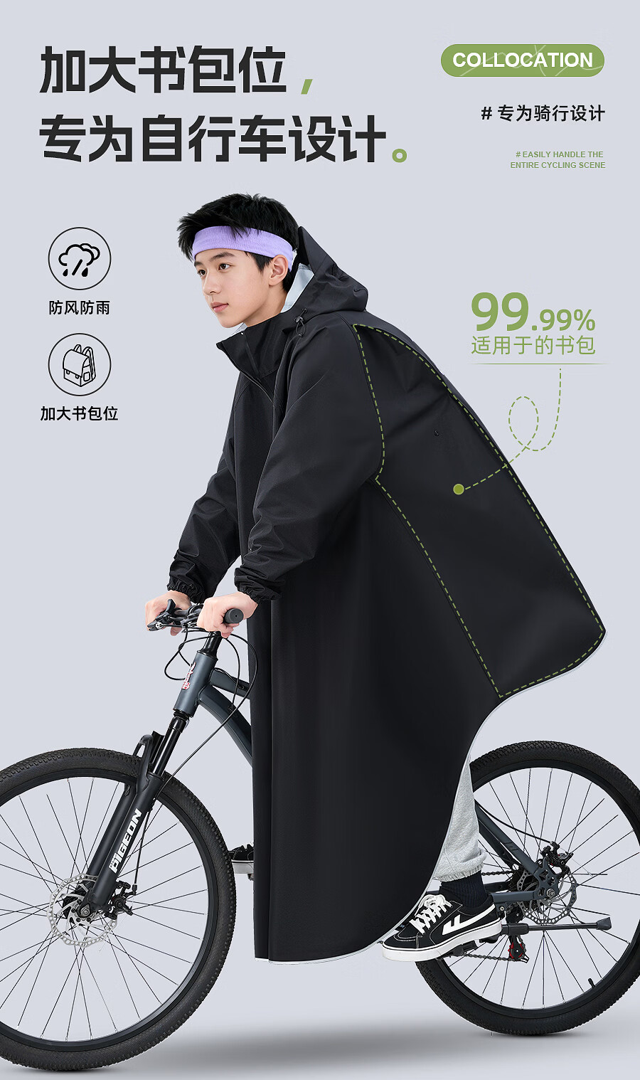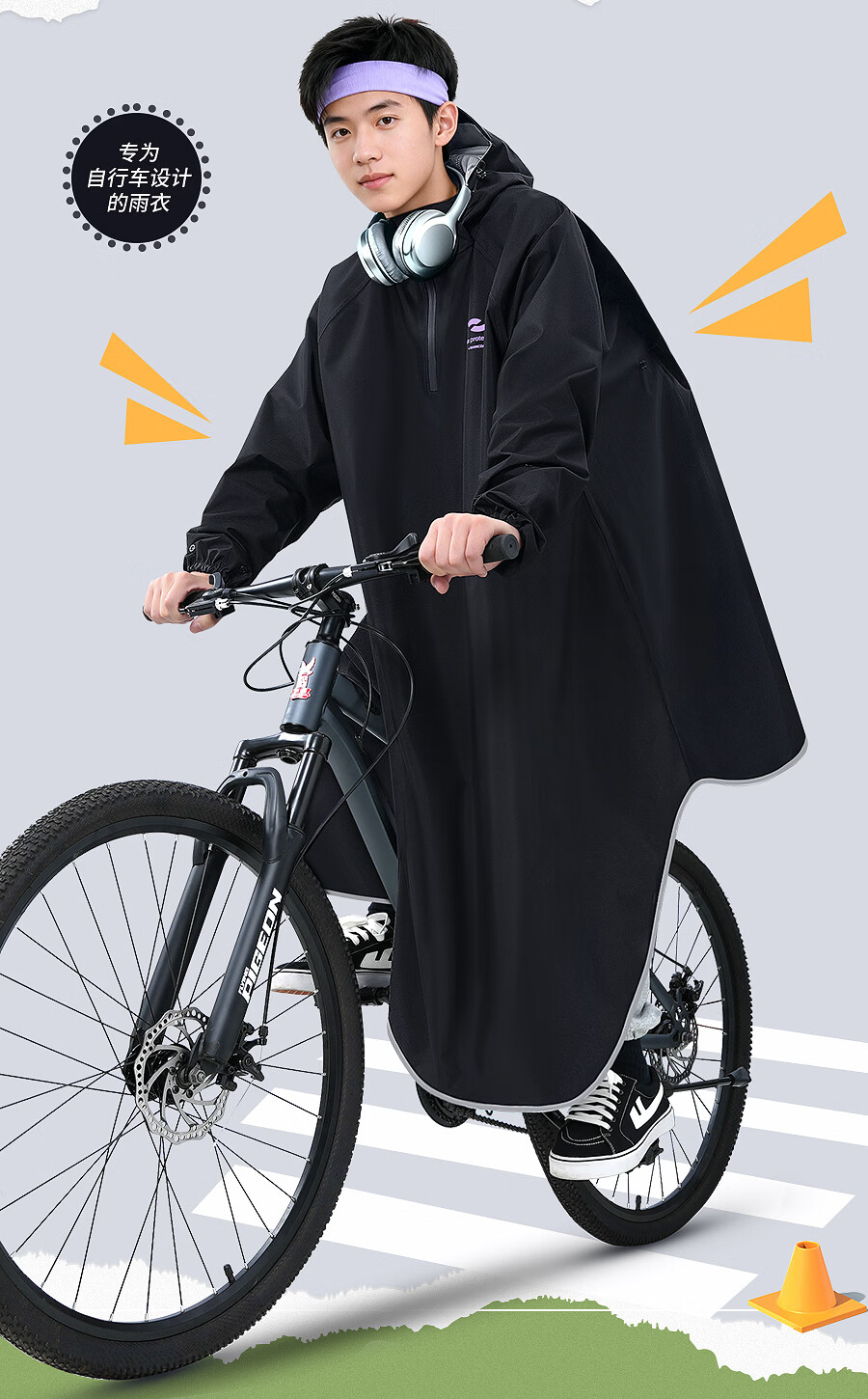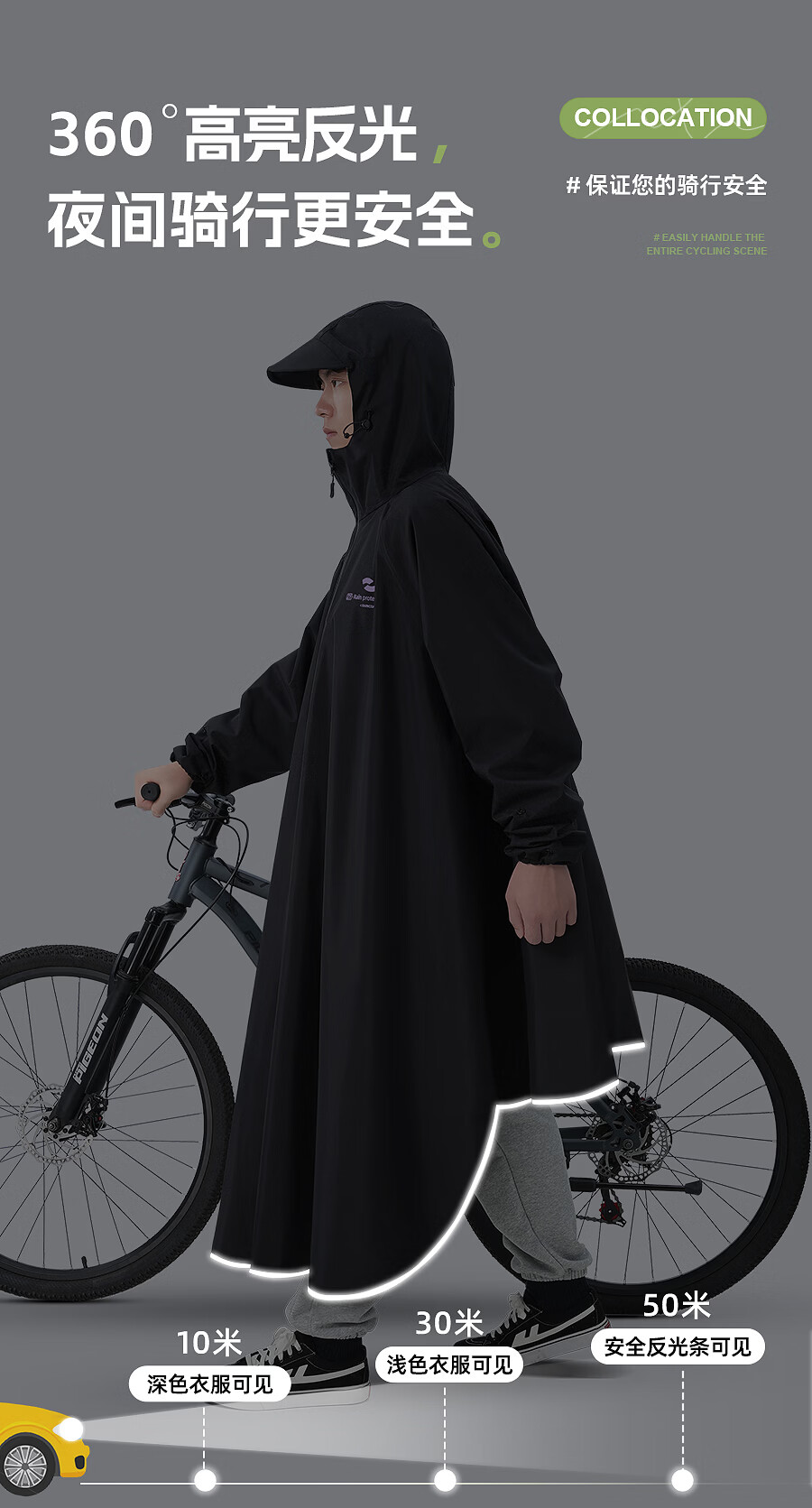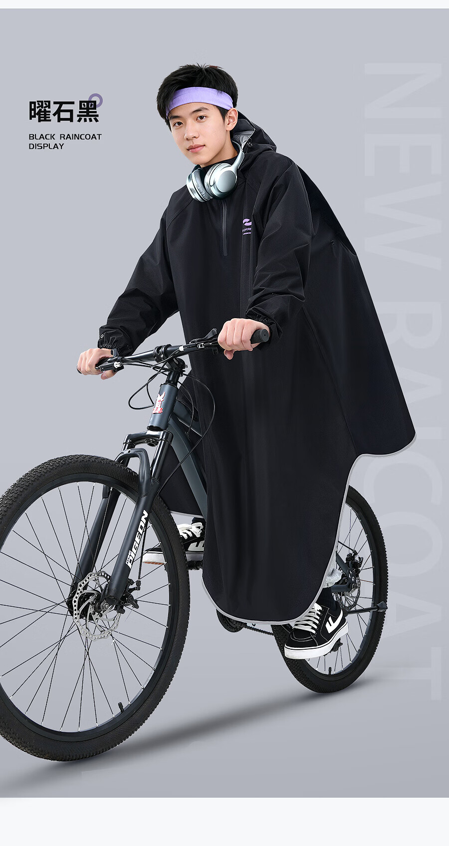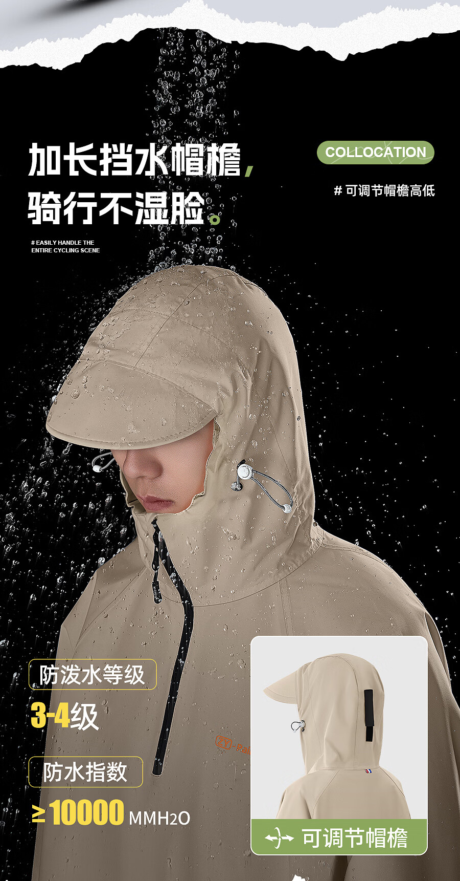 正雨雨衣自行车学生上学专用一体全身防暴雨山地车电动车骑行儿童雨披 砂砾卡【基础款】+拉链领口+大帽檐 4XL1件【身高165-190】当天发货