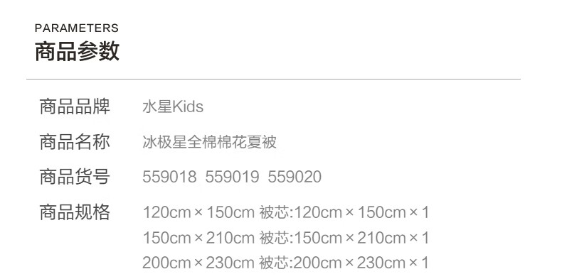 水星家纺冰极星全棉棉花夏被 冰极星全棉棉花夏被 120cm*150cm