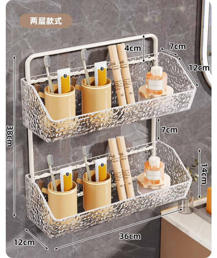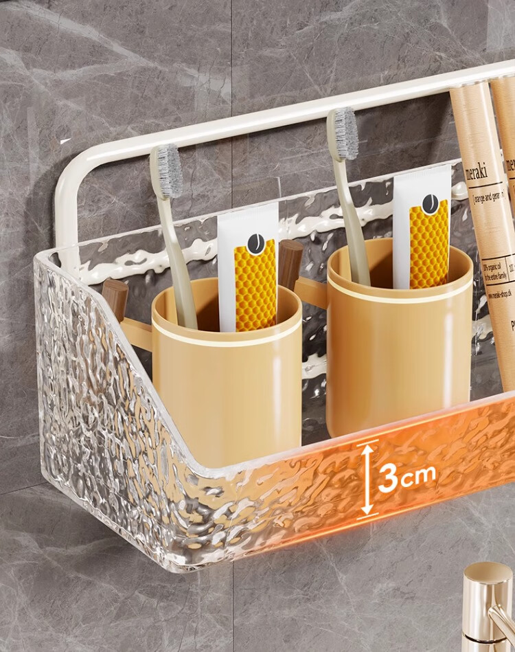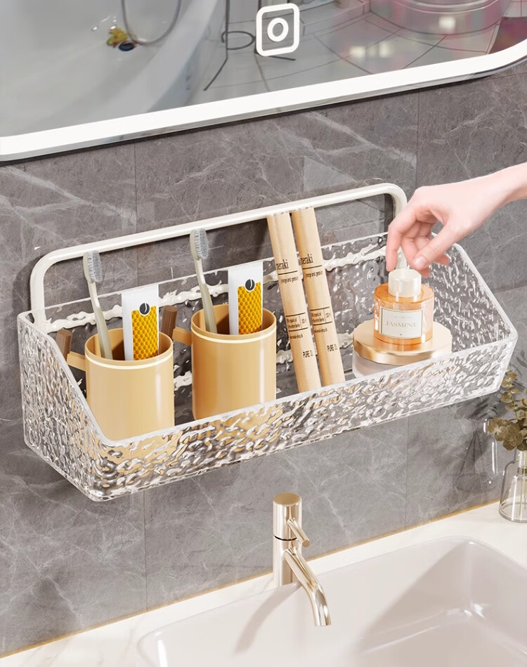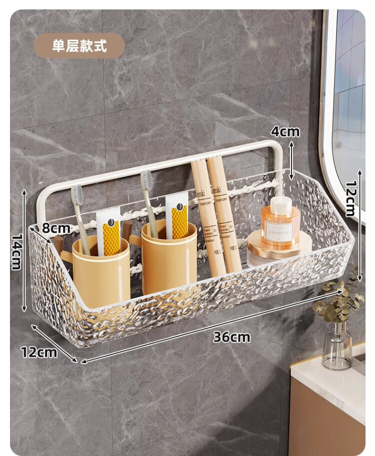 尔思家卫生间置物架免打孔洗漱台镜柜下方壁挂式牙刷杯架多功能收纳架 白色单层透明盒