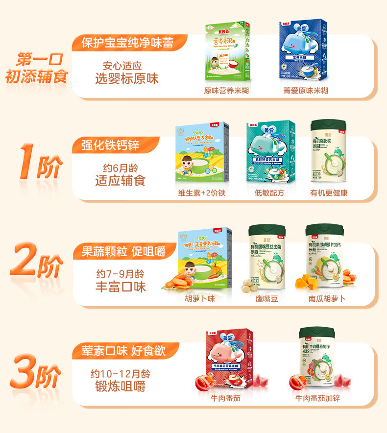 英氏(Engnice)米粉婴儿高铁有机米粉米糊辅食宝宝婴幼儿6个月以上罐装 1阶6月+第一口选维C加铁 258g*1罐