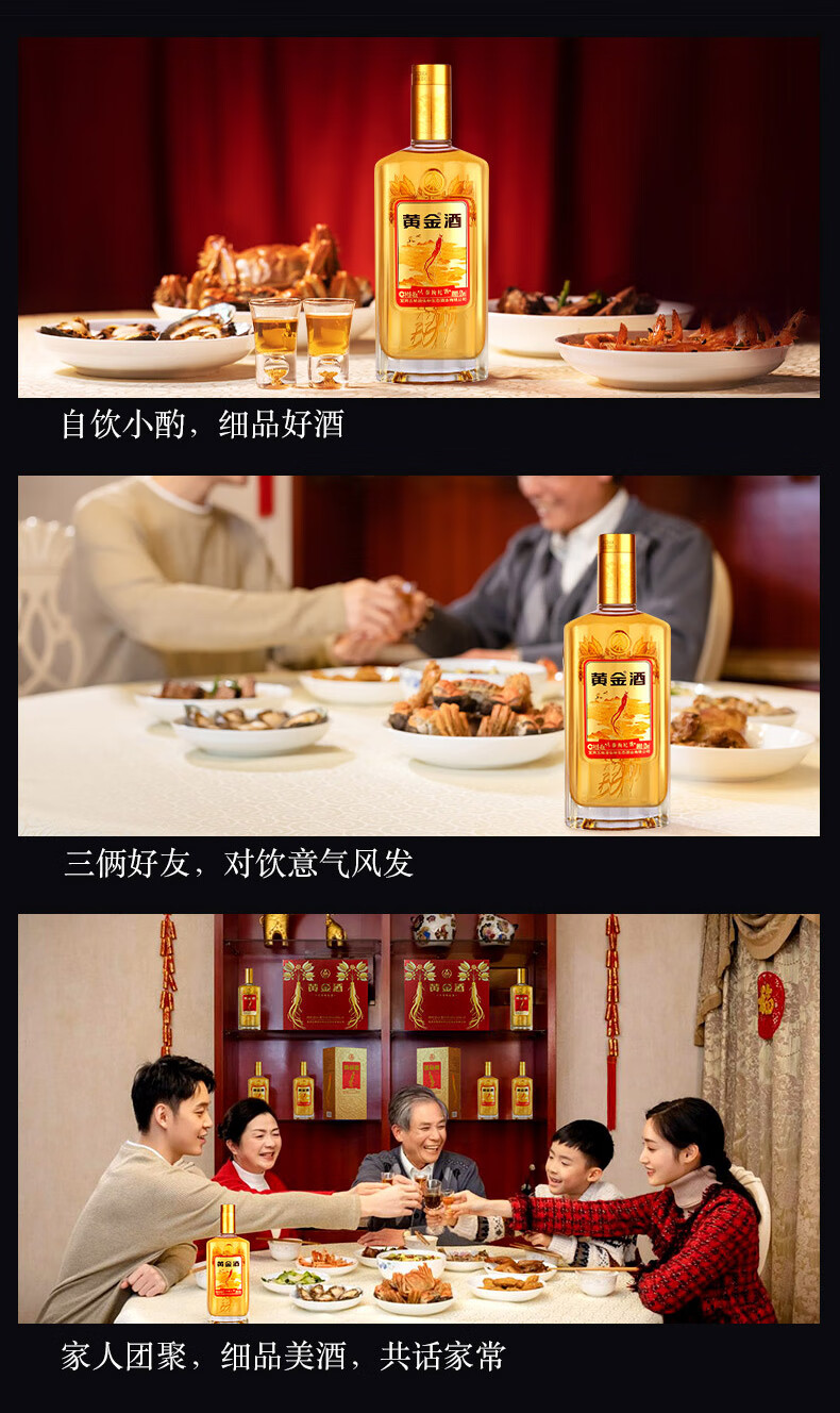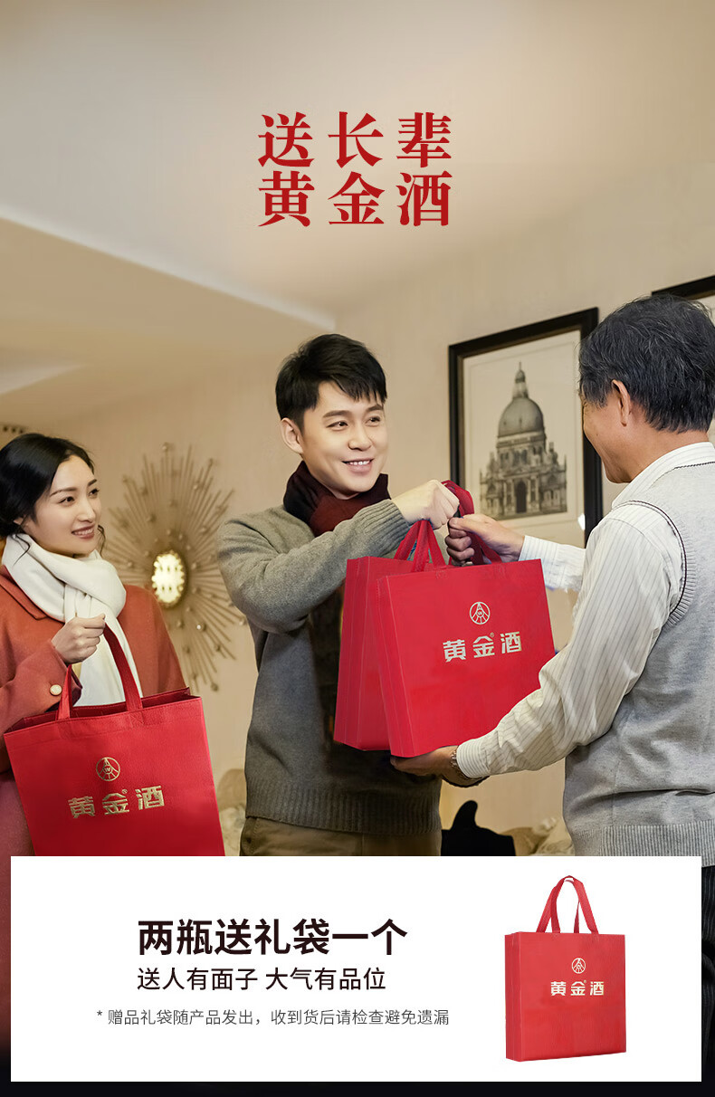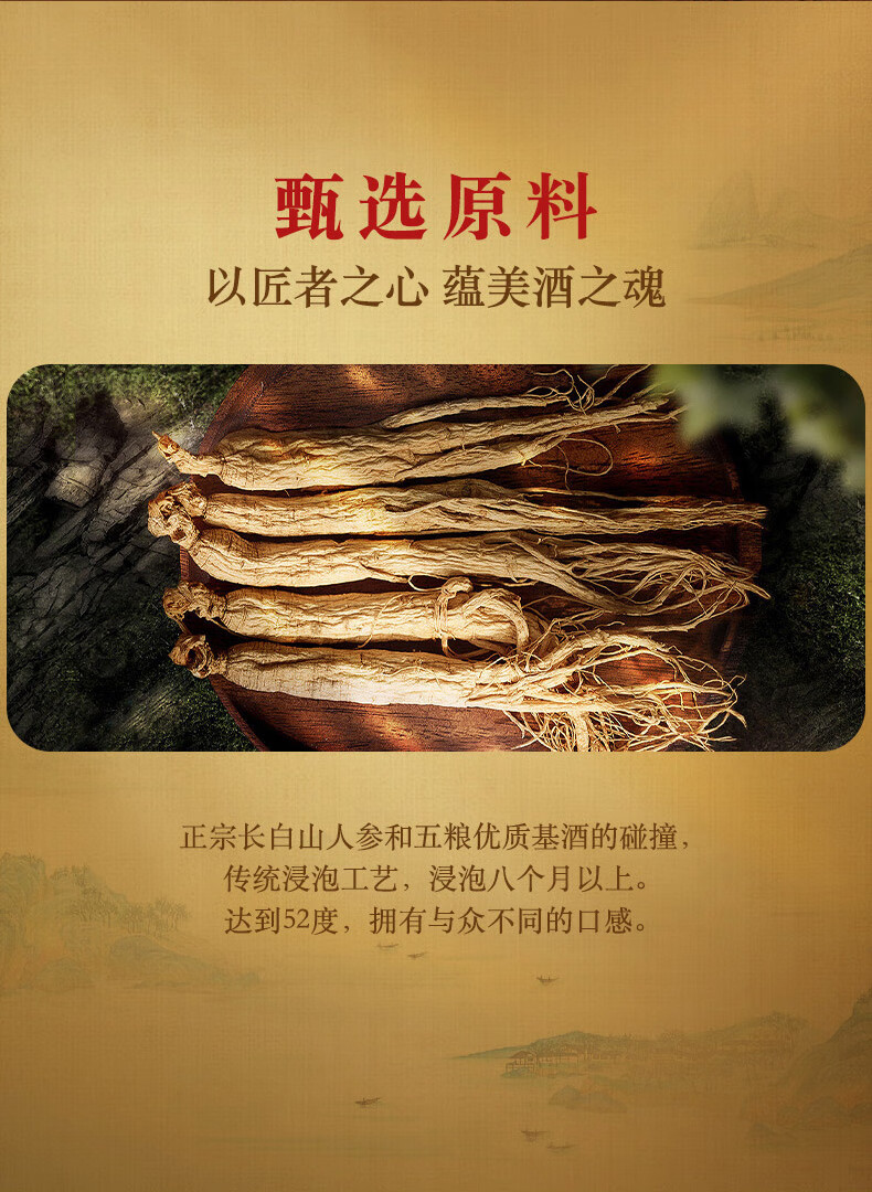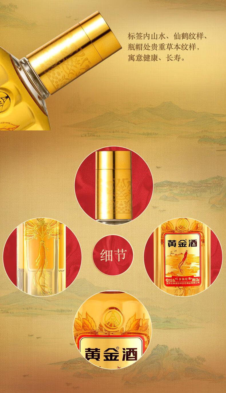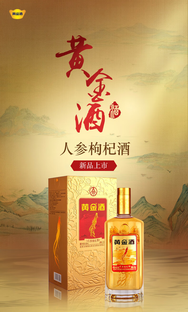 黄金酒礼盒装 高端伴手礼盒酒 送礼自饮酒 52度 480mL 2瓶 黄金酒人参枸杞酒礼盒