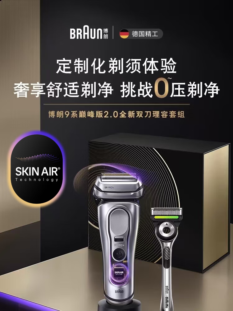 博朗9系巅峰版2.0吉列剃须刀手动德国进口往复式电动剃须刀刮胡刀送老公男朋友生日礼物 男