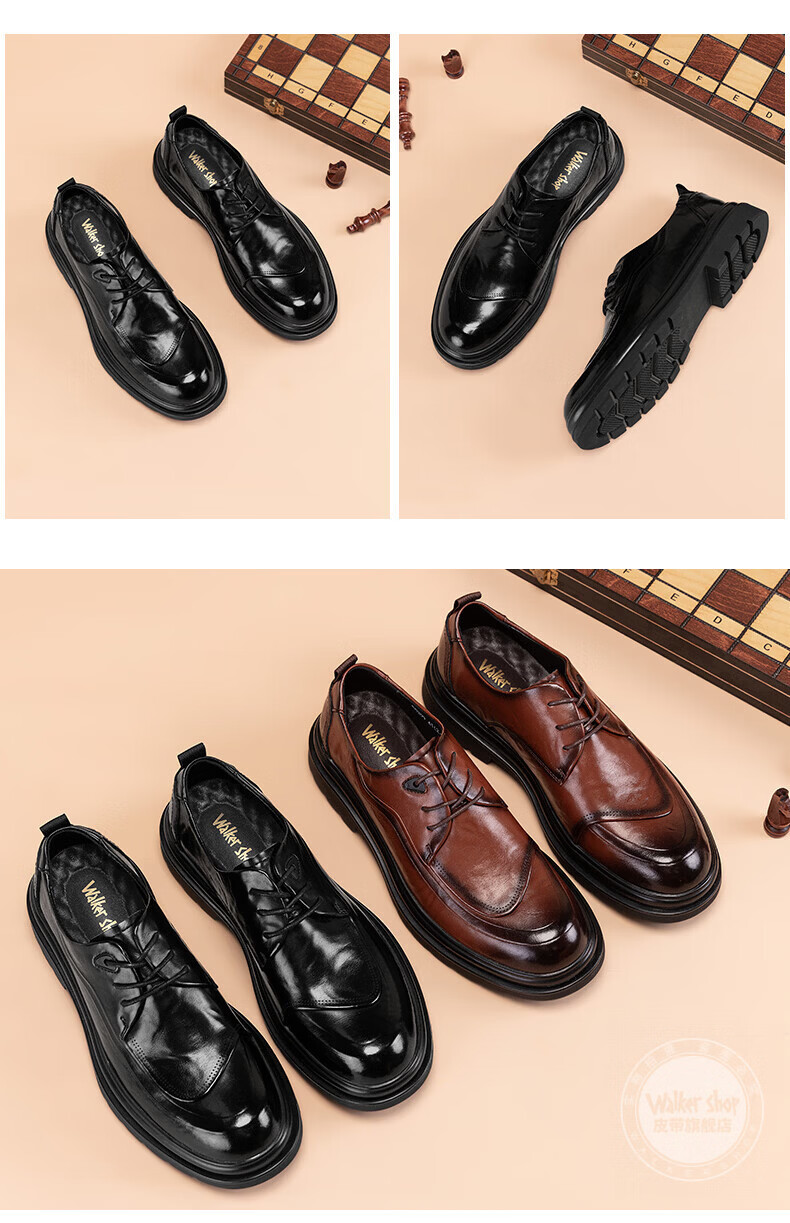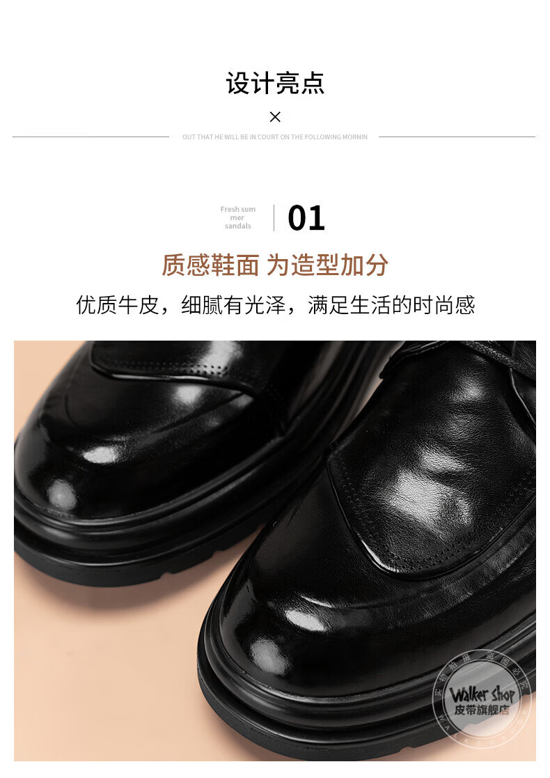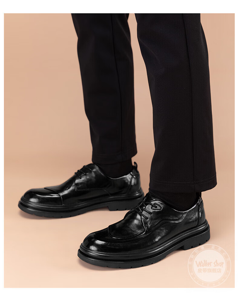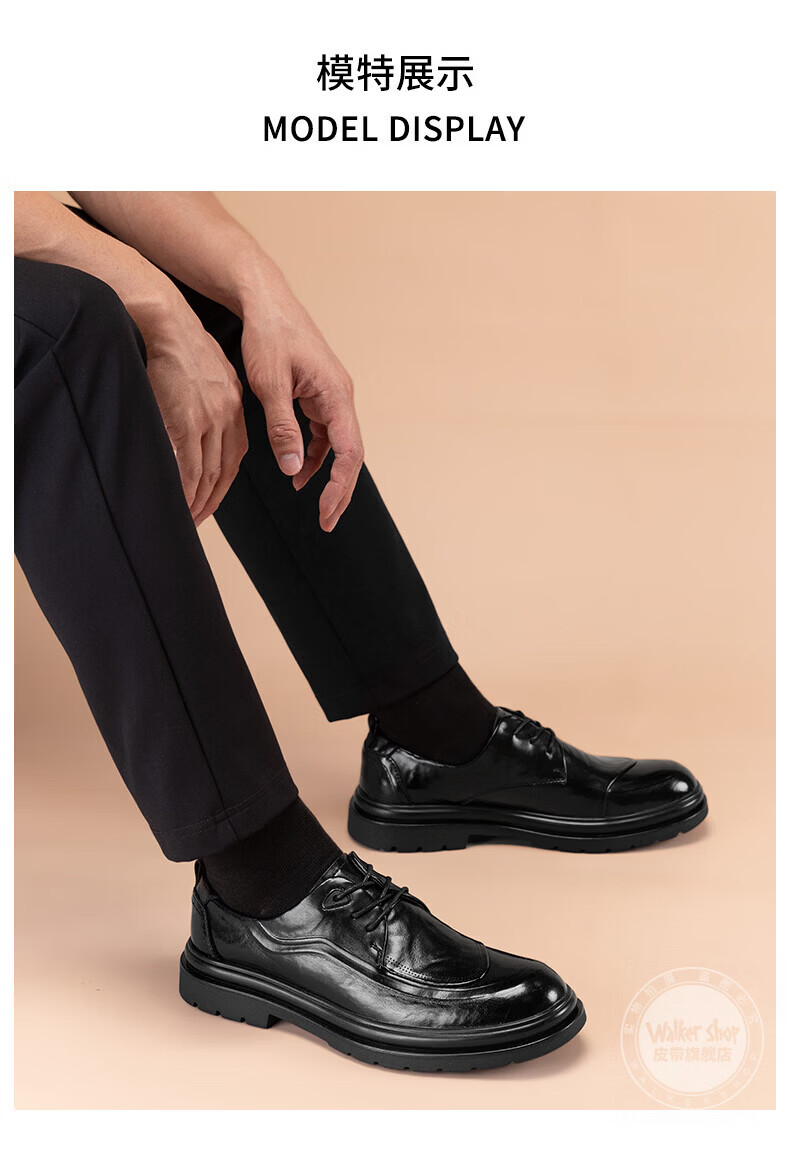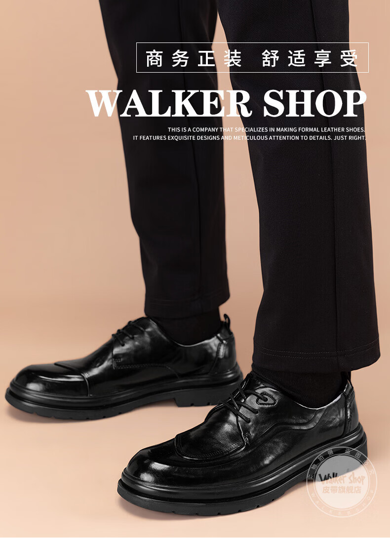 Walker Shop皮鞋男高端商务正装男士皮鞋2026新款休闲真皮透气软底内增高男鞋 黑色【内增高】 40