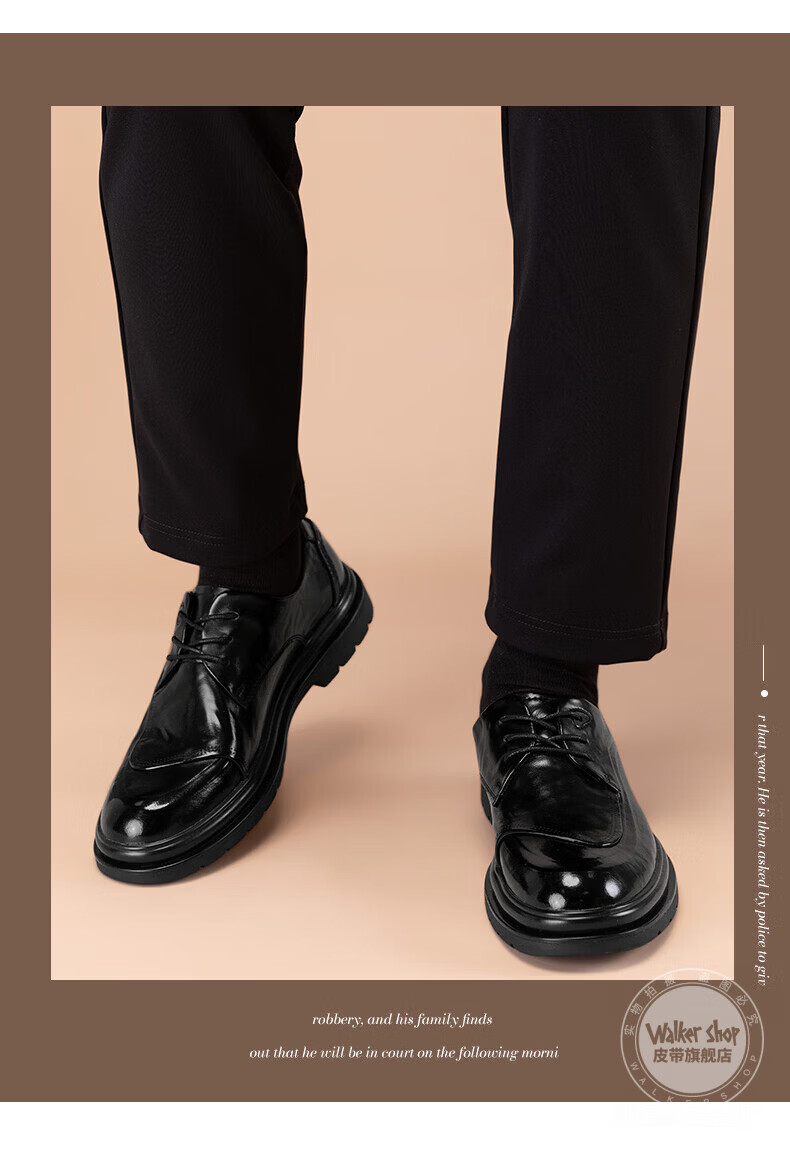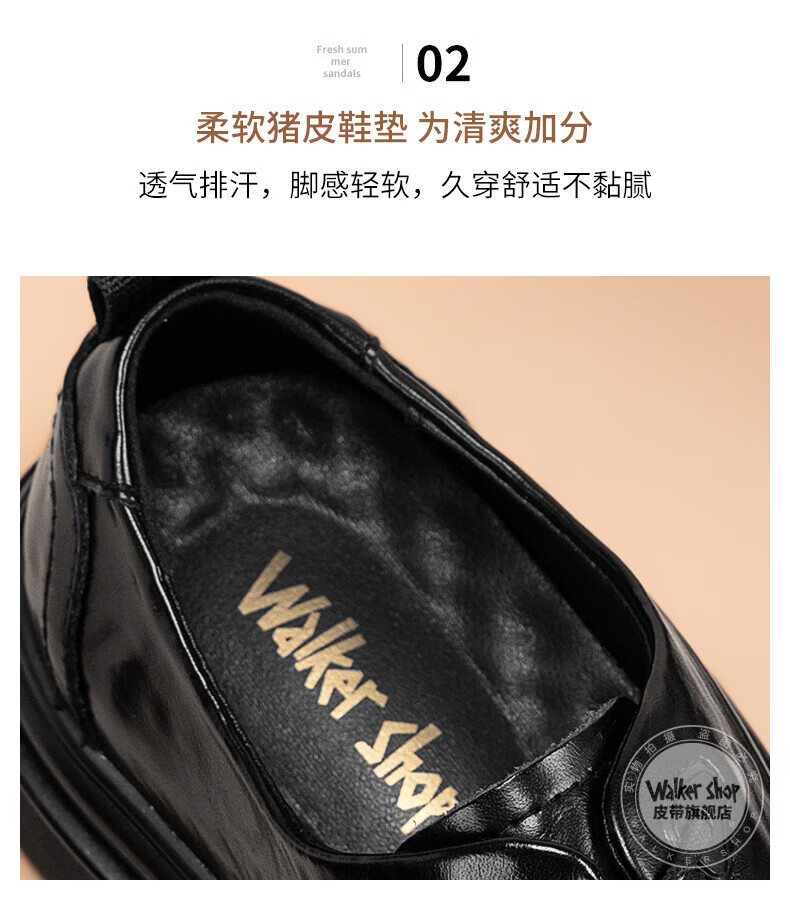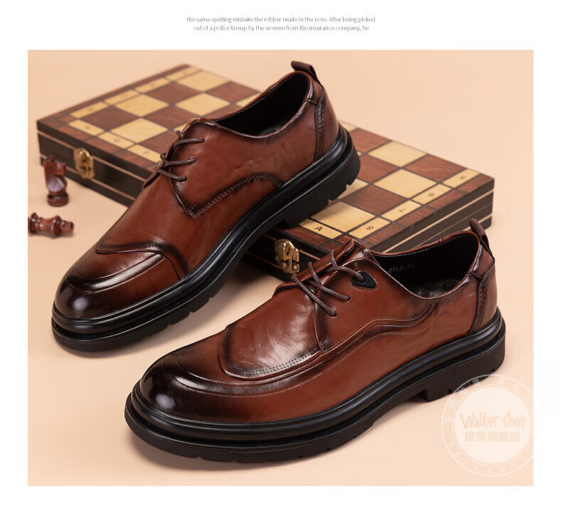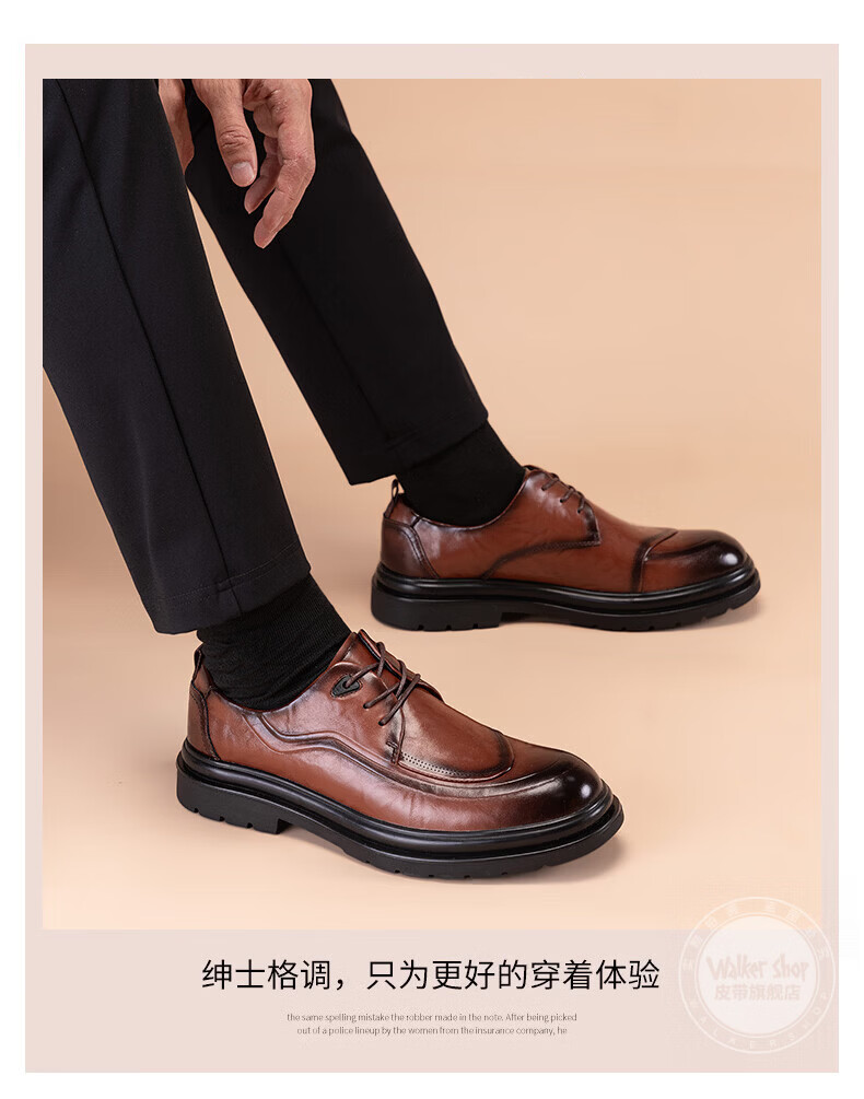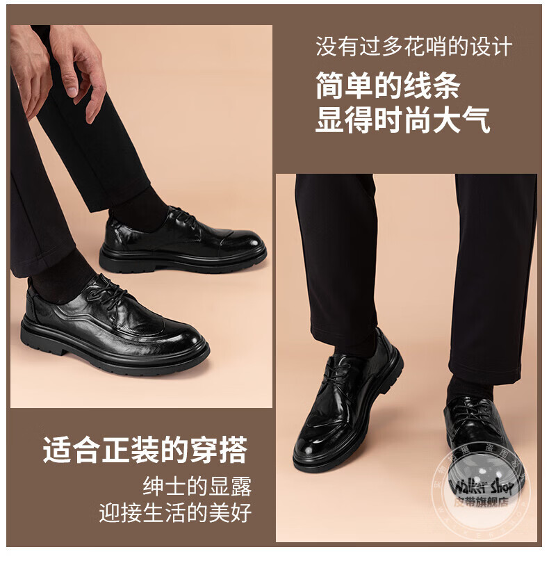 Walker Shop皮鞋男高端商务正装男士皮鞋2026新款休闲真皮透气软底内增高男鞋 黑色【内增高】 40