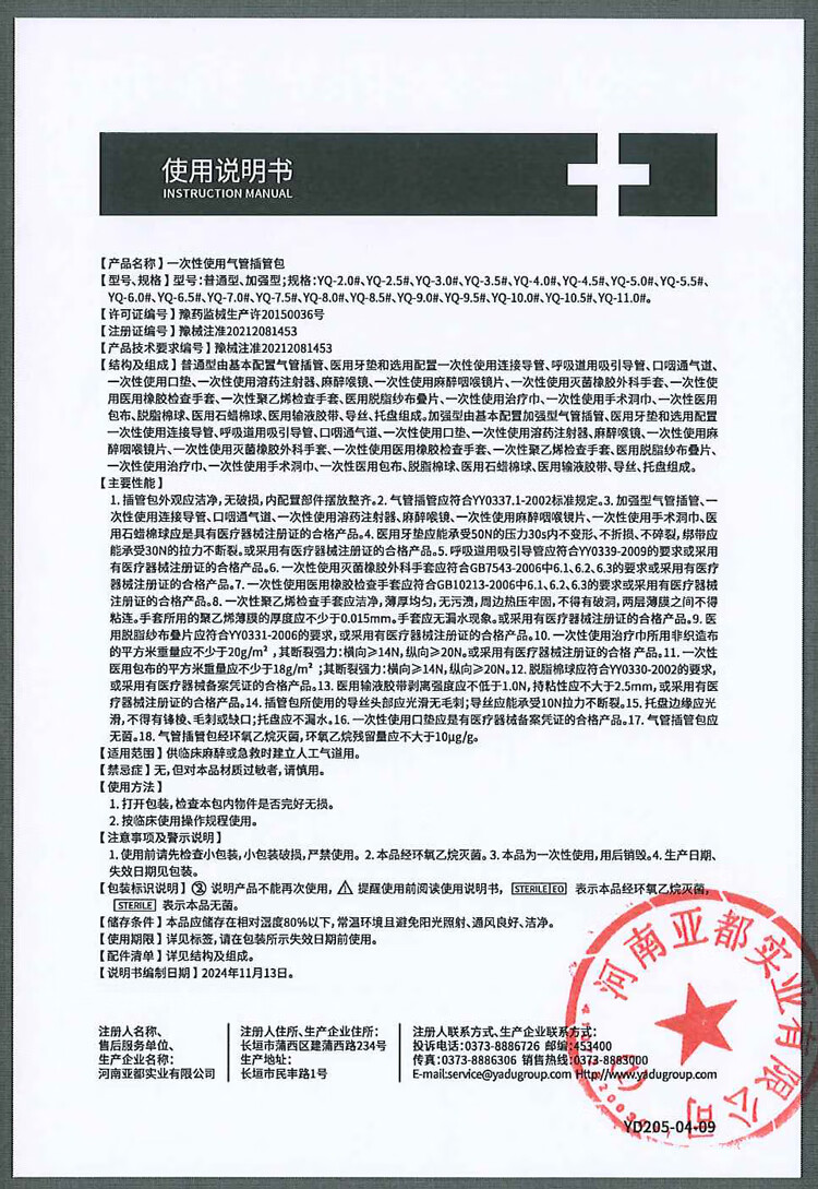 一次性使用气管插管包医用全麻包套件辅助包普通型 A型 YQ-6.5#