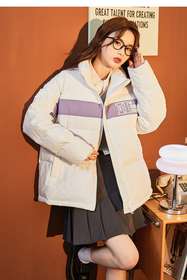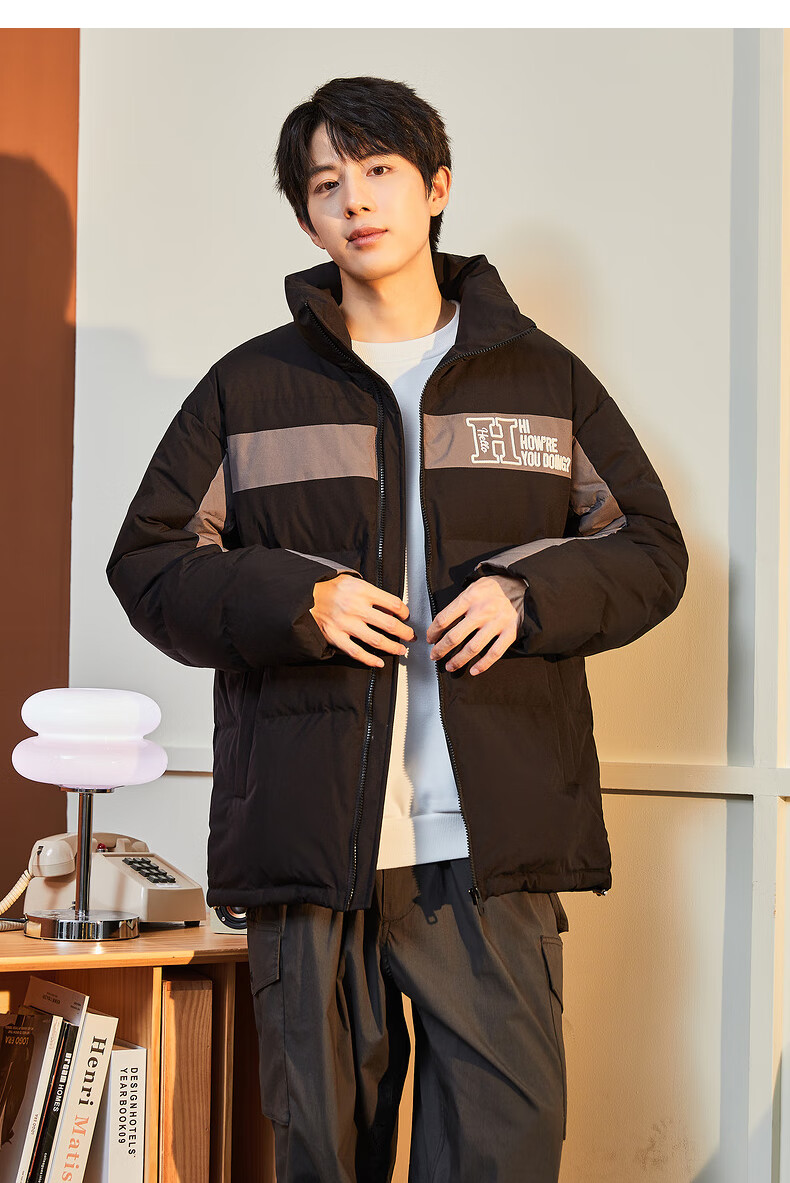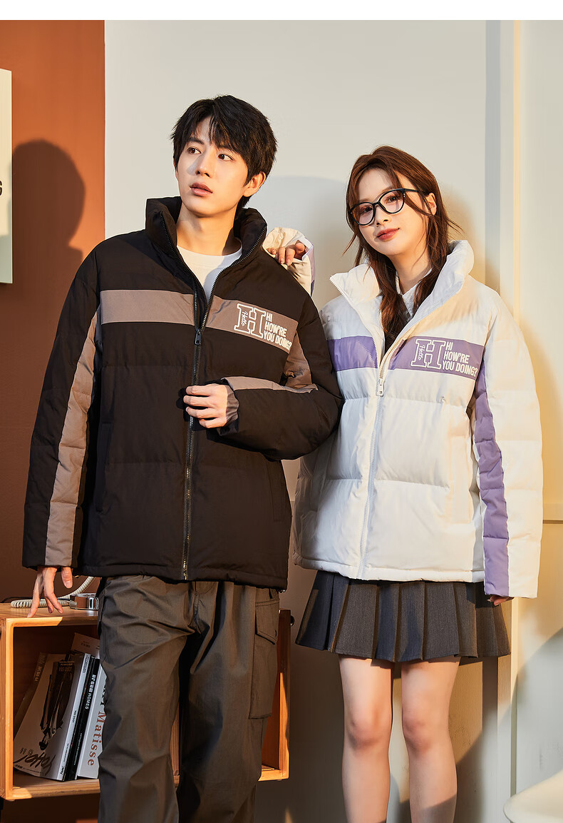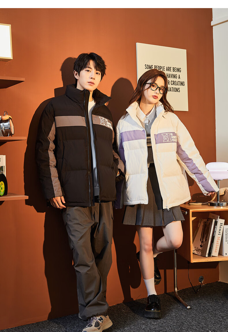 唐狮冬季新款情侣装羽绒服男女加厚立领面包服保暖拼接撞色外套 男款黑色 XXL