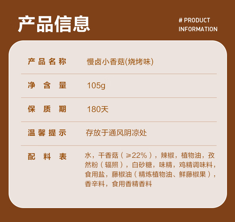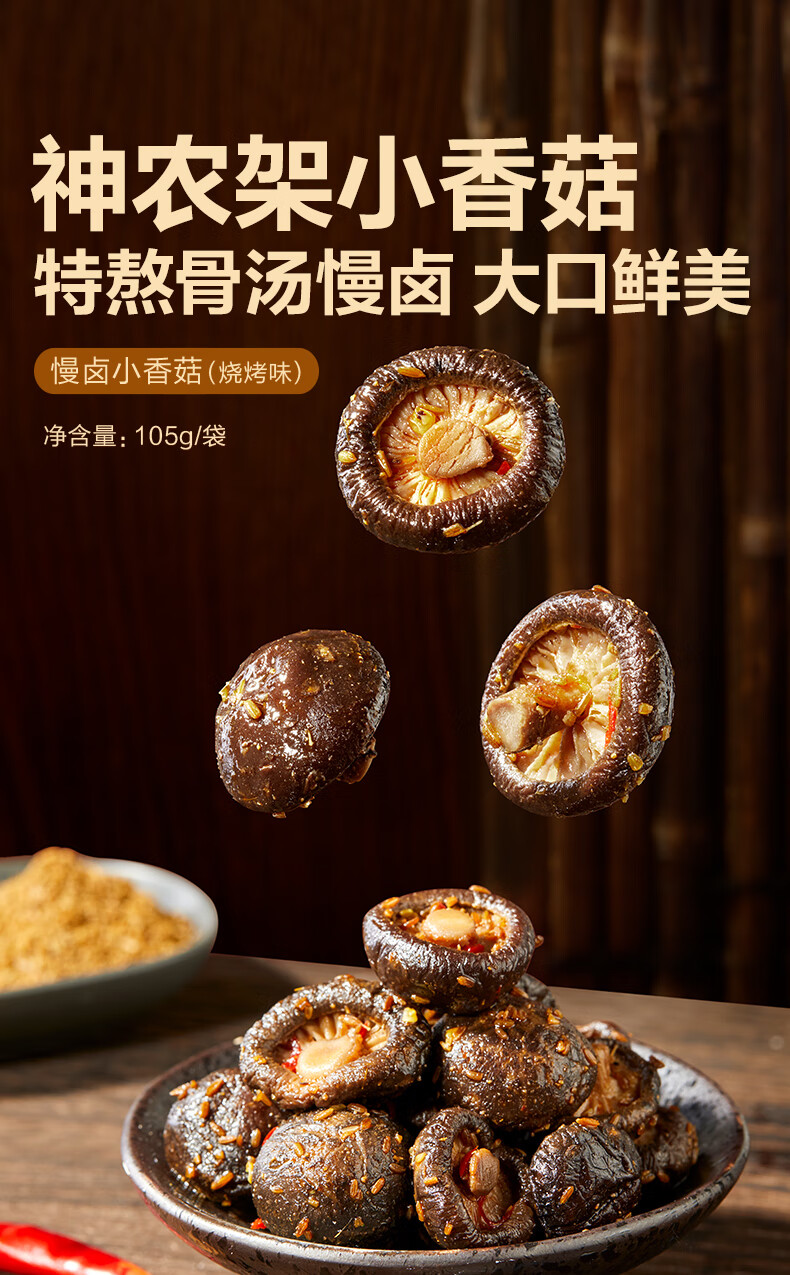 良品铺子 慢卤小香菇(烧烤味)105g休闲零食卤味素食办公室小吃即食零食