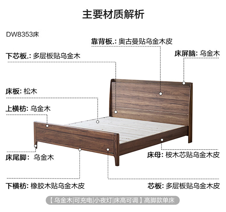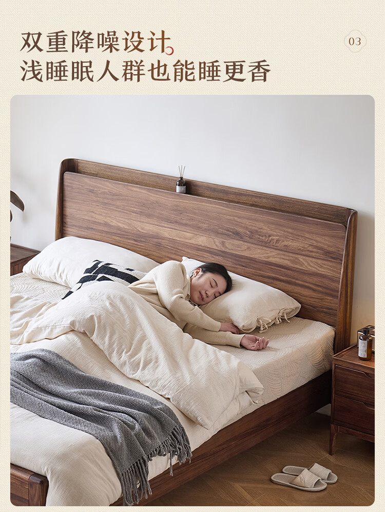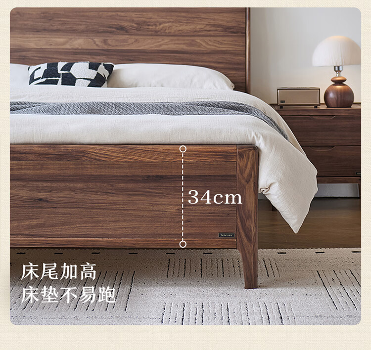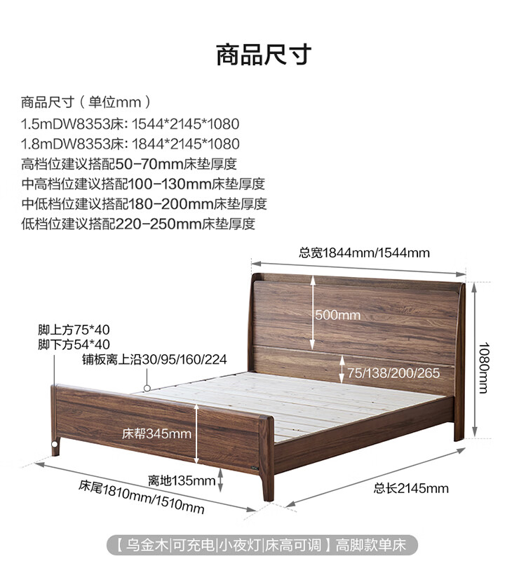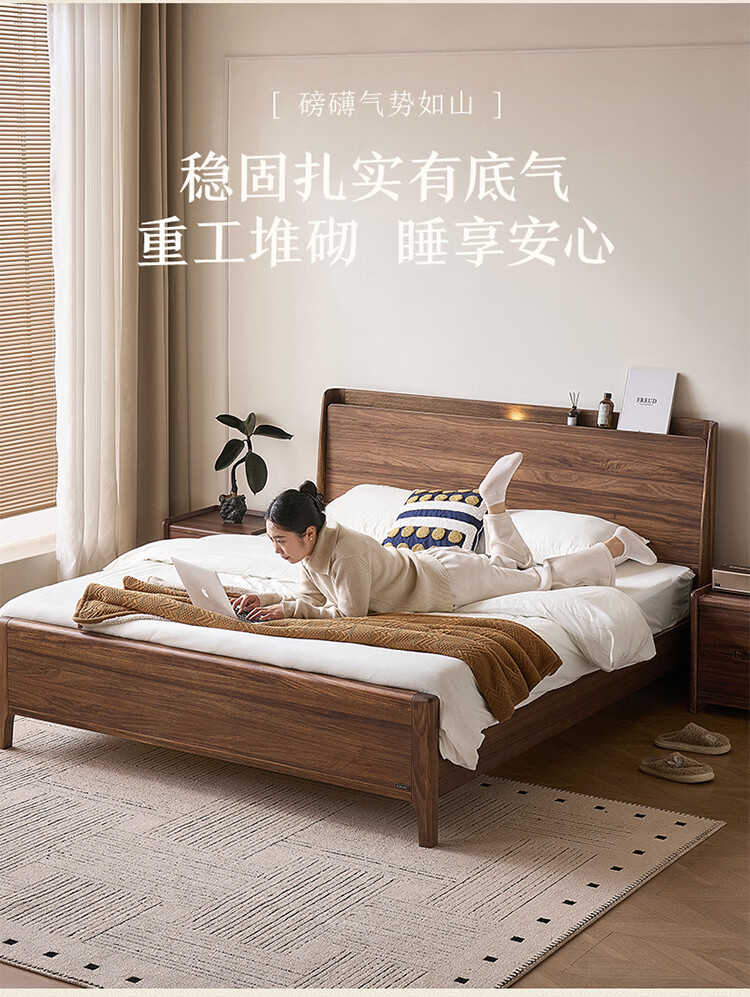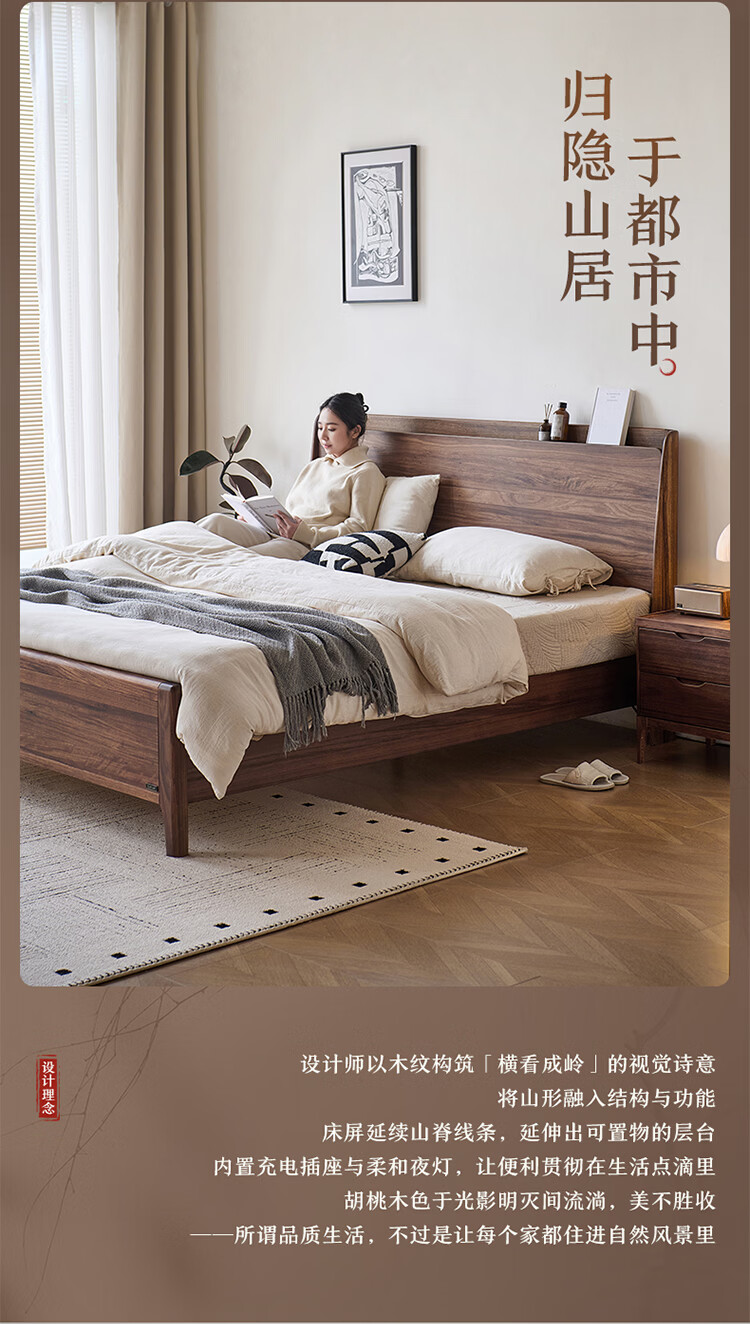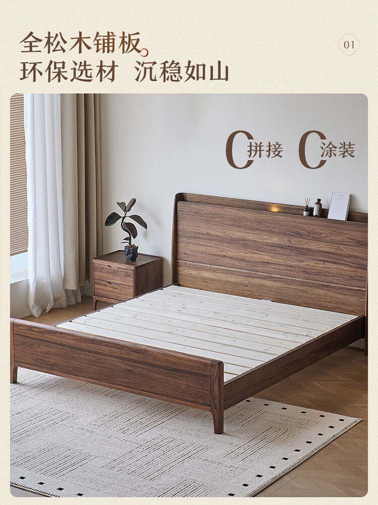 全友家居新中式乌金木多功能实木床2026新款主卧室高脚床储物双人大床 【乌金木 | 可充电 | 小夜灯 | 床高可调】高脚款 1.5米x2米 单床