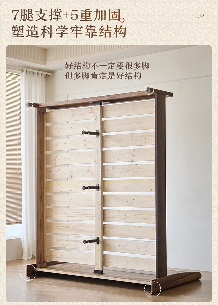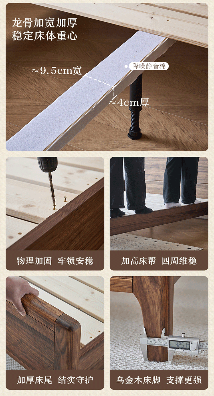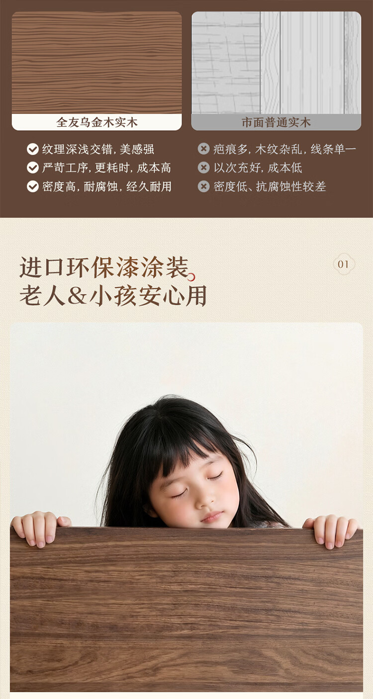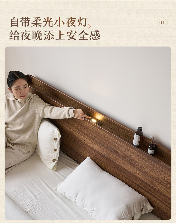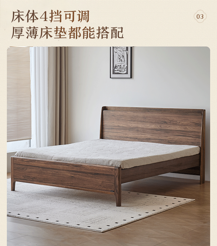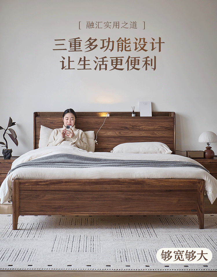 全友家居新中式乌金木多功能实木床2026新款主卧室高脚床储物双人大床 【乌金木 | 可充电 | 小夜灯 | 床高可调】高脚款 1.5米x2米 单床