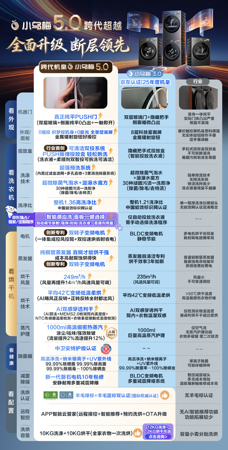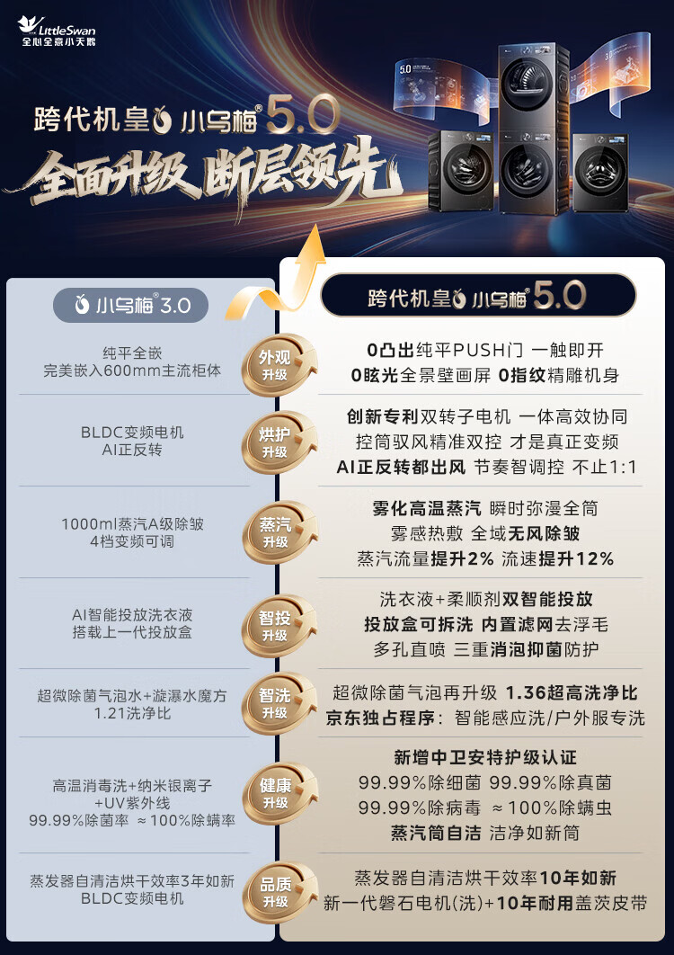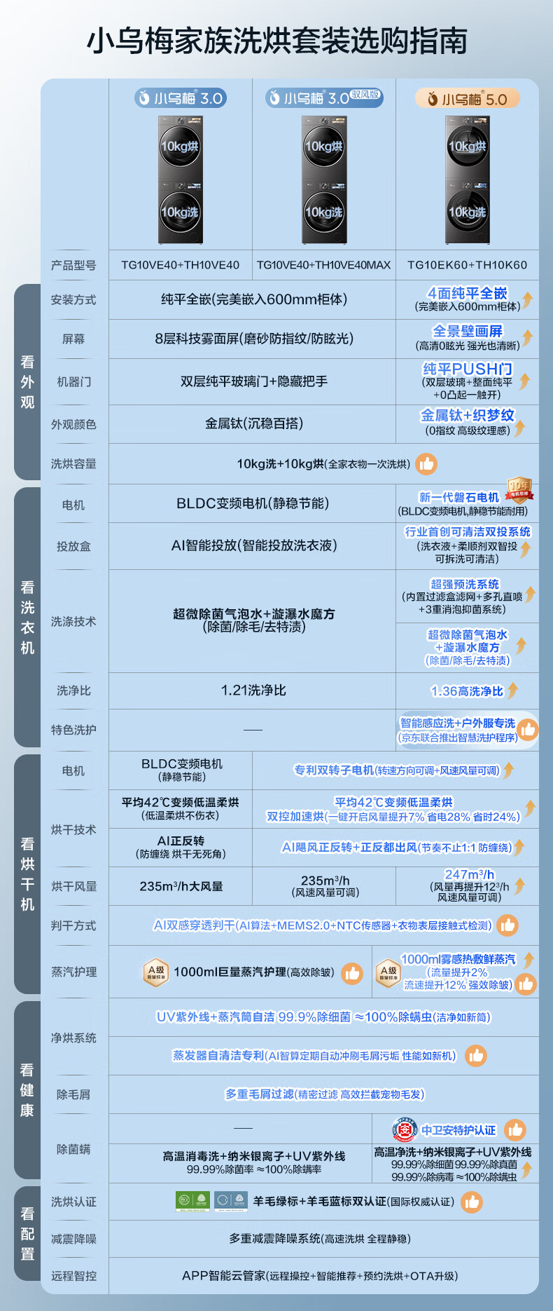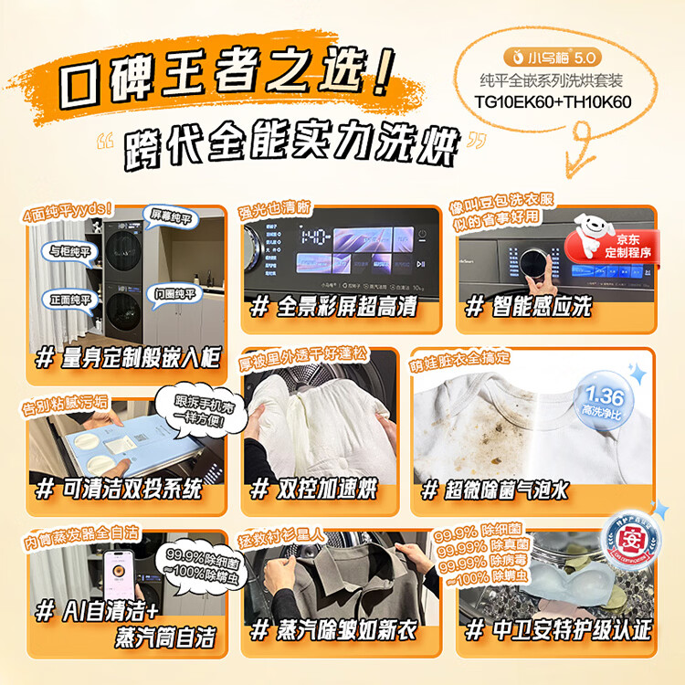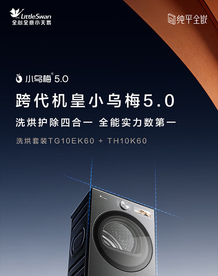 小天鹅(LittleSwan)小乌梅5.0 AWE同款跨代机皇洗烘套装10KG滚筒洗衣机+10KG热泵烘干机大容量纯平全嵌超微气泡水魔方1.36洗净比 TG10EK60+TH10K60