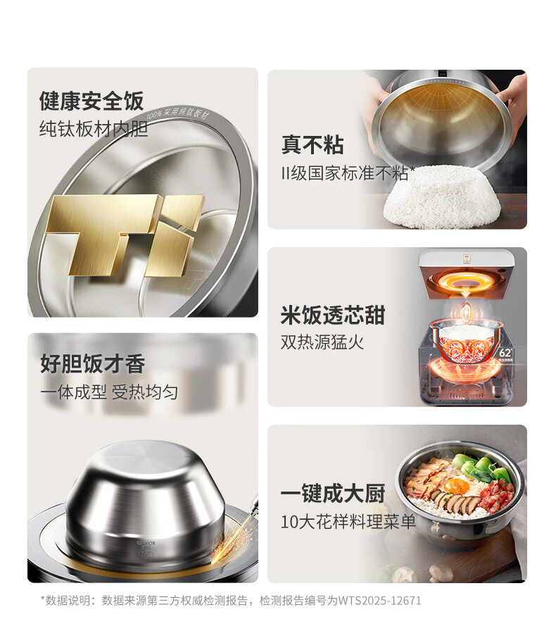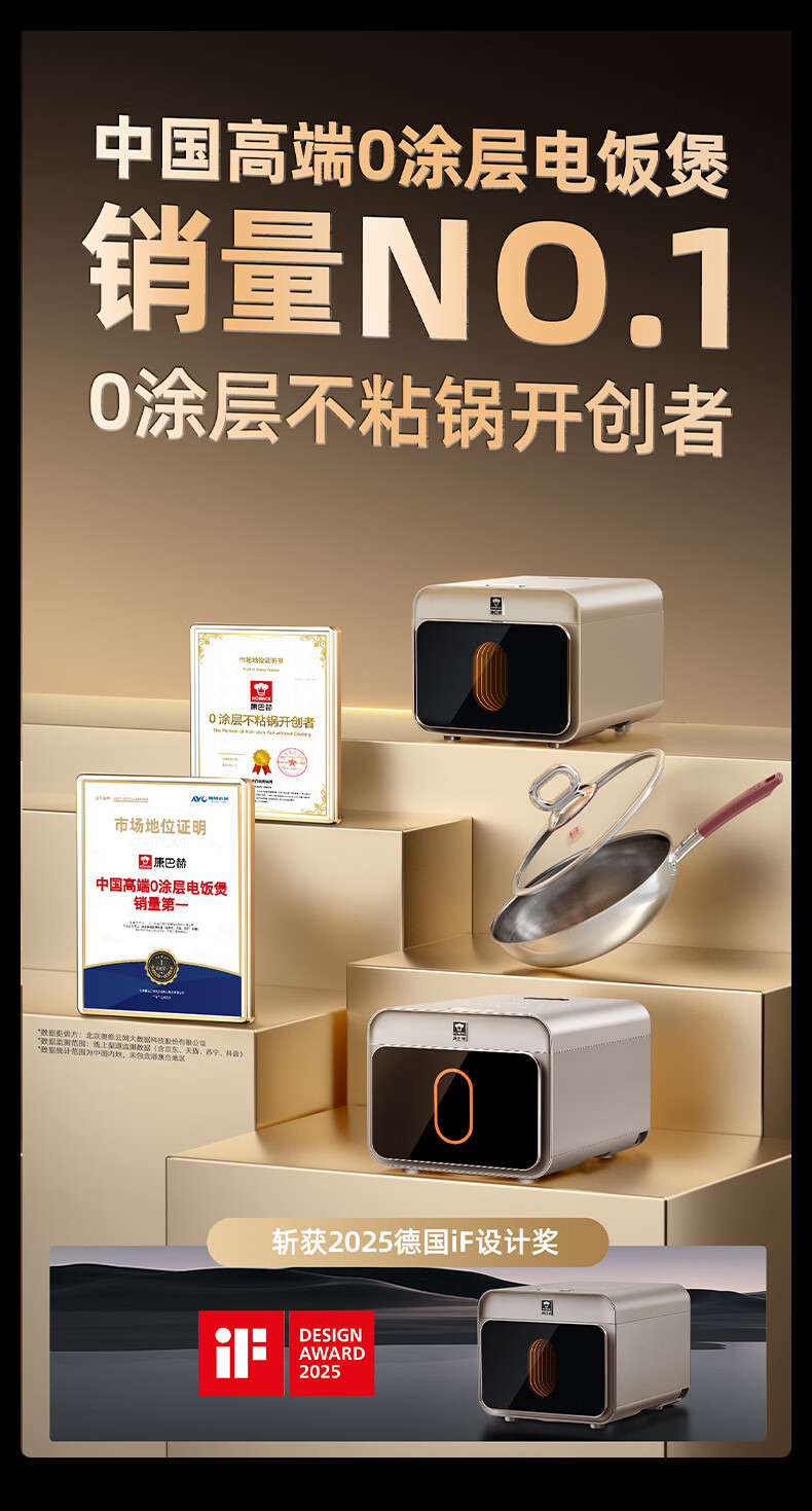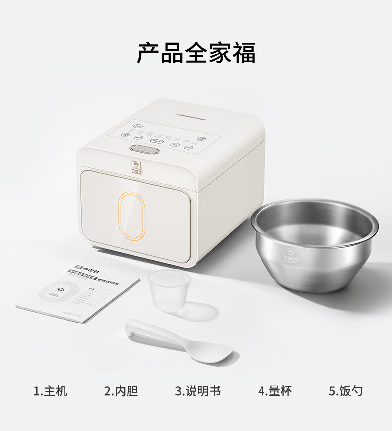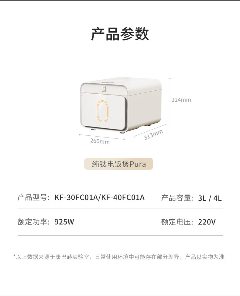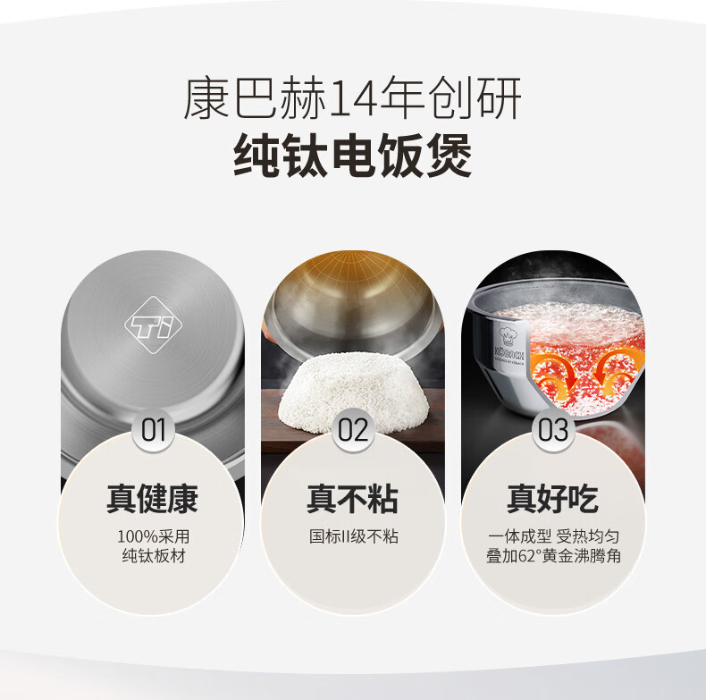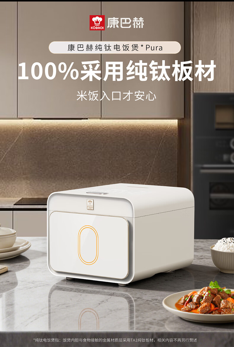 康巴赫纯钛板材内胆小方盒电饭煲智能电饭锅0氟涂层多功能家用大容量母婴材质内胆不粘锅Pura3L 京东独家