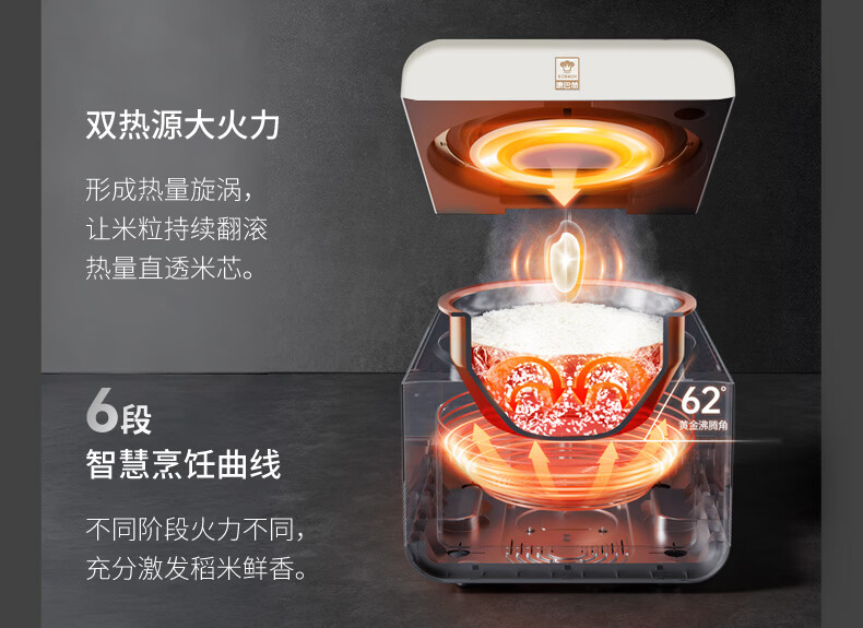 美的(Midea)双胆电饭煲3.2L 家用小型白玉晶釜内胆不粘锅双控双锅独立控温智能可预约多功能电饭锅煲汤锅 【双锅分区独立蒸煮】 3.2L 单锅1.6L