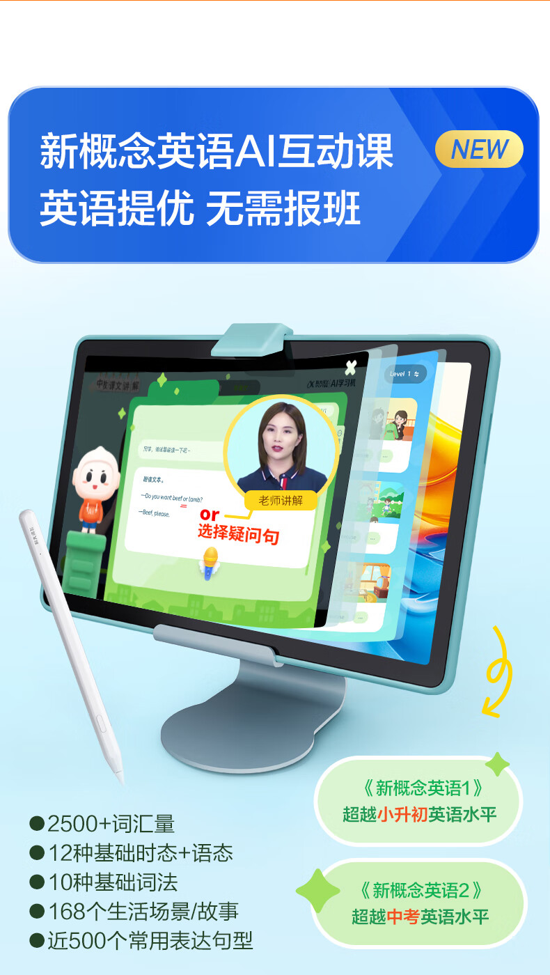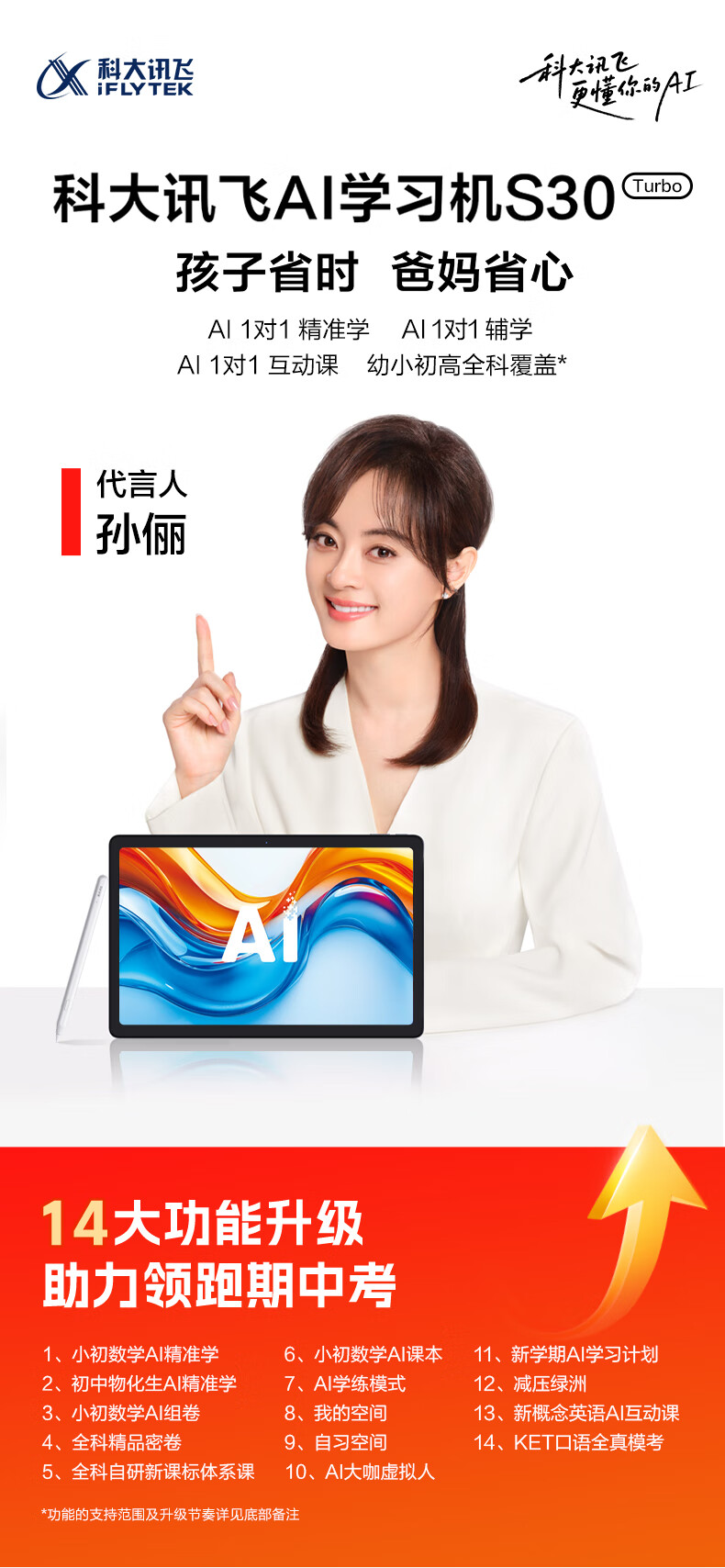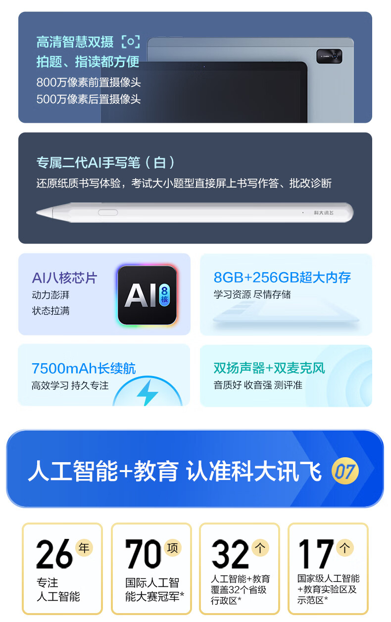 科大讯飞人工智能学习机S30 Turbo 8+256G【国补500元】AI 1对1精准学 护眼 中高考同源技术 KET口语模拟考