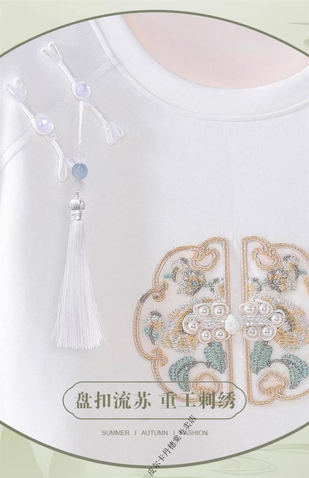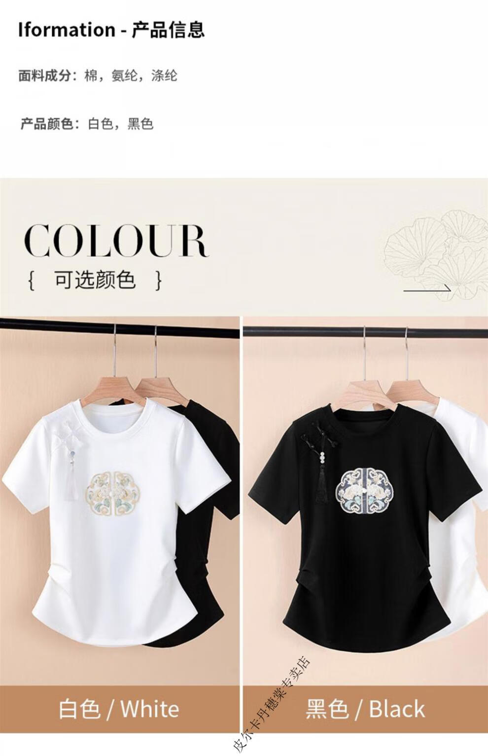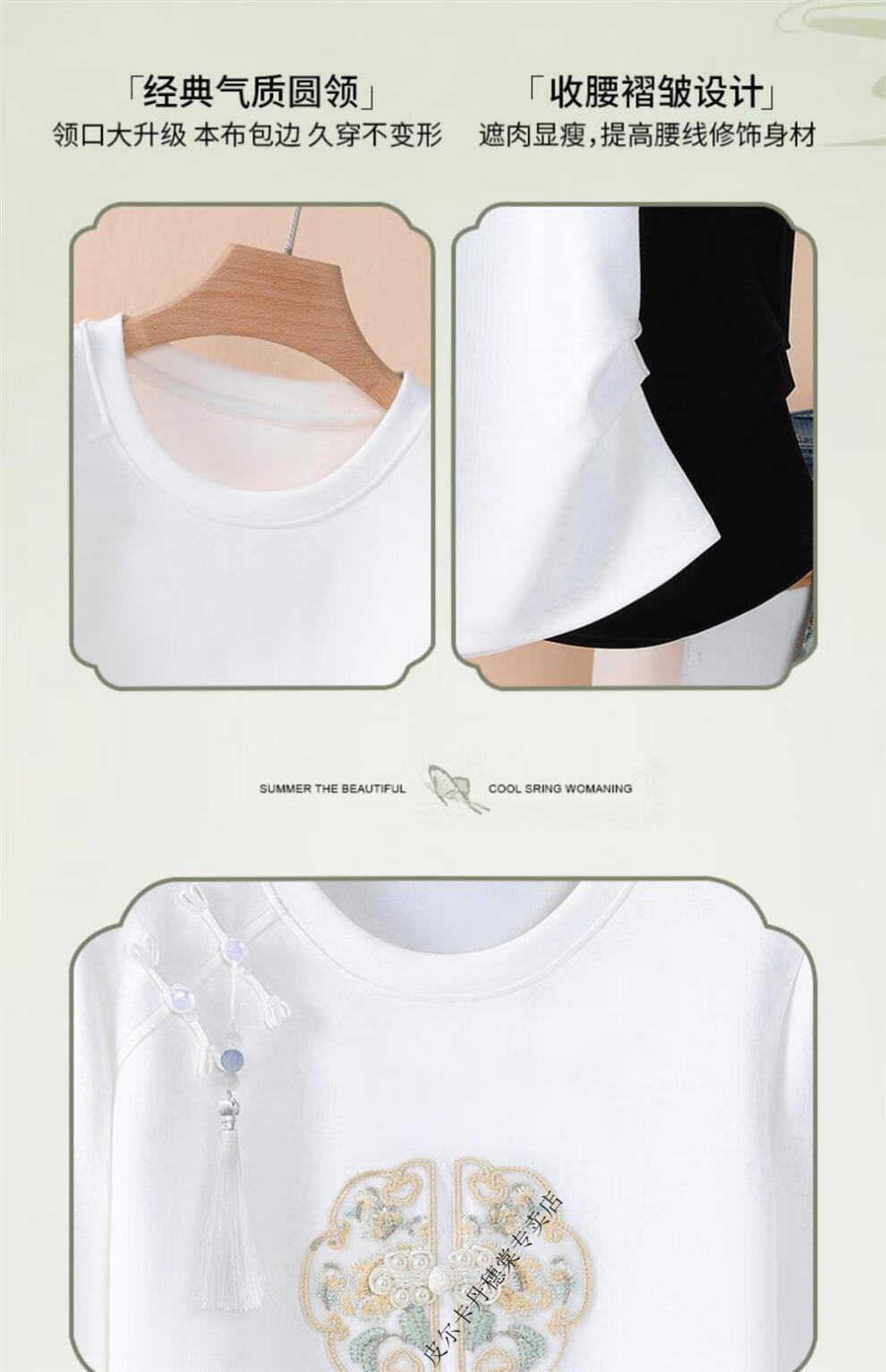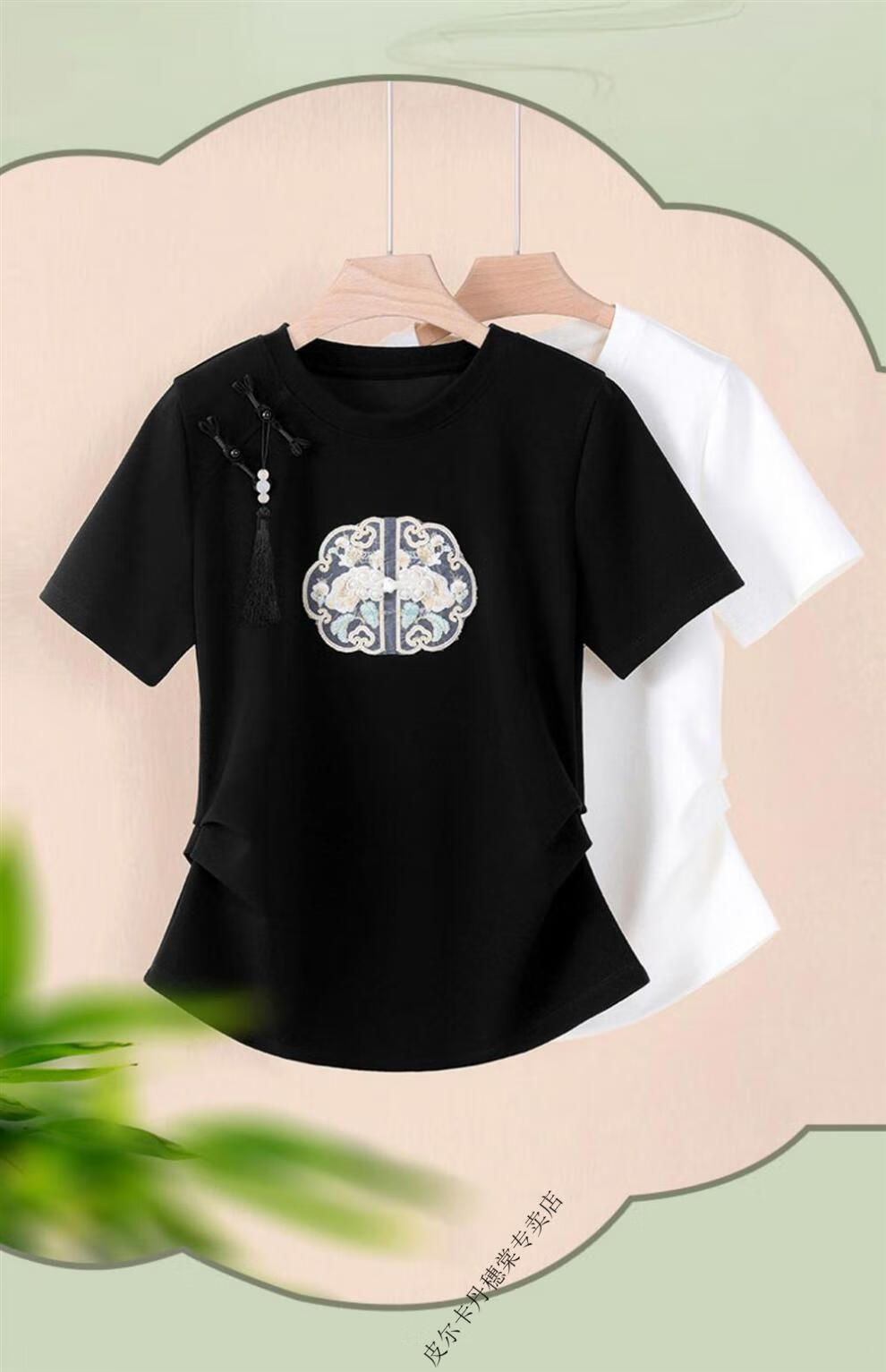 皮尔卡丹新中式国风短袖t恤女白色夏季2025新款复古刺绣短袖收腰上衣盘扣 白色 2XL 125-140斤
