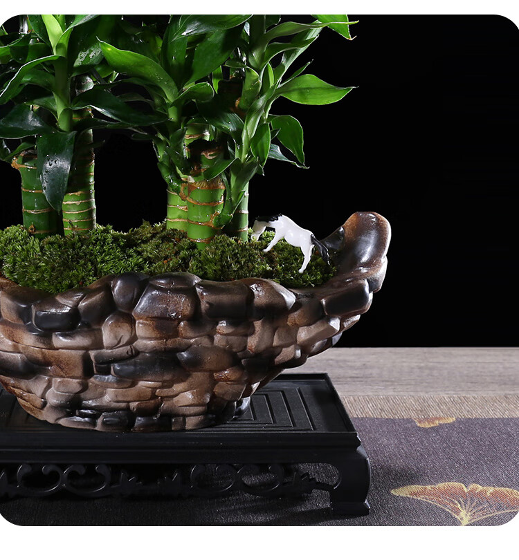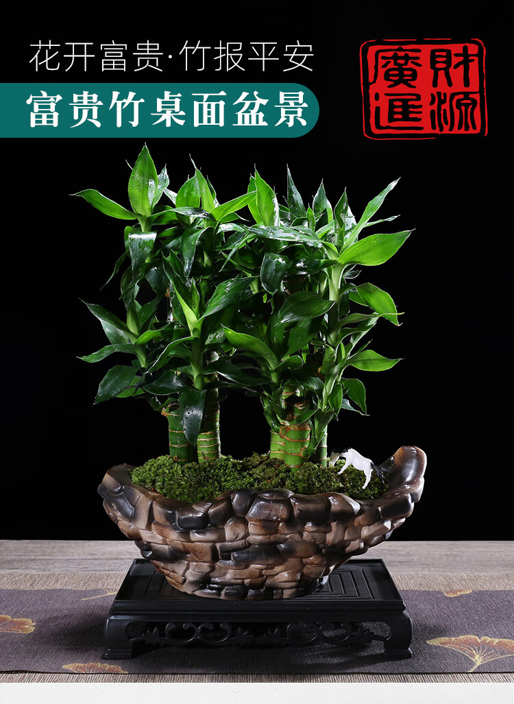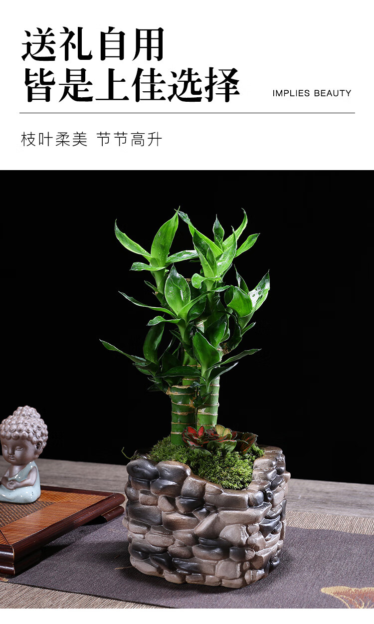 幼薇节节高富贵竹植物客厅转运绿植盆栽办公室内桌面好养盆景四季常青 三枝富贵竹+缺口鹅卵石陶瓷盆 带盆栽好