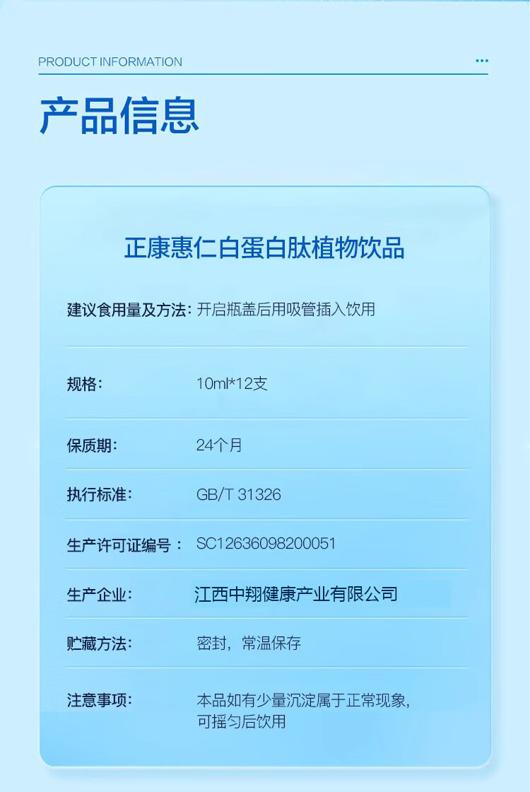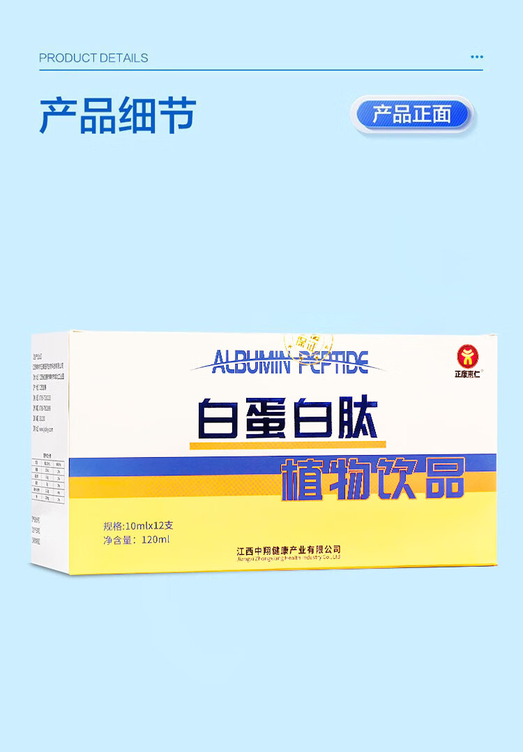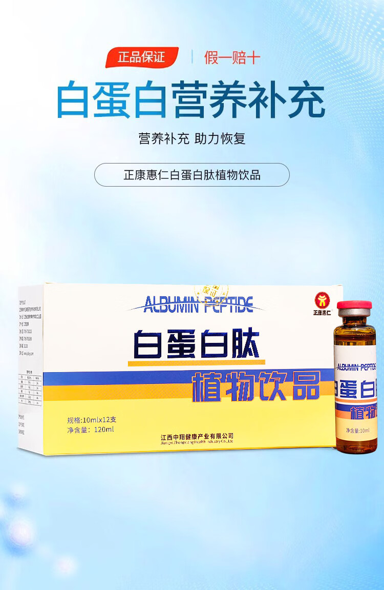 正康惠仁 白蛋白肽口服液含水解胶原蛋白配小分子肽精华饮品 12支/盒 买2多1发3盒共36支