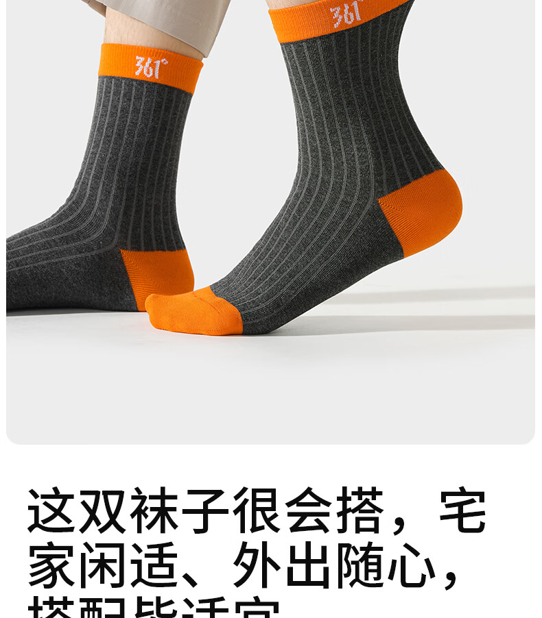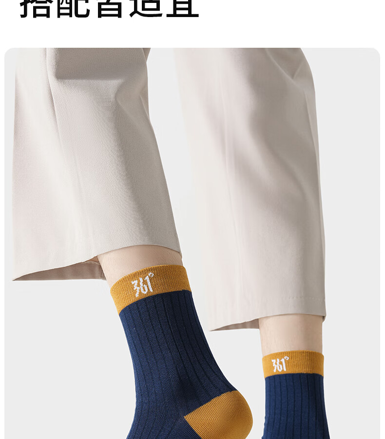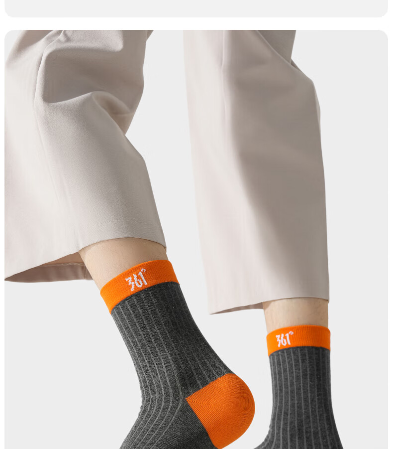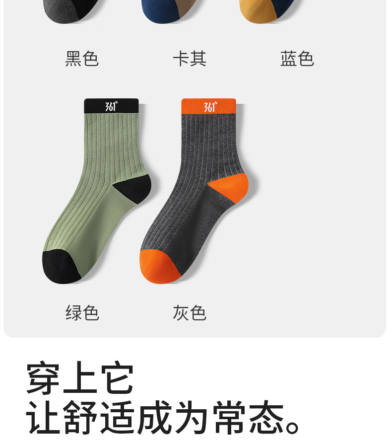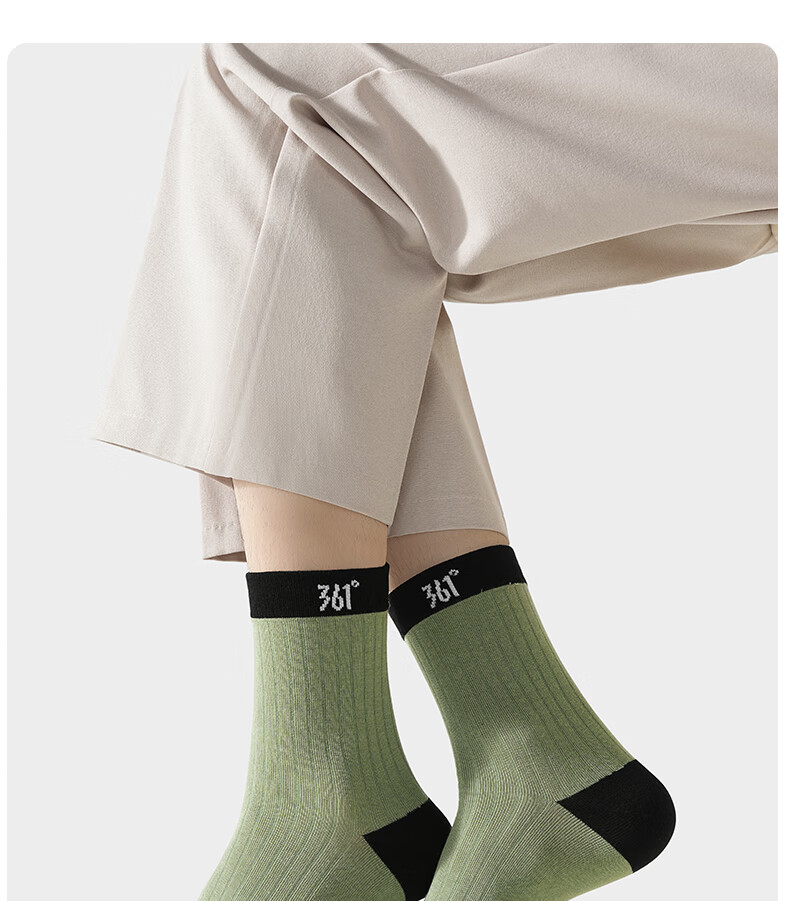 361°袜子男士中筒袜秋冬季吸汗透气男袜长筒长袜风潮流休闲袜 混色5双装【抗菌防臭袜】