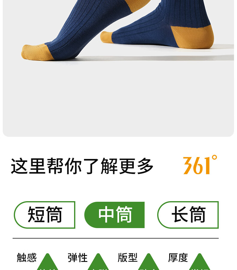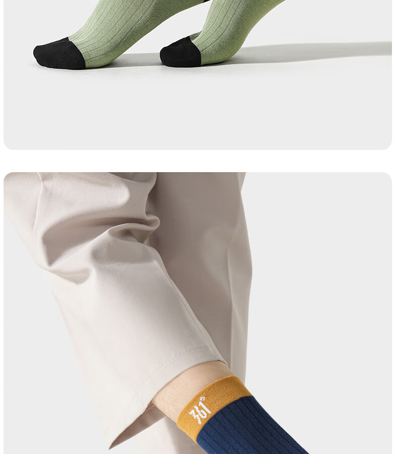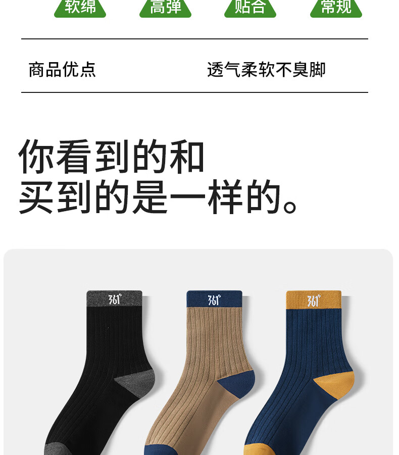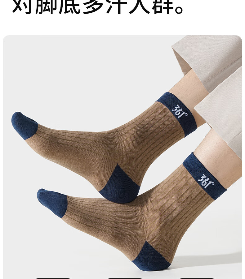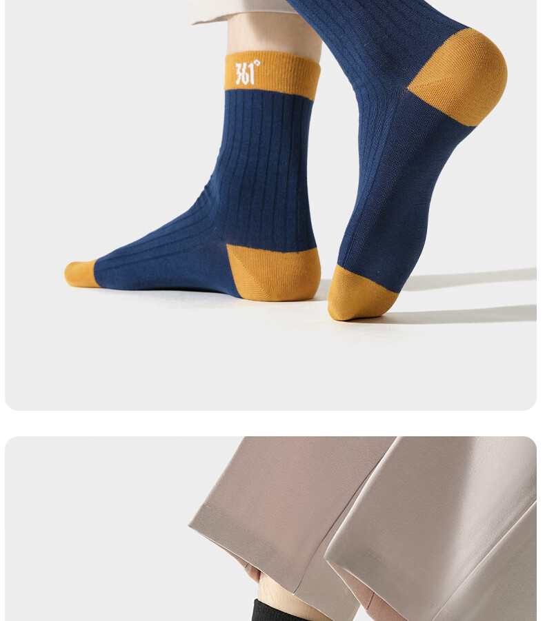 361°袜子男士中筒袜秋冬季吸汗透气男袜长筒长袜风潮流休闲袜 混色5双装【抗菌防臭袜】