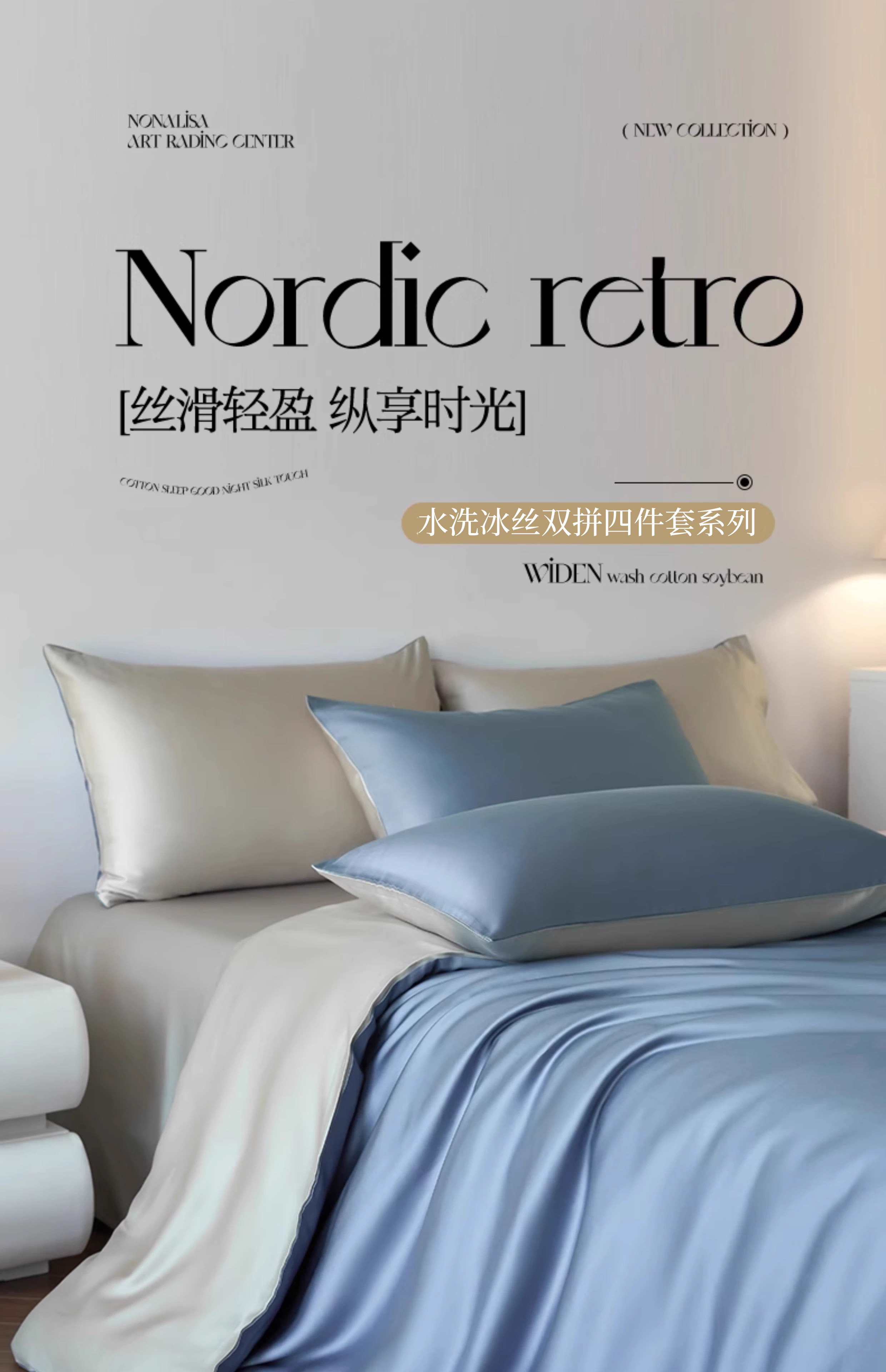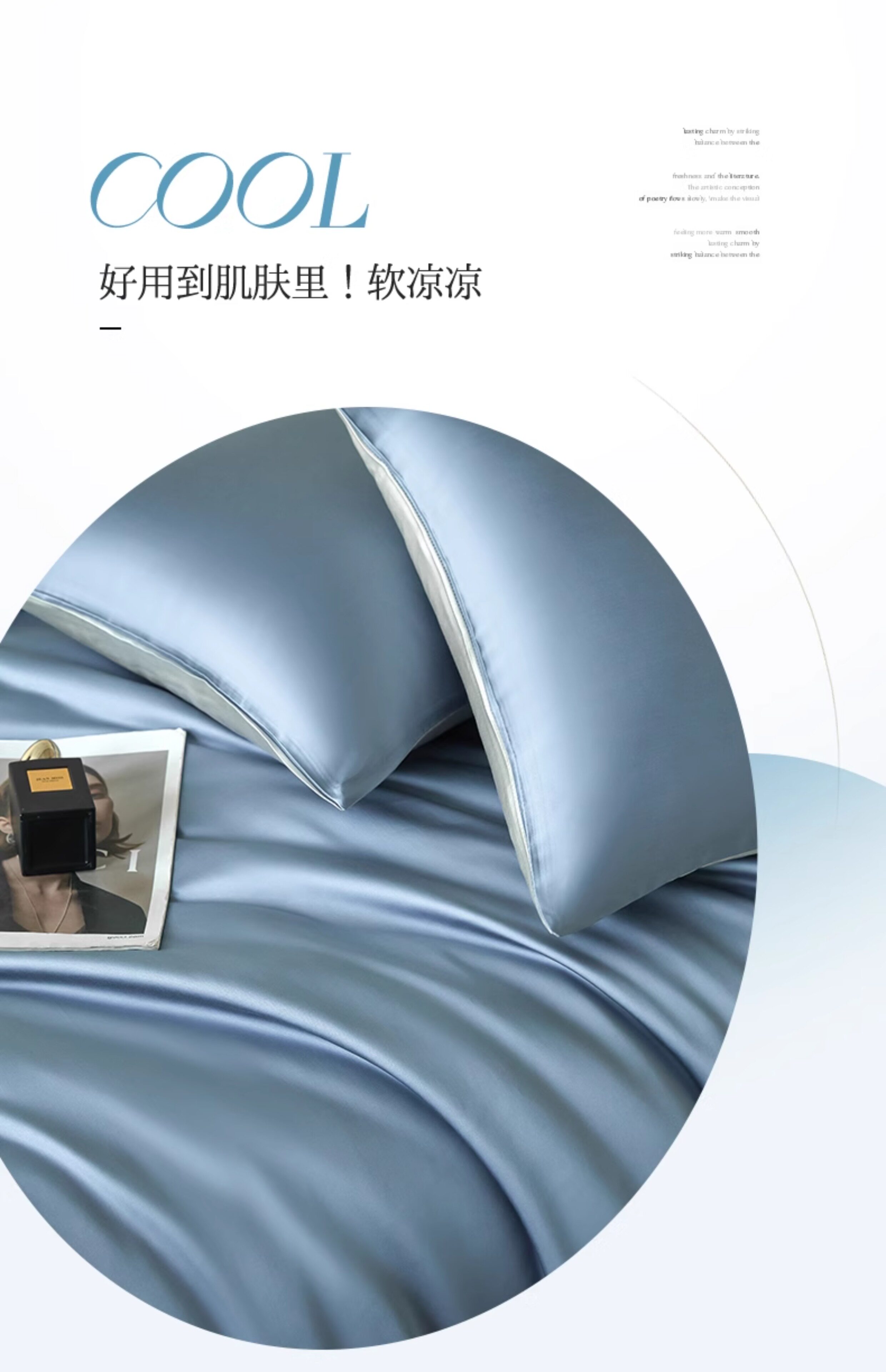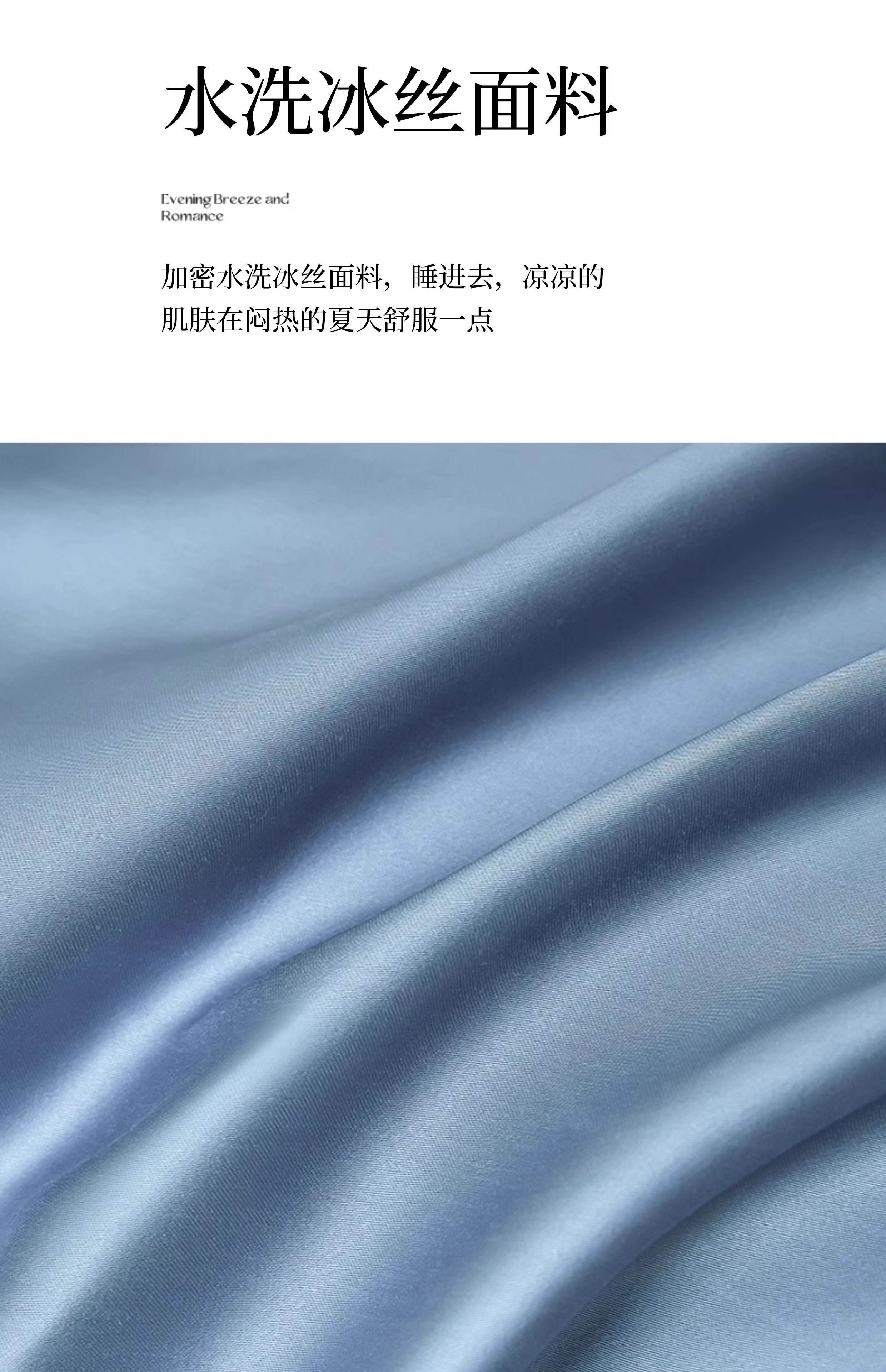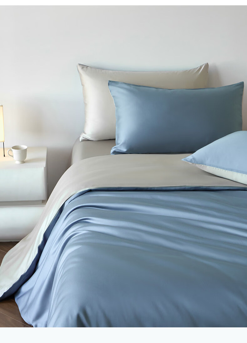 猫人(MiiOW)冰丝四件套夏季床上用品凉感床单被套罩夏天丝滑裸睡床笠款三件套 宾利蓝+冰川灰【凉感冰丝/适合裸睡】 1.8m 床单款 四件套-被套200x230cm