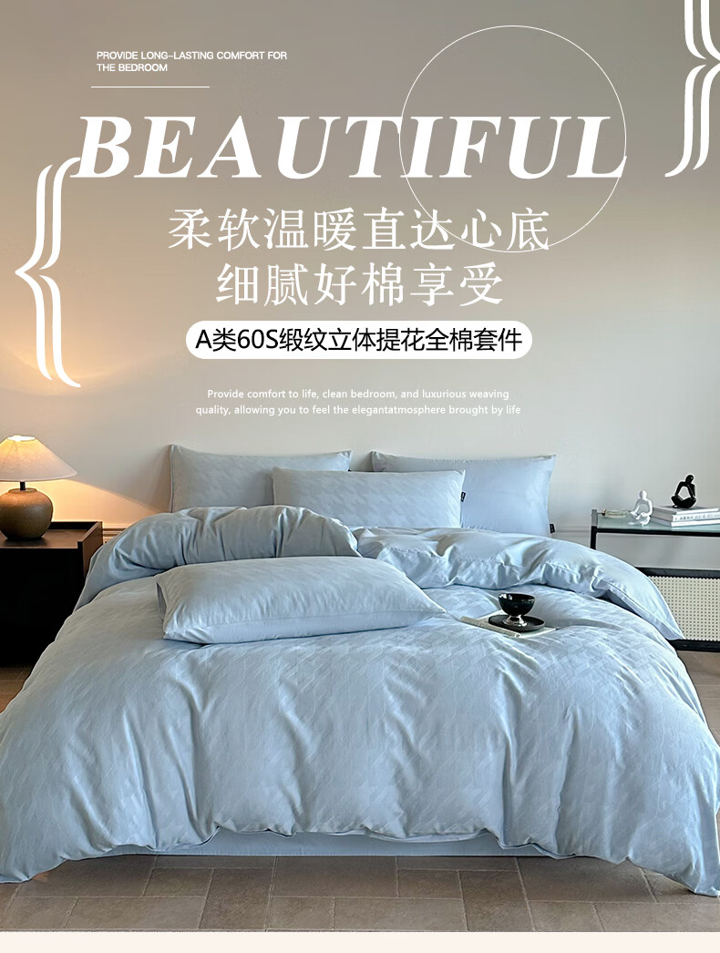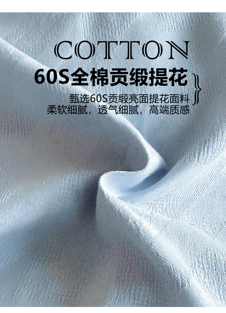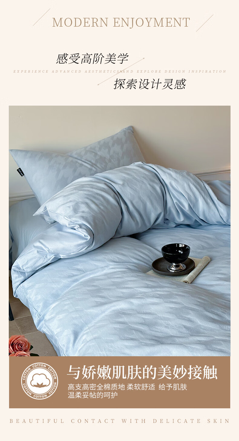 VJE60S贡缎提花全棉床上四件套纯棉A类新疆长绒棉防螨被套床单床品 克拉拉-米【母婴A类 贡缎提花 云感深睡】 四件套1.8m 床笠款 (被套200*230cm)