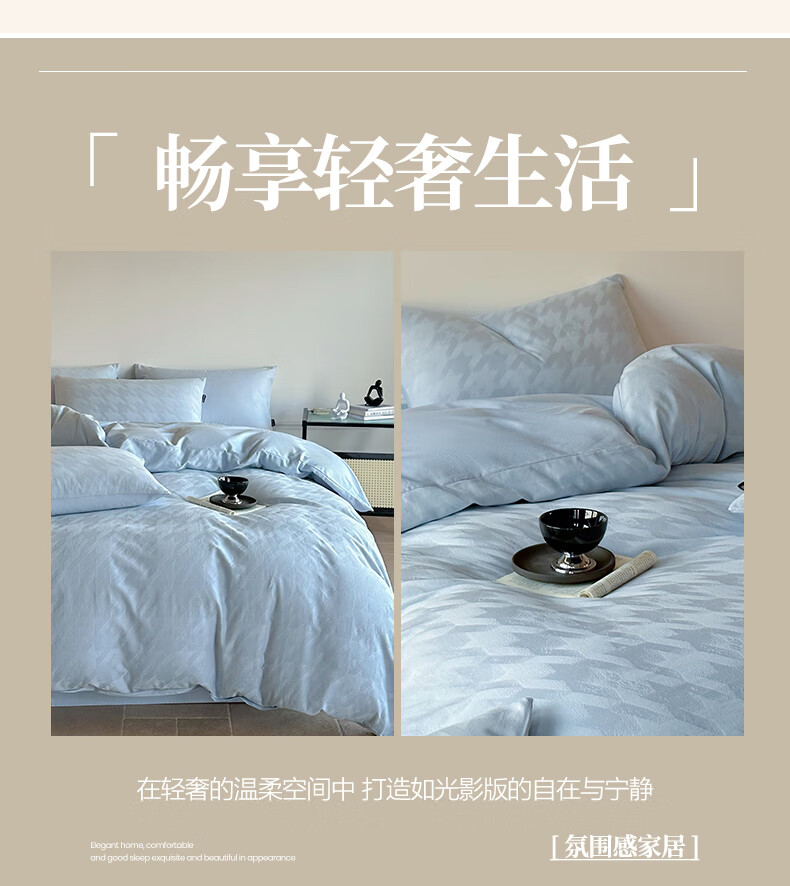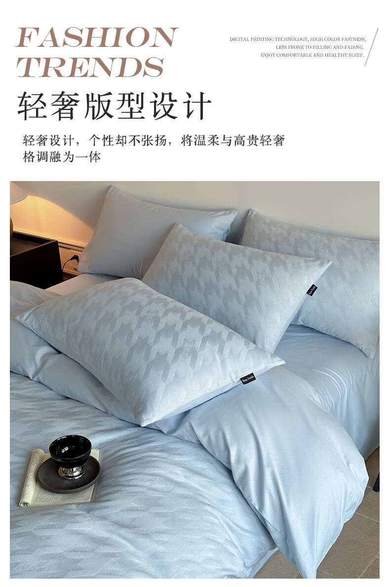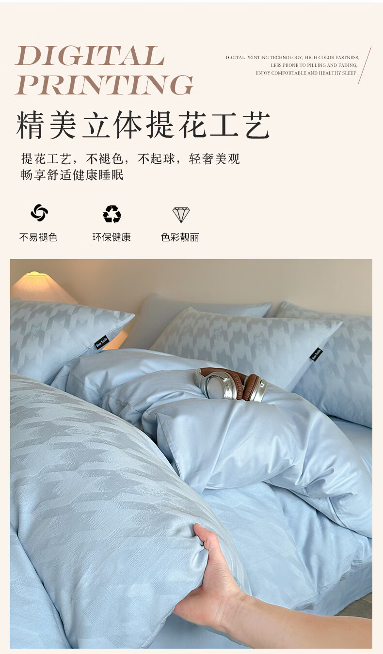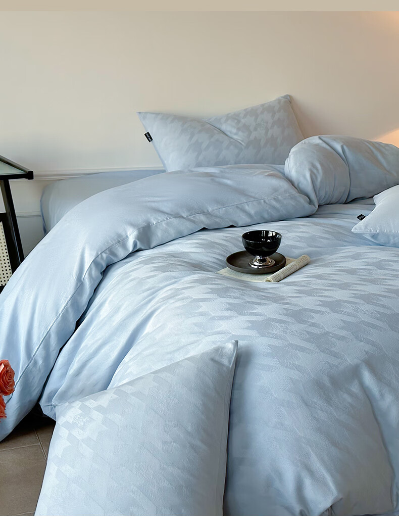 VJE60S贡缎提花全棉床上四件套纯棉A类新疆长绒棉防螨被套床单床品 克拉拉-米【母婴A类 贡缎提花 云感深睡】 四件套1.8m 床笠款 (被套200*230cm)