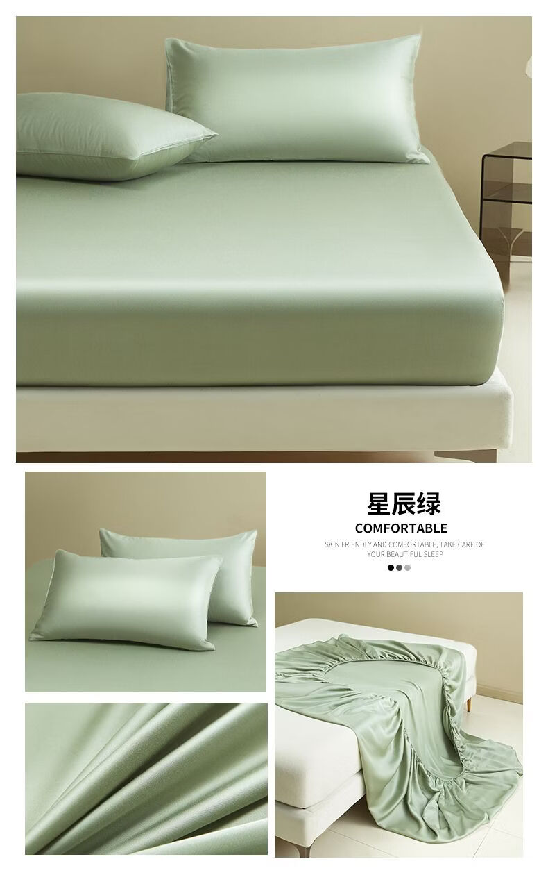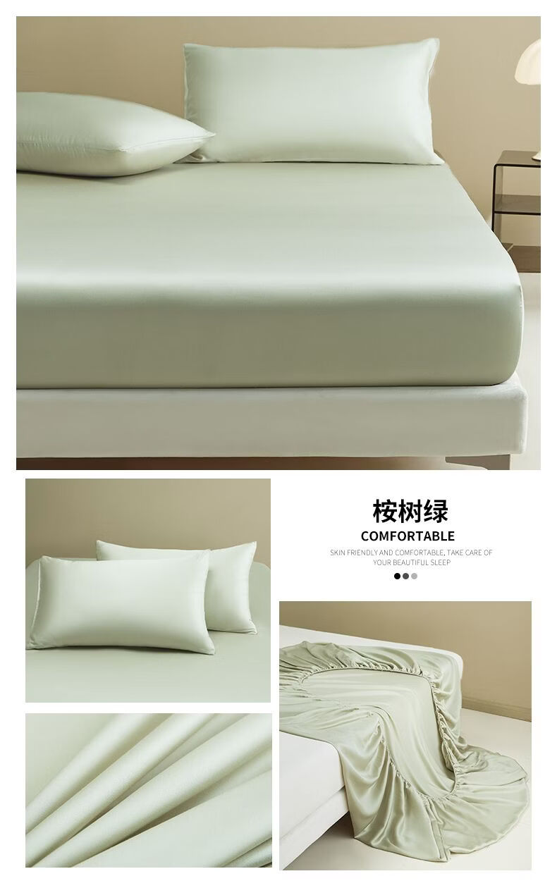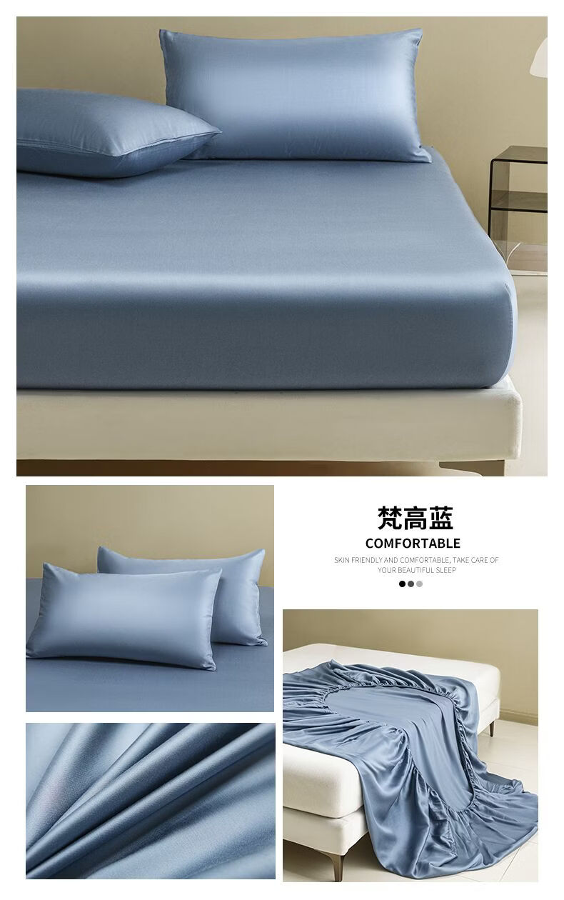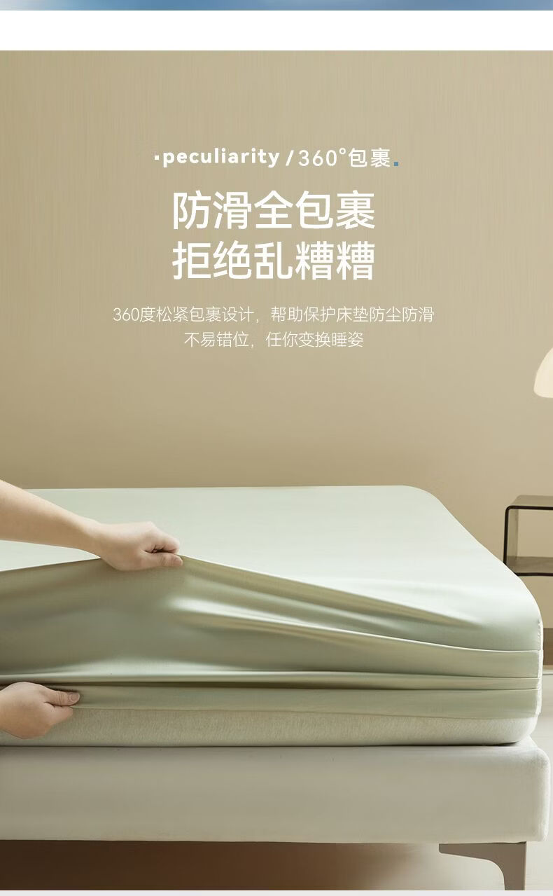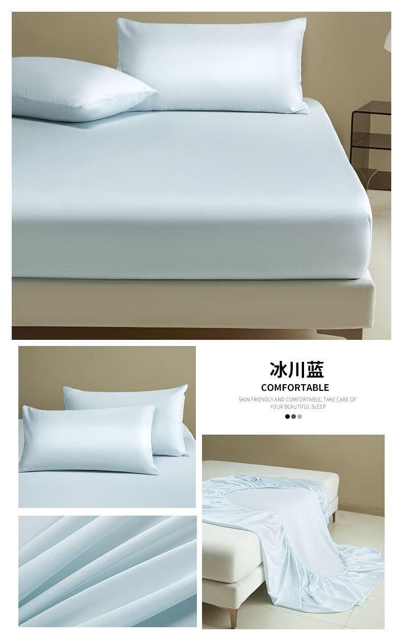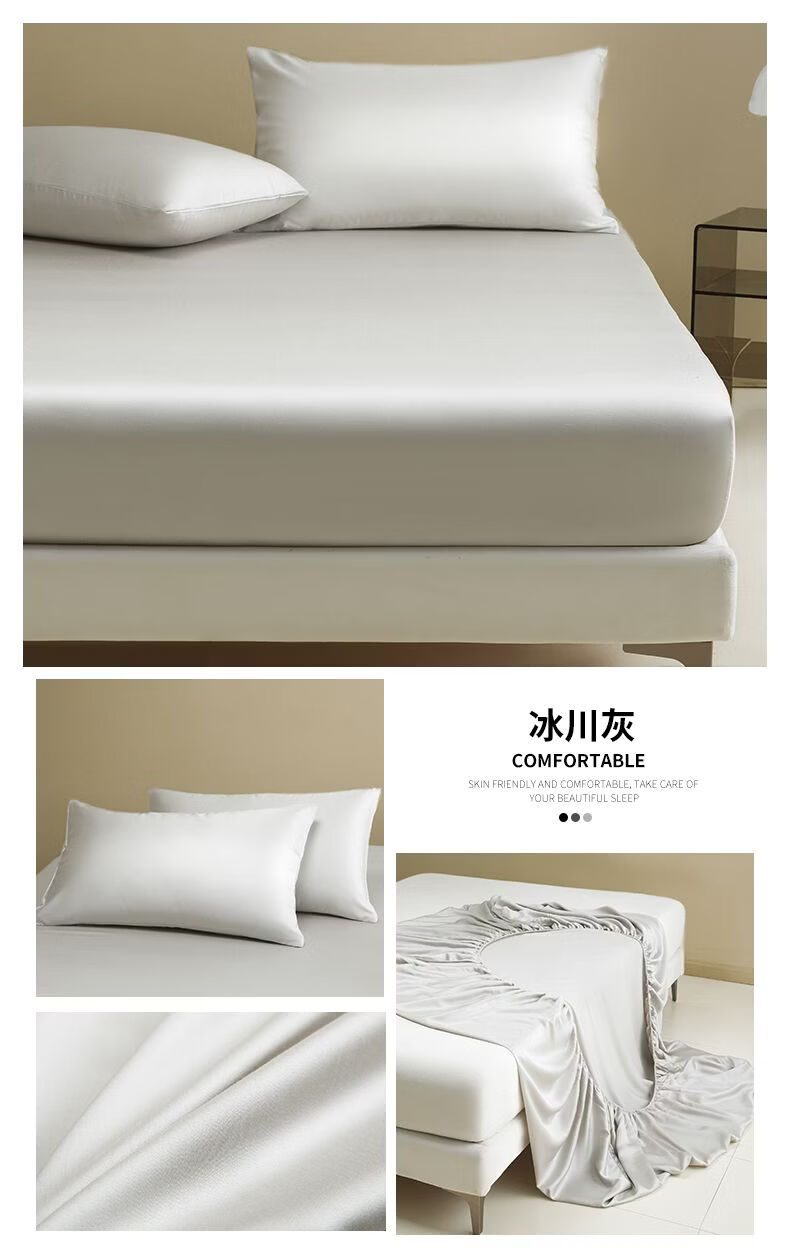 无印良品夏季冰丝床笠1.8米x2米床垫保护套床罩单件全包围家用床上三件套 冰川灰 【水洗冰丝-柔滑裸感】 120cm*200cm 单床笠