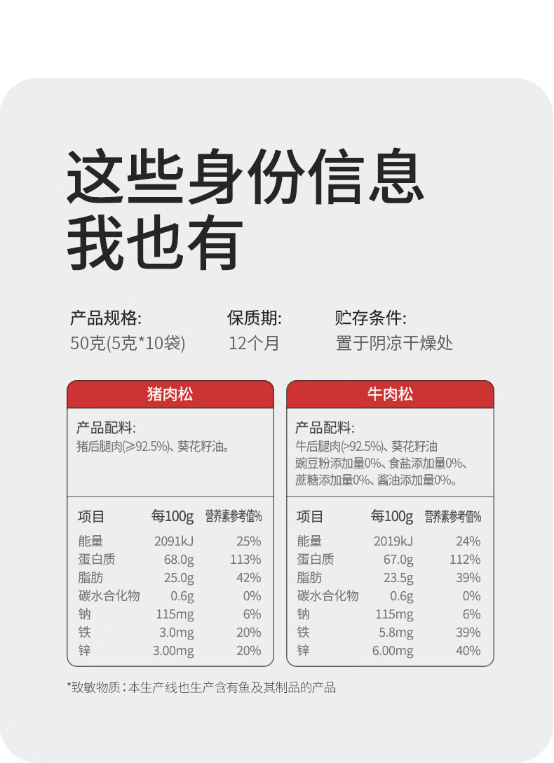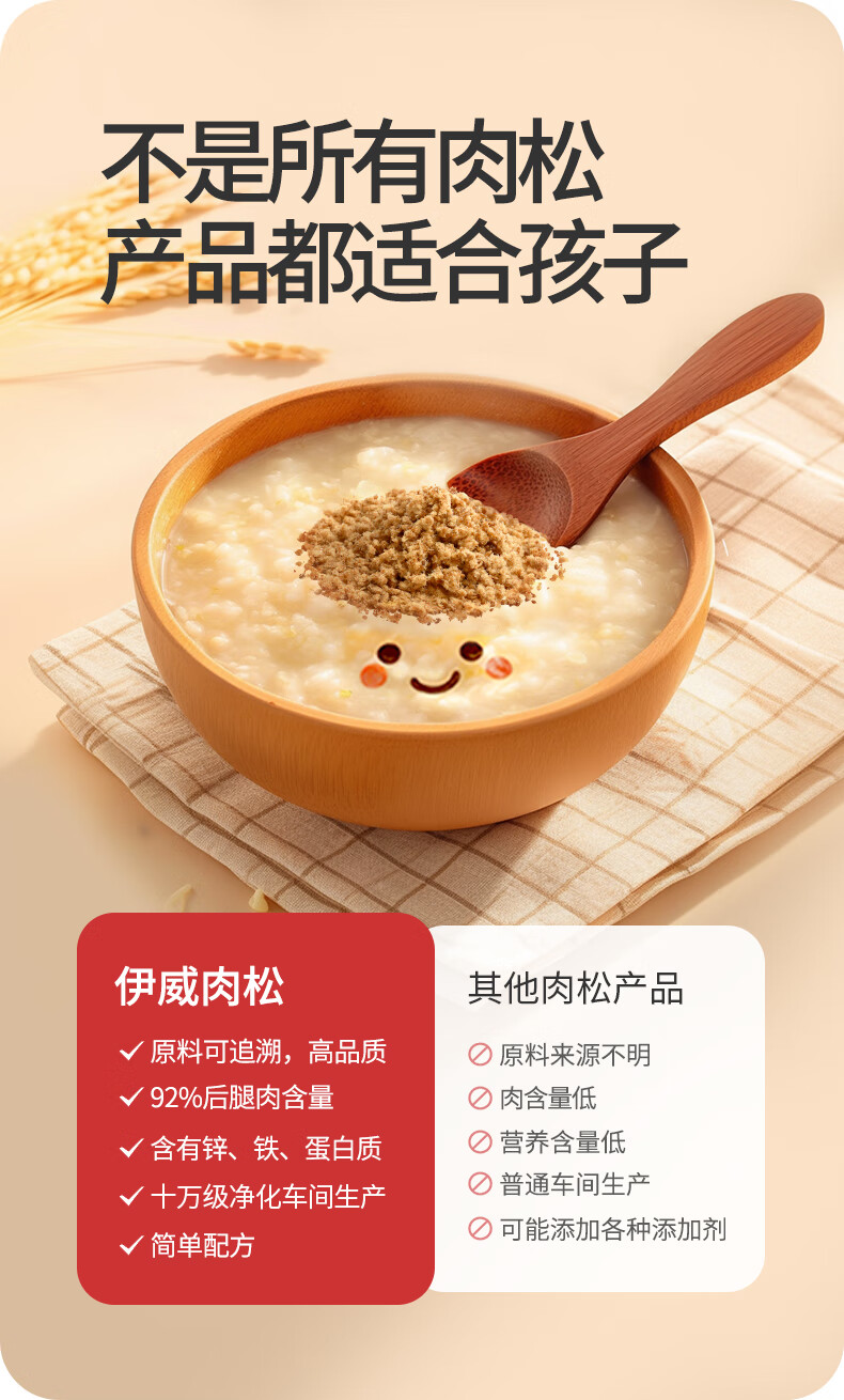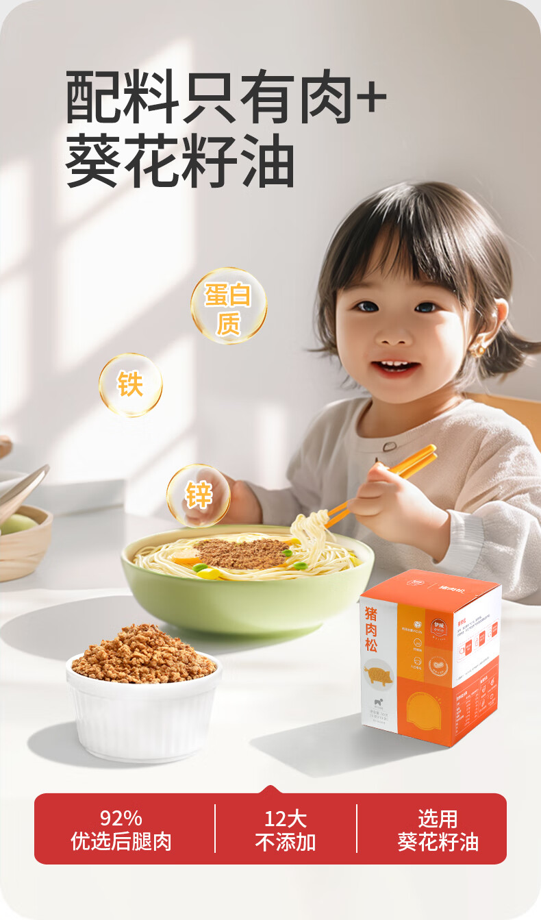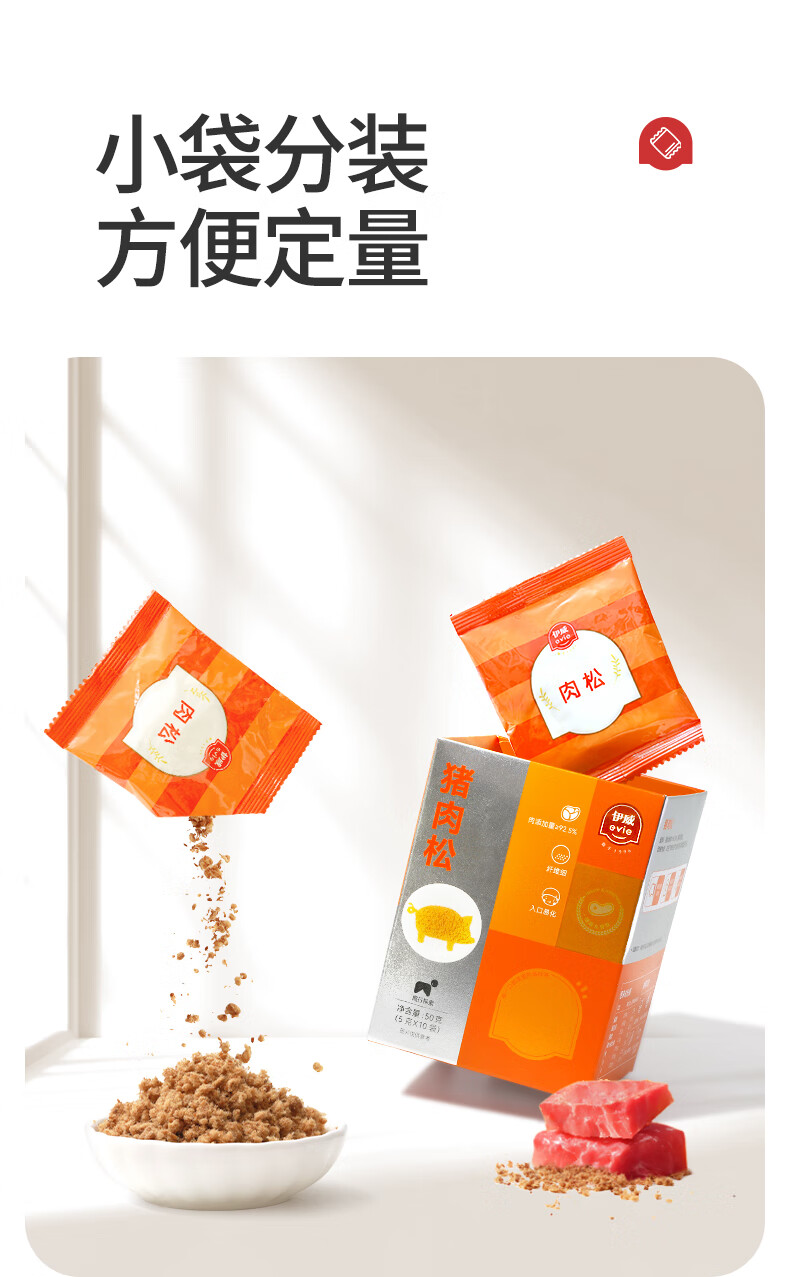 伊威(Eastwes)儿童零食 无调味全机能牛肉松50g(10袋)不添食用盐蔗糖 含蛋白质