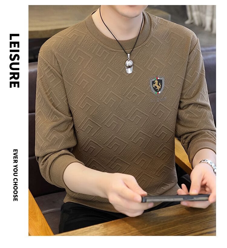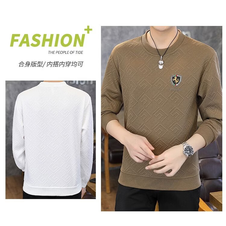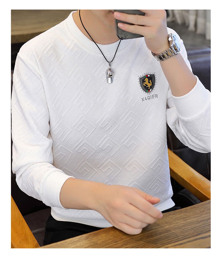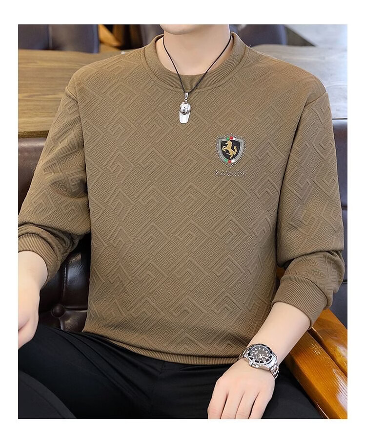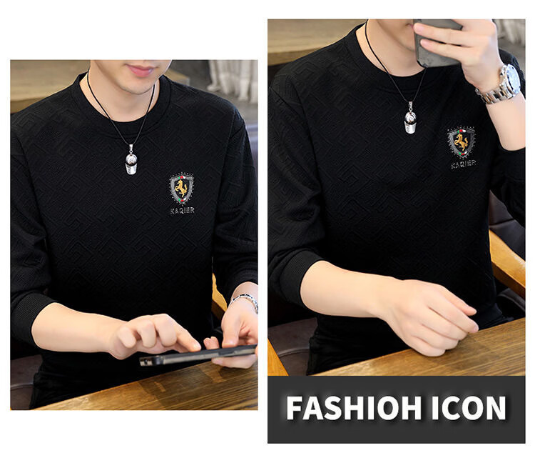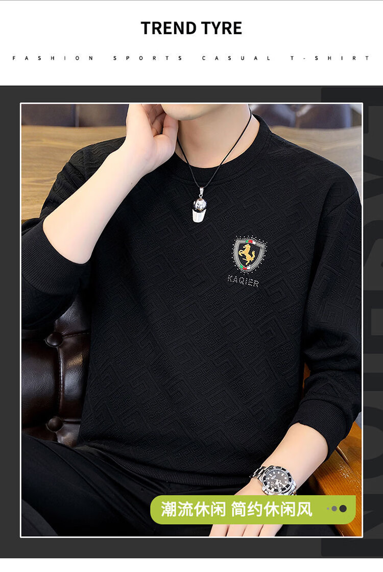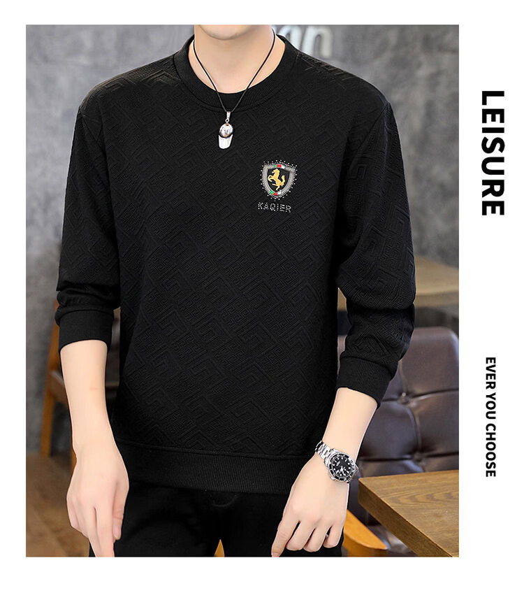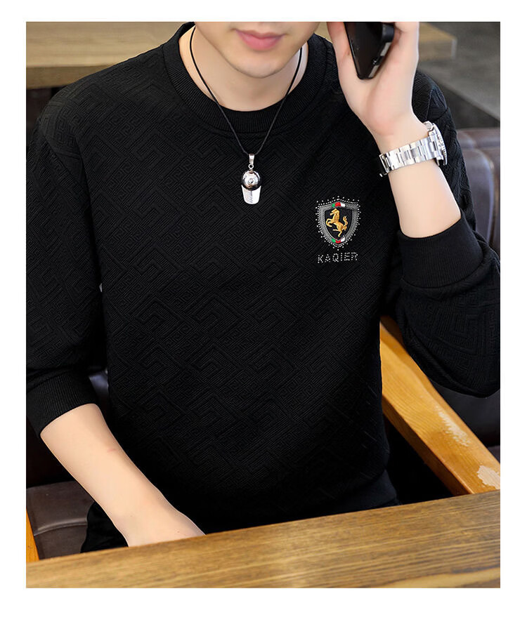MDODC轻熟风长袖t恤男士2026春夏款青年个性潮流休闲提花烫钻打底衫 T35-黑色 4XL (推荐165-180斤)