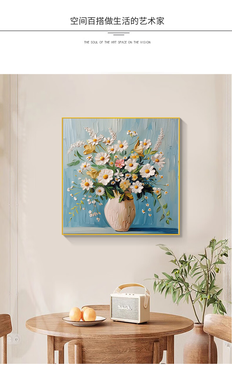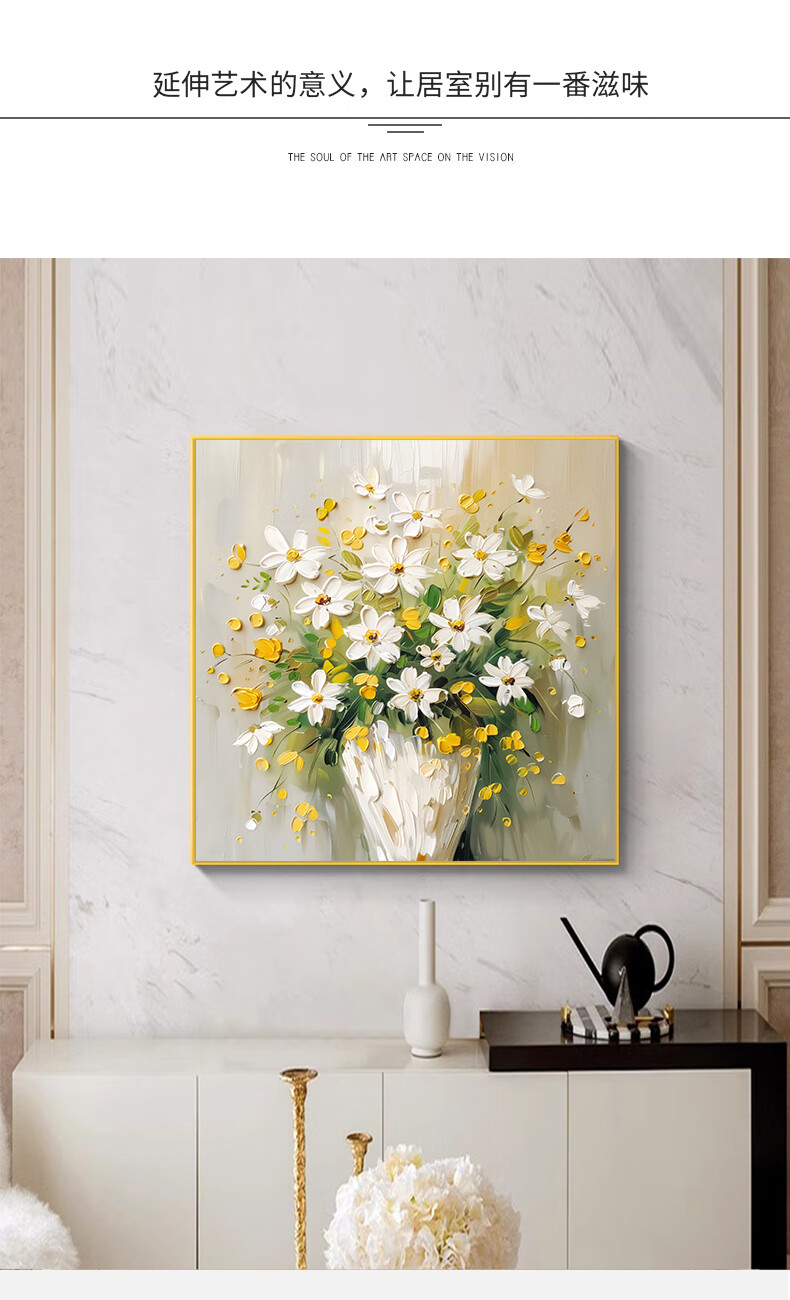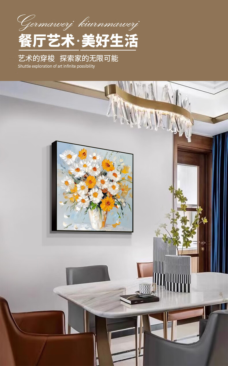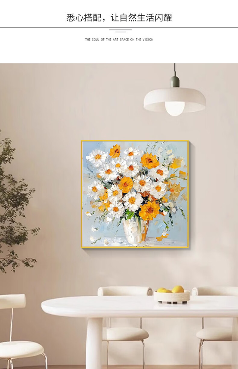 鲸派餐厅装饰画简约现代奶油风花卉饭厅客厅挂画轻奢高级感餐桌墙壁画 105-1 40*40 轻奢金框 布纹面/哑光面/防水防潮