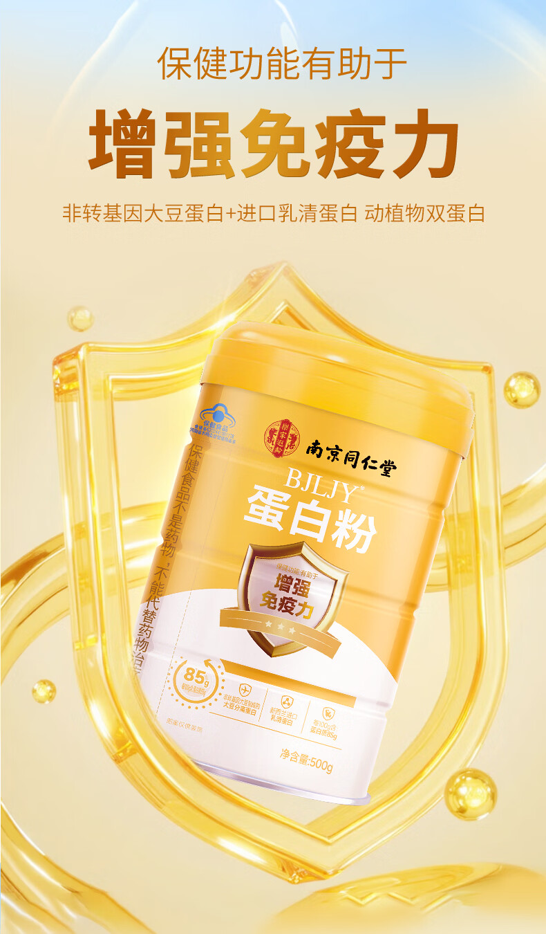 南京同仁堂蛋白粉中老年人增强免疫力500g补充营养乳清蛋白粉术后恢复礼盒 【赠送礼袋】 500g*2罐 85%蛋白质含量