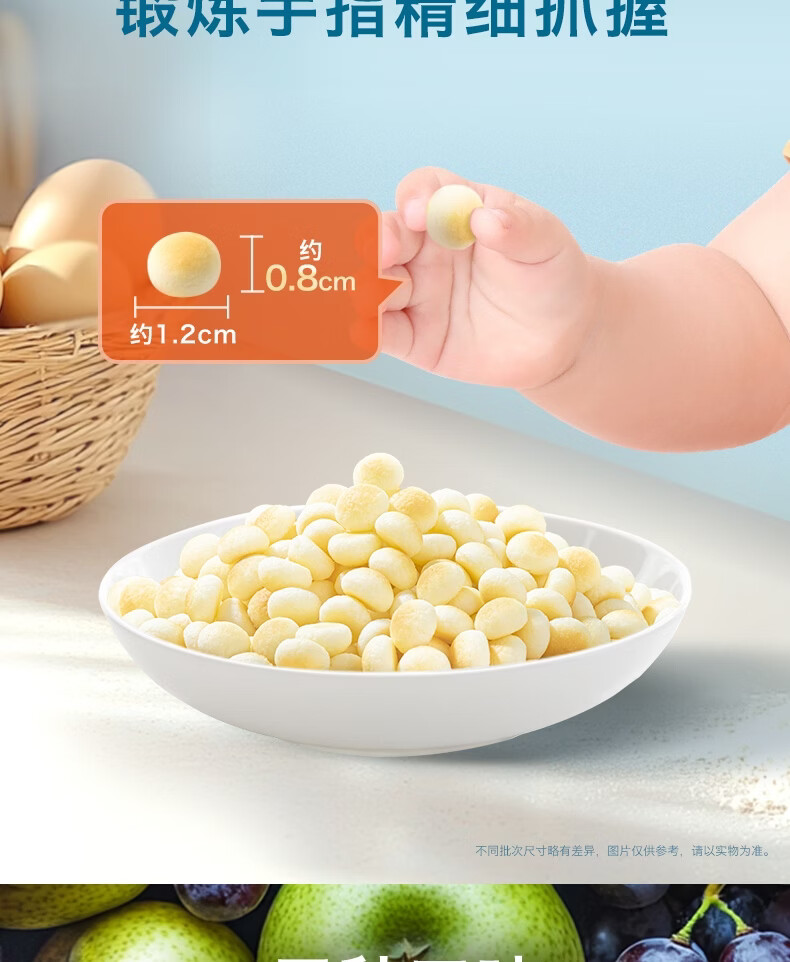 禾泱泱婴幼儿鸡蛋酥 6个月以上儿童宝宝零食蛋酥小馒头饼干无添加白砂糖 婴标鸡蛋酥3罐 原味+葡萄+苹果