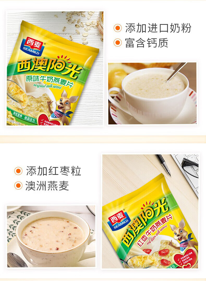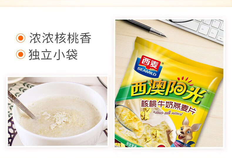 西麦西澳阳光燕麦片即食冲饮谷物独立小包装早餐冲调速食营养送礼盒 原味+红枣+核桃3口味混合36包共1008g(含赠)